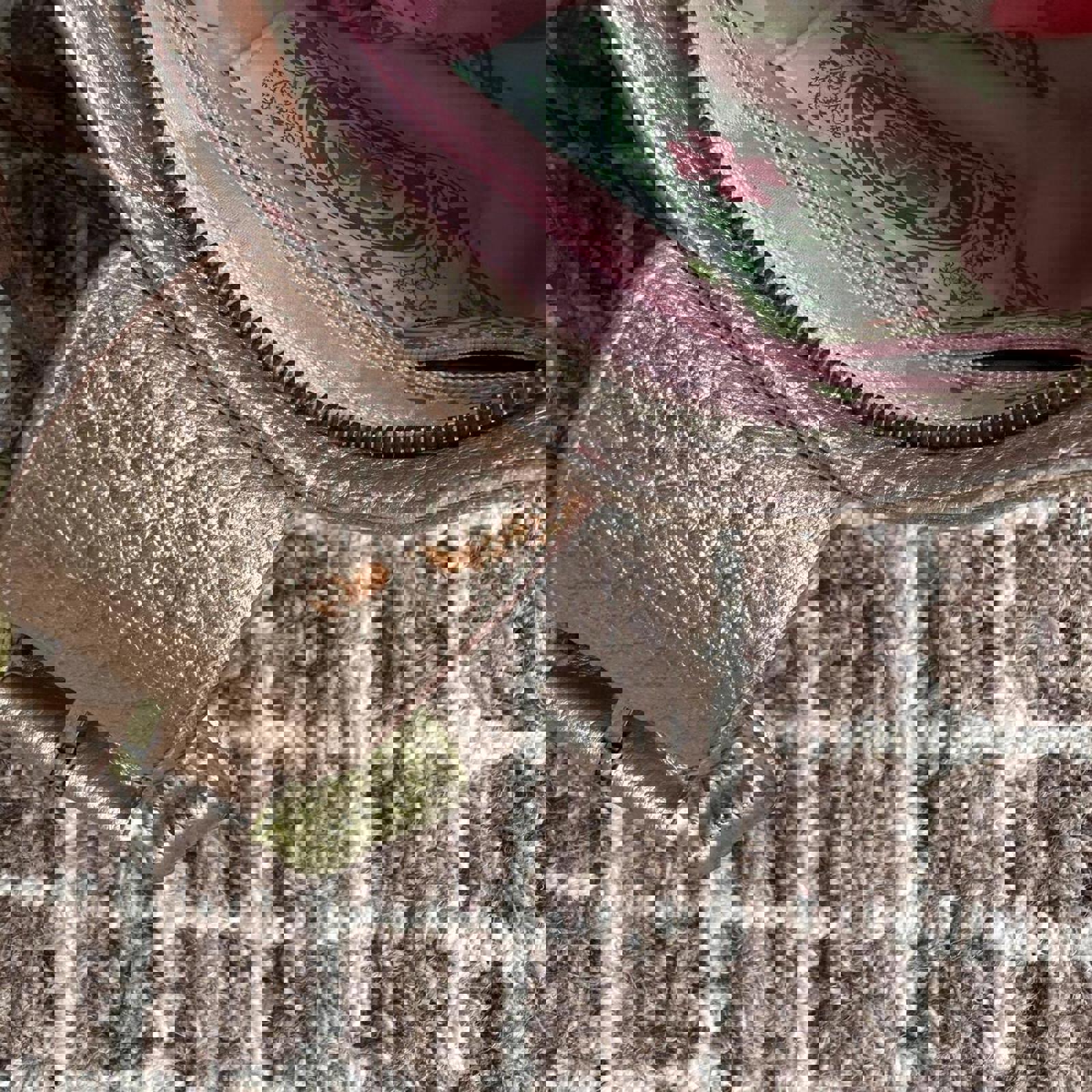 733. Vintage Brown and gold leather clutch bag with buckle closure and tassel small mark on inside of clasp (shown) otherwise great condition