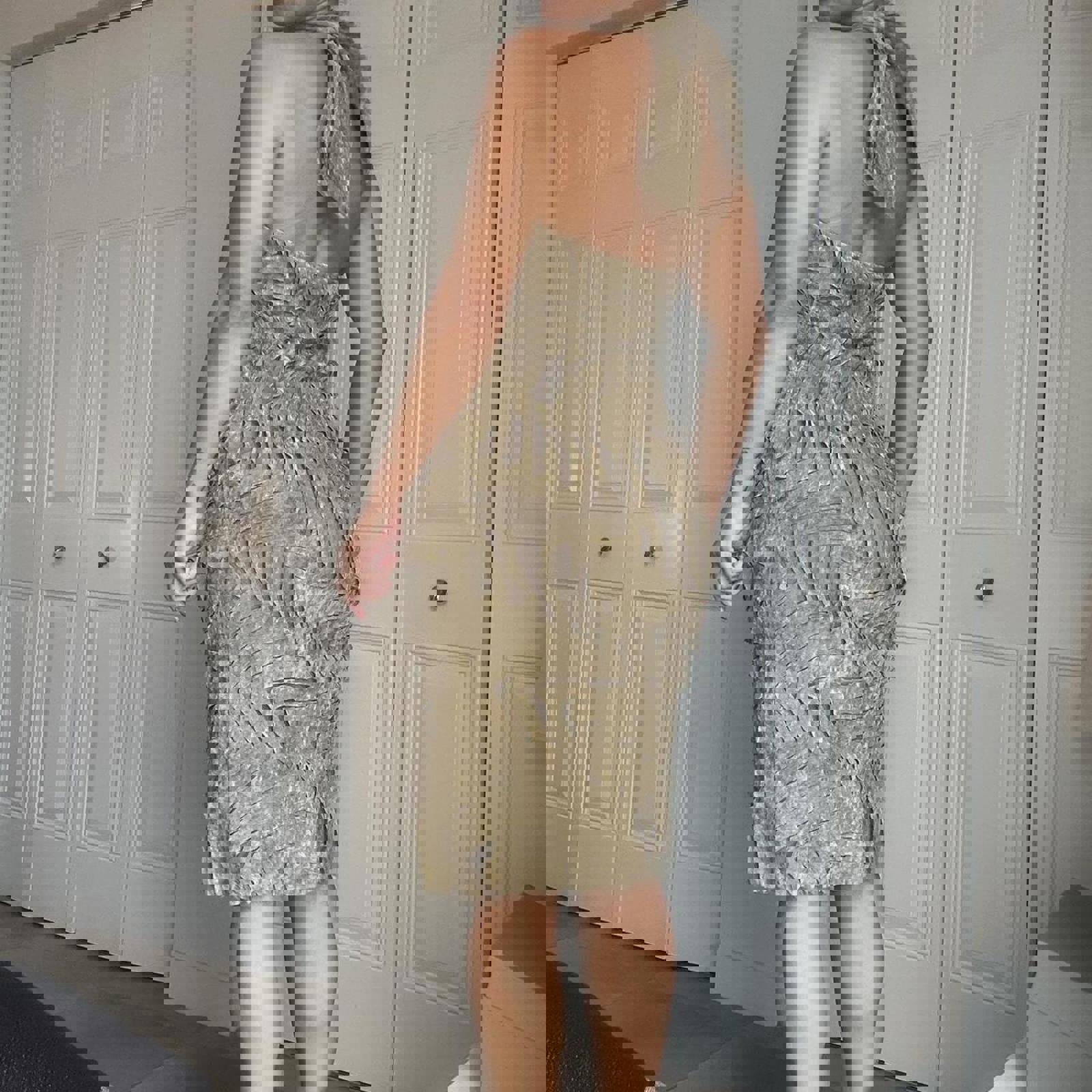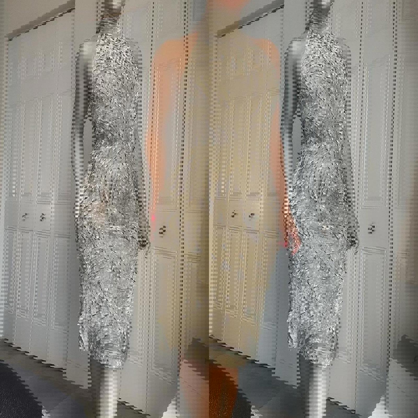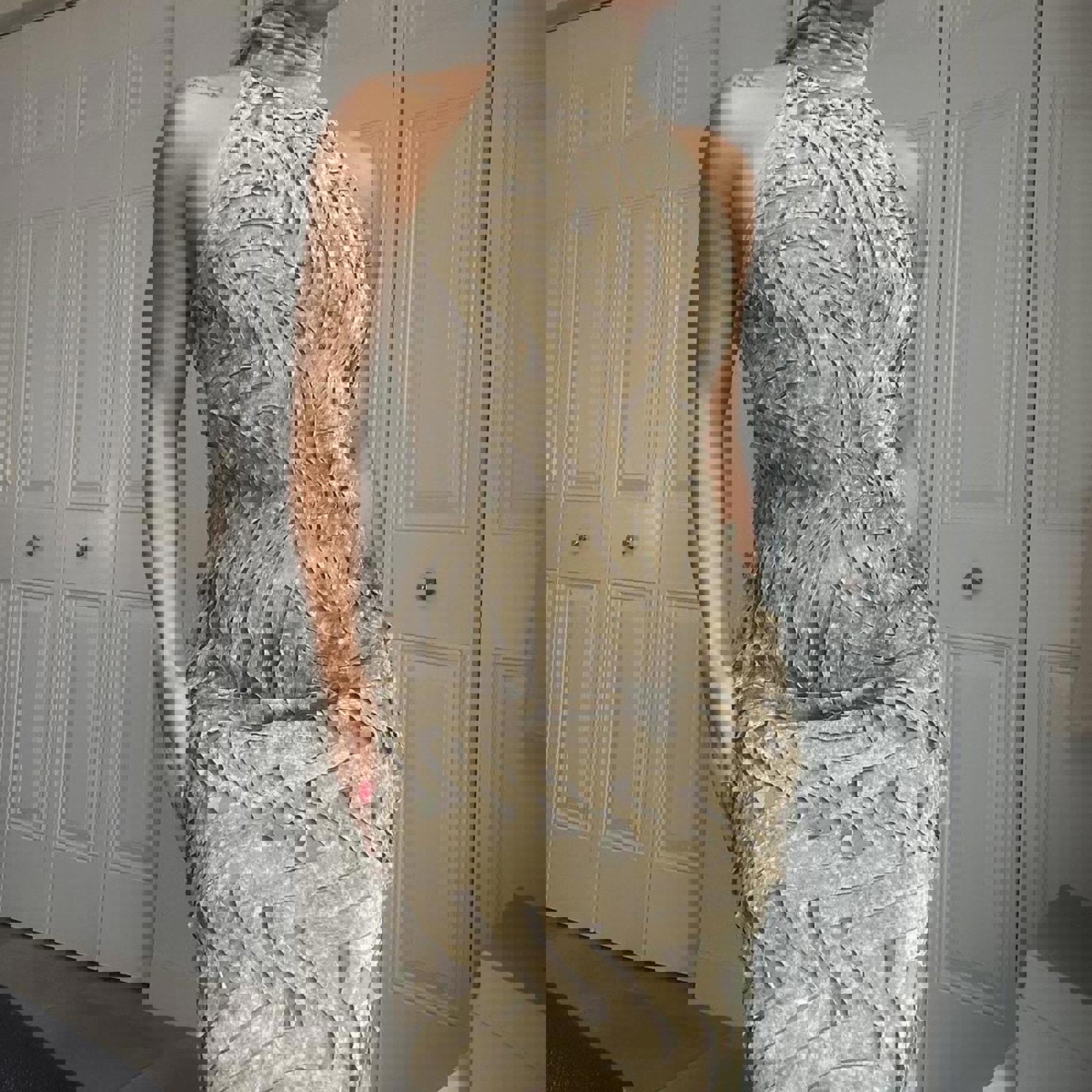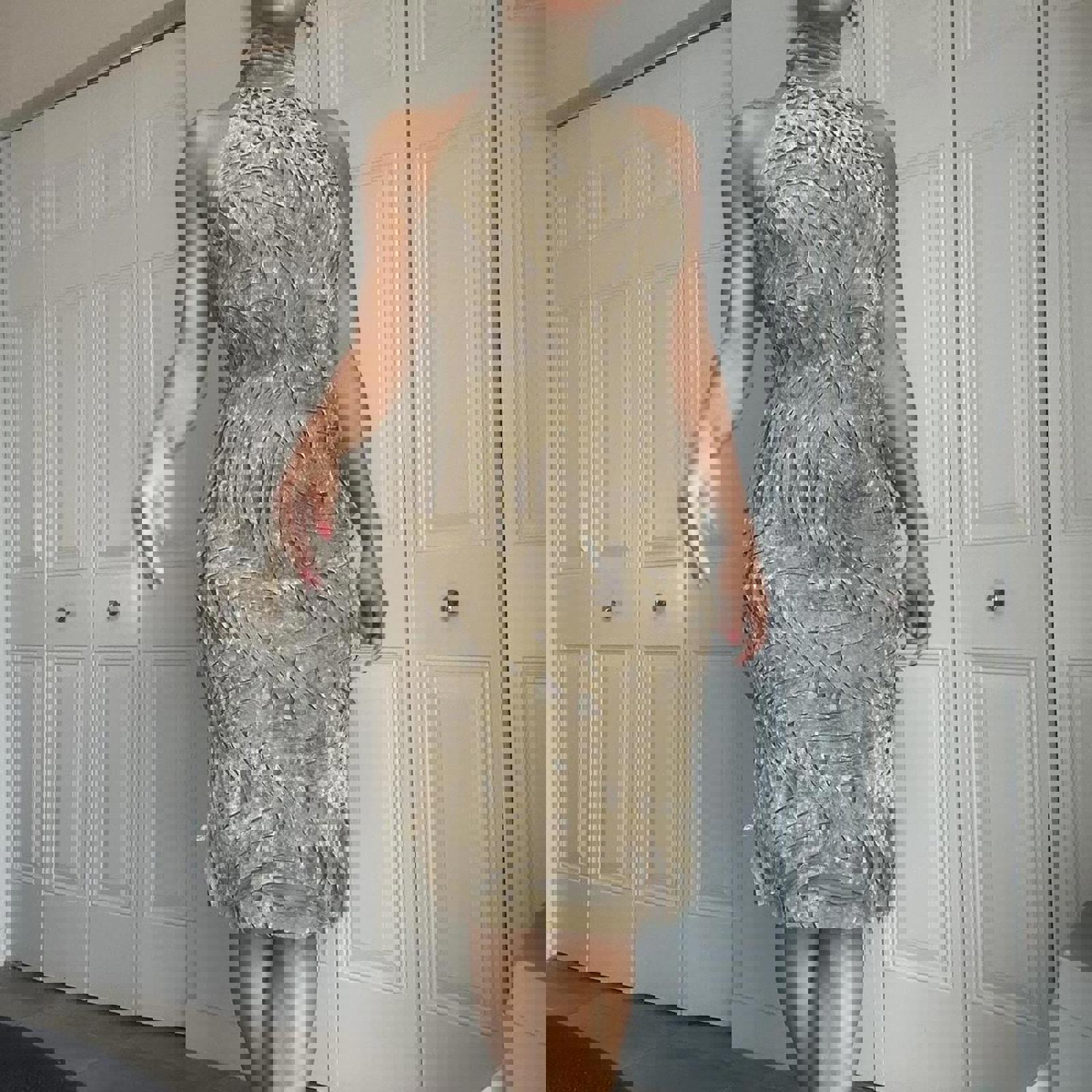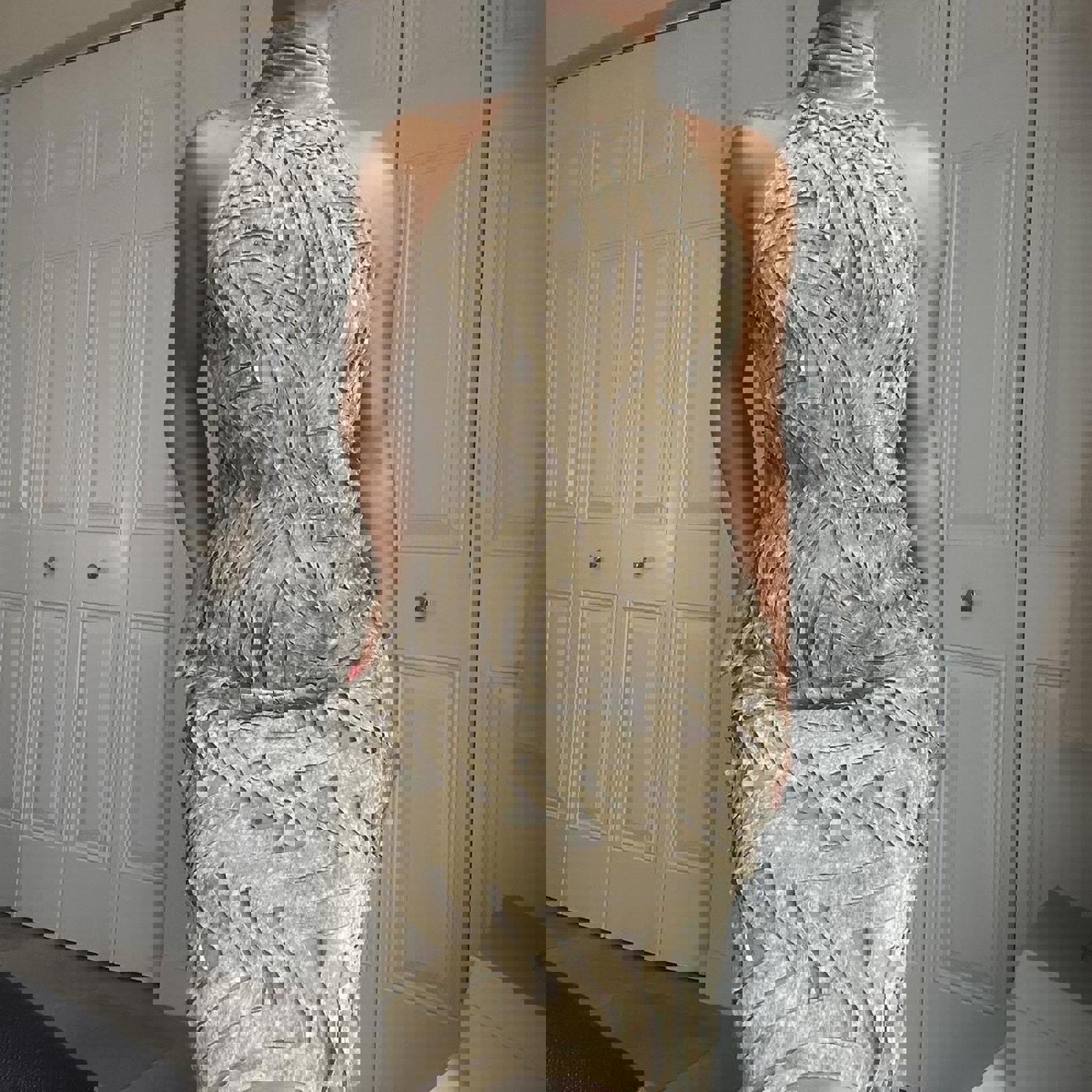 Absolutely gorgeous, a brown high neck halter dress in great condition. Has a velvet feel and beading on the top. No noticeable flaws. Measurements listed below.