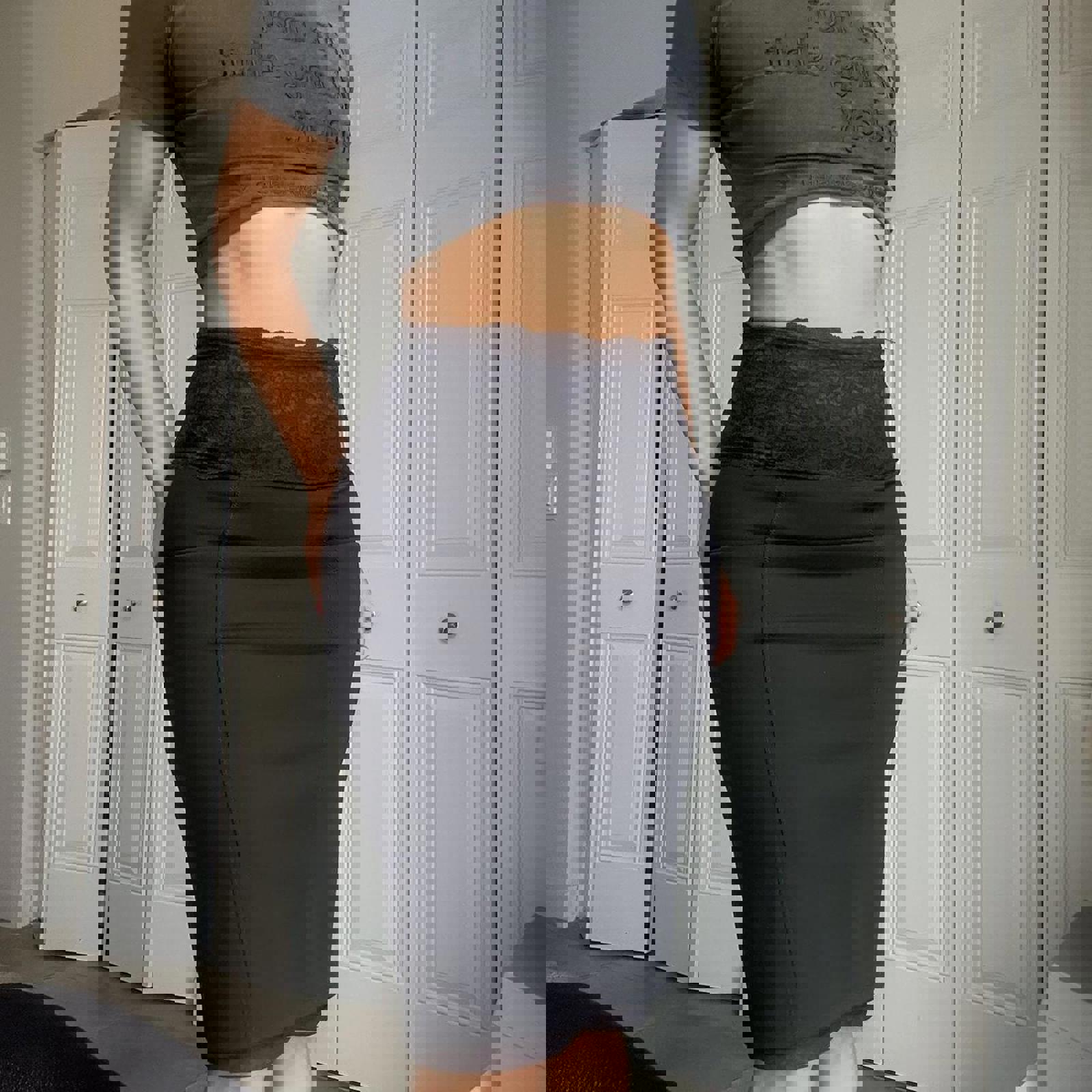 Black lace trimming midi skirt by Slim Fabulous. It is kind of like Skims in the way that it slims its shapewear. In perfect condition, size small. Measurements listed below: