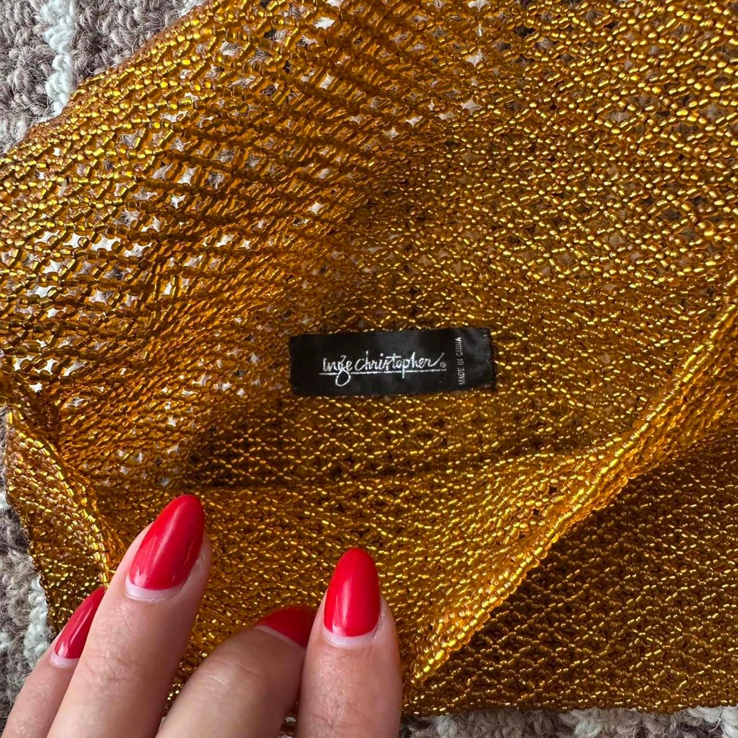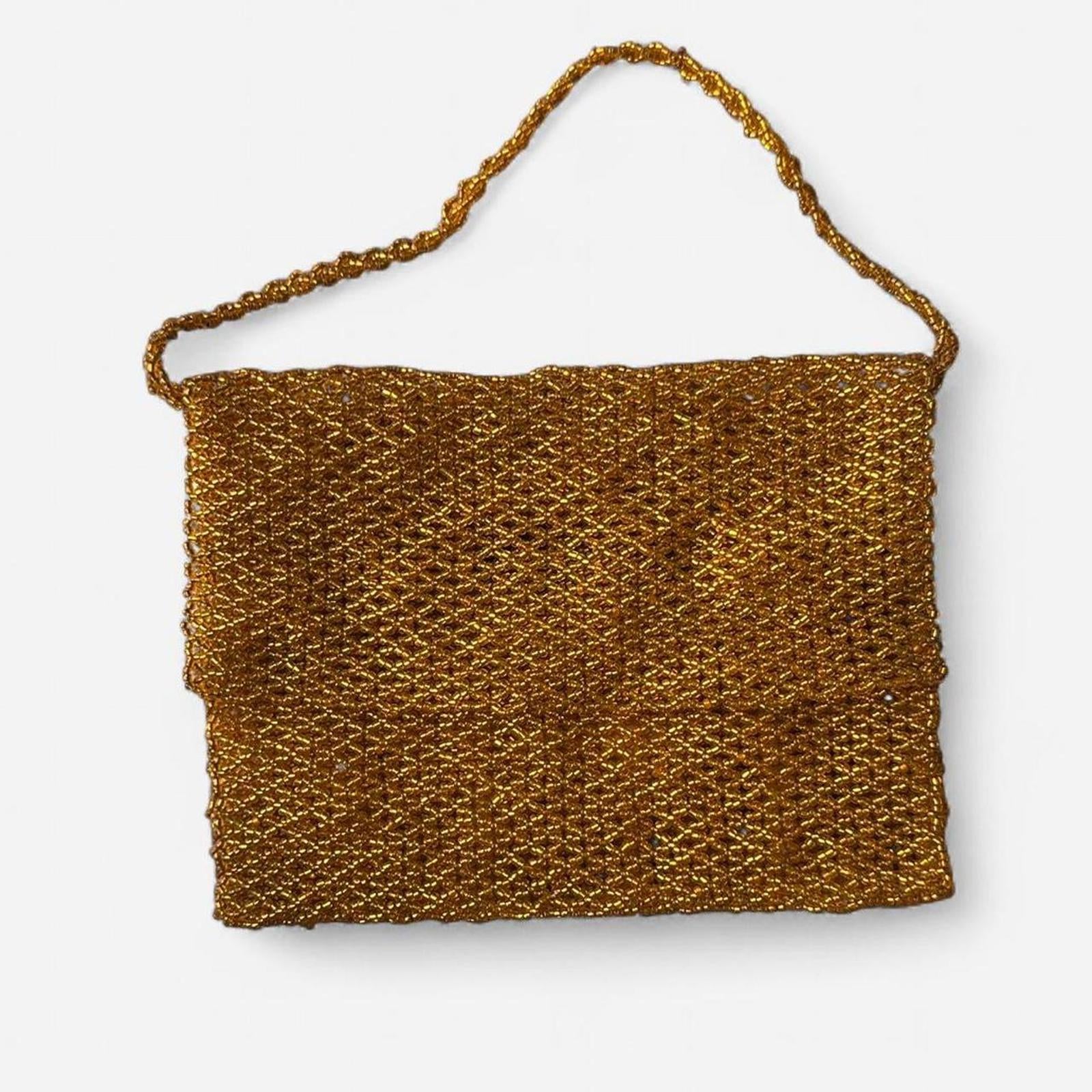 747. A 100% beaded vintage mini bag. It is like a flat mini bag, but it's so adorable. Kind of heavy, which is nice. It has a flap that closes. Measurements listed below:
