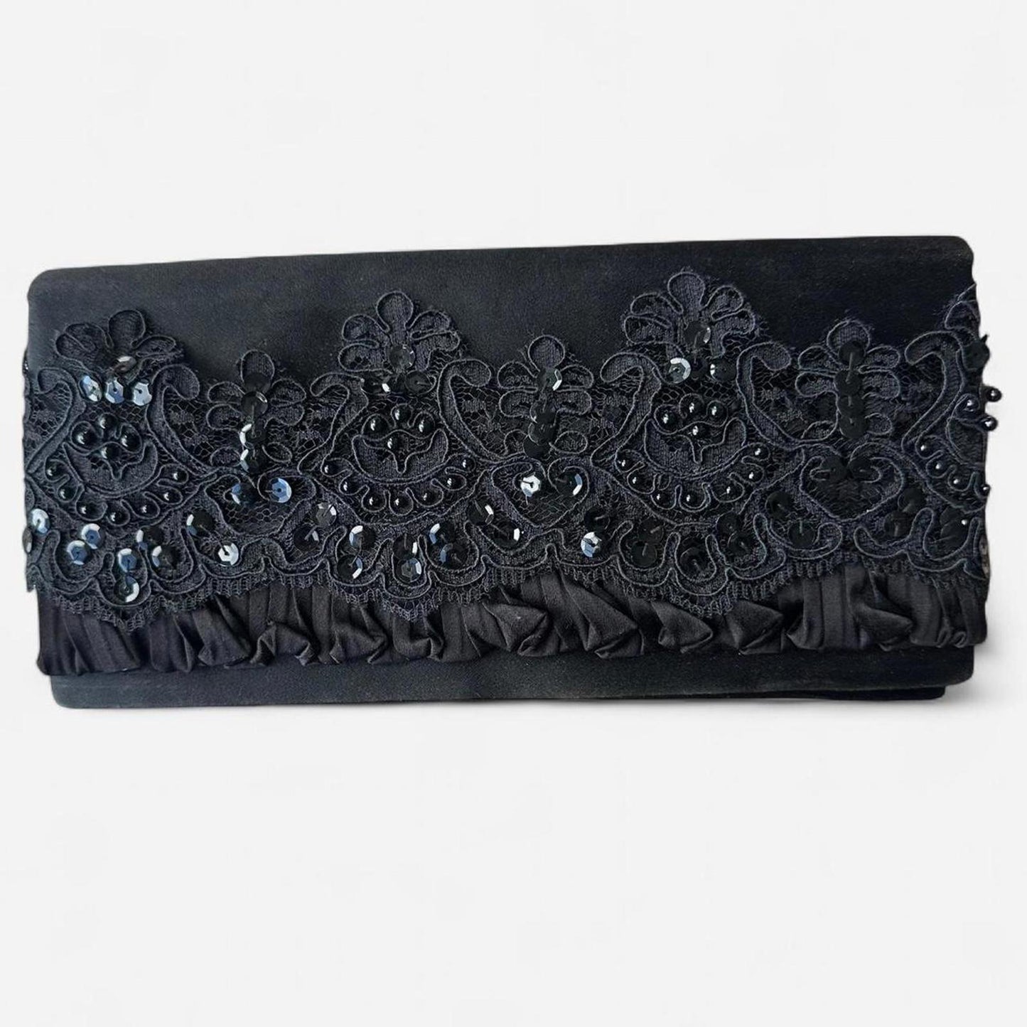 beaded clutch, lace detail, evening bag, party purse, black accessory, formal clutch, mini bag, embellished bag, night out bag