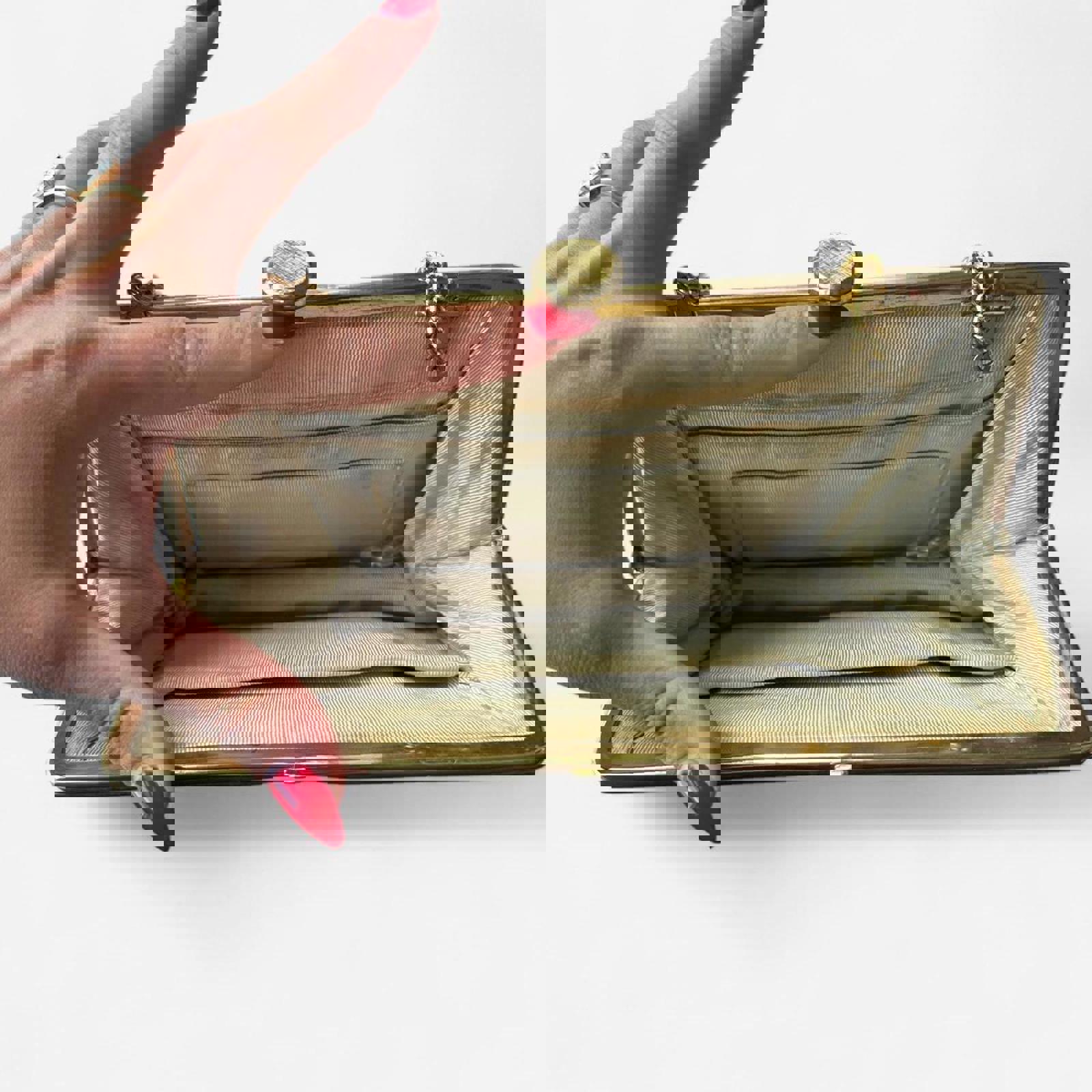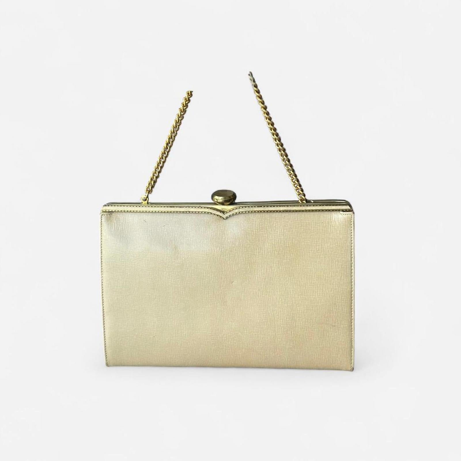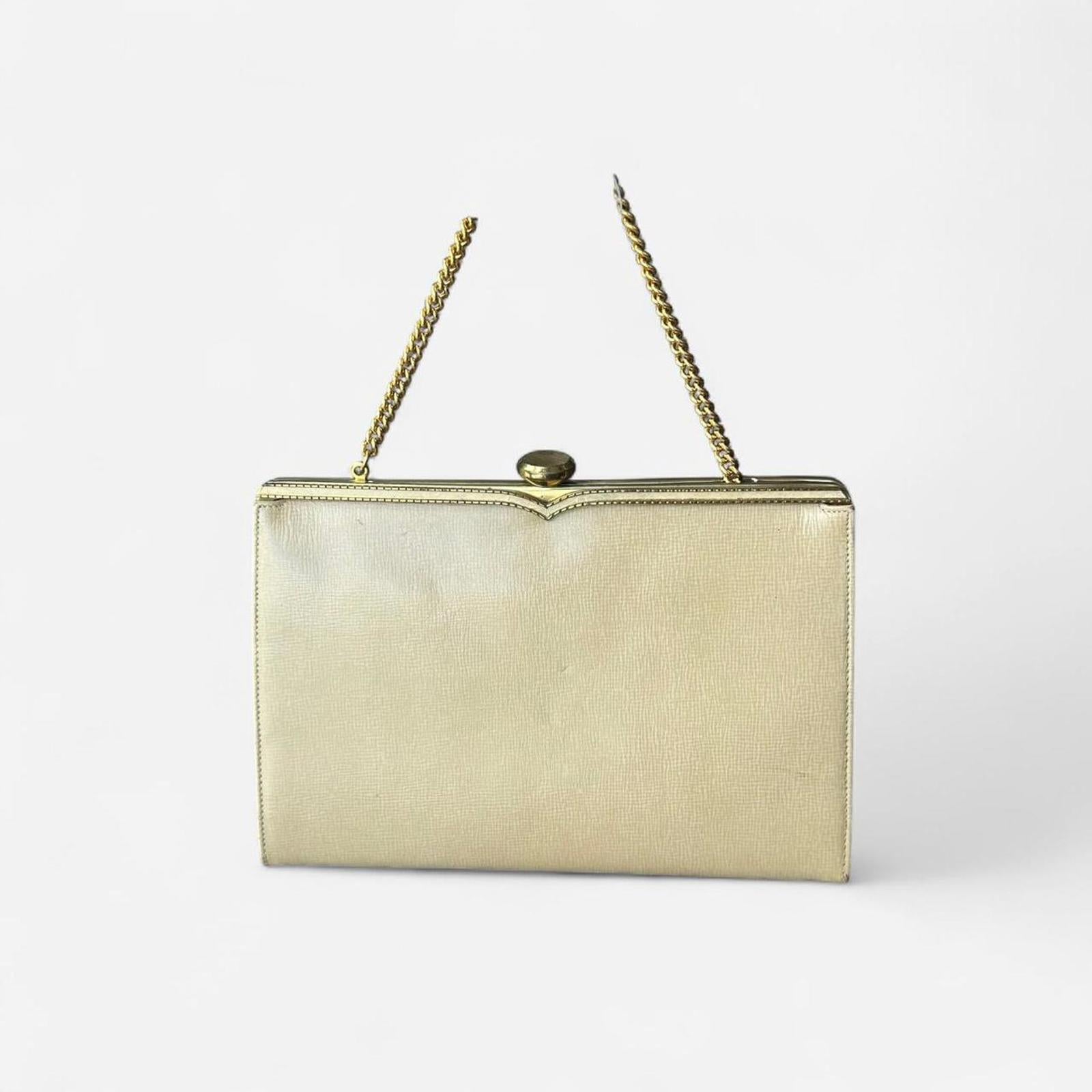 The absolute cutest vintage cream-colored leather pocket book/clutch in great condition. Some staining from makeup on the inside, but otherwise really beautiful condition. Gold hardware.