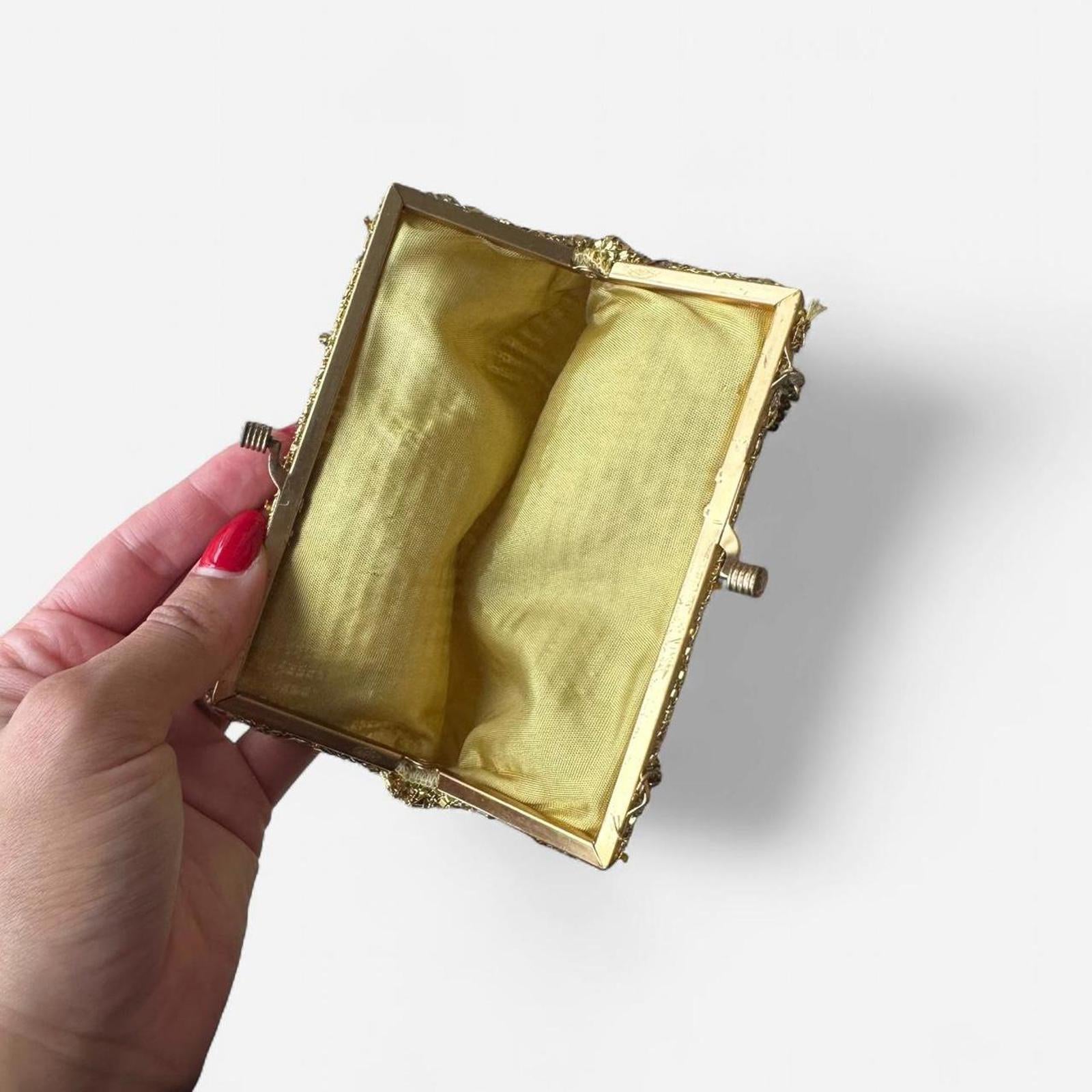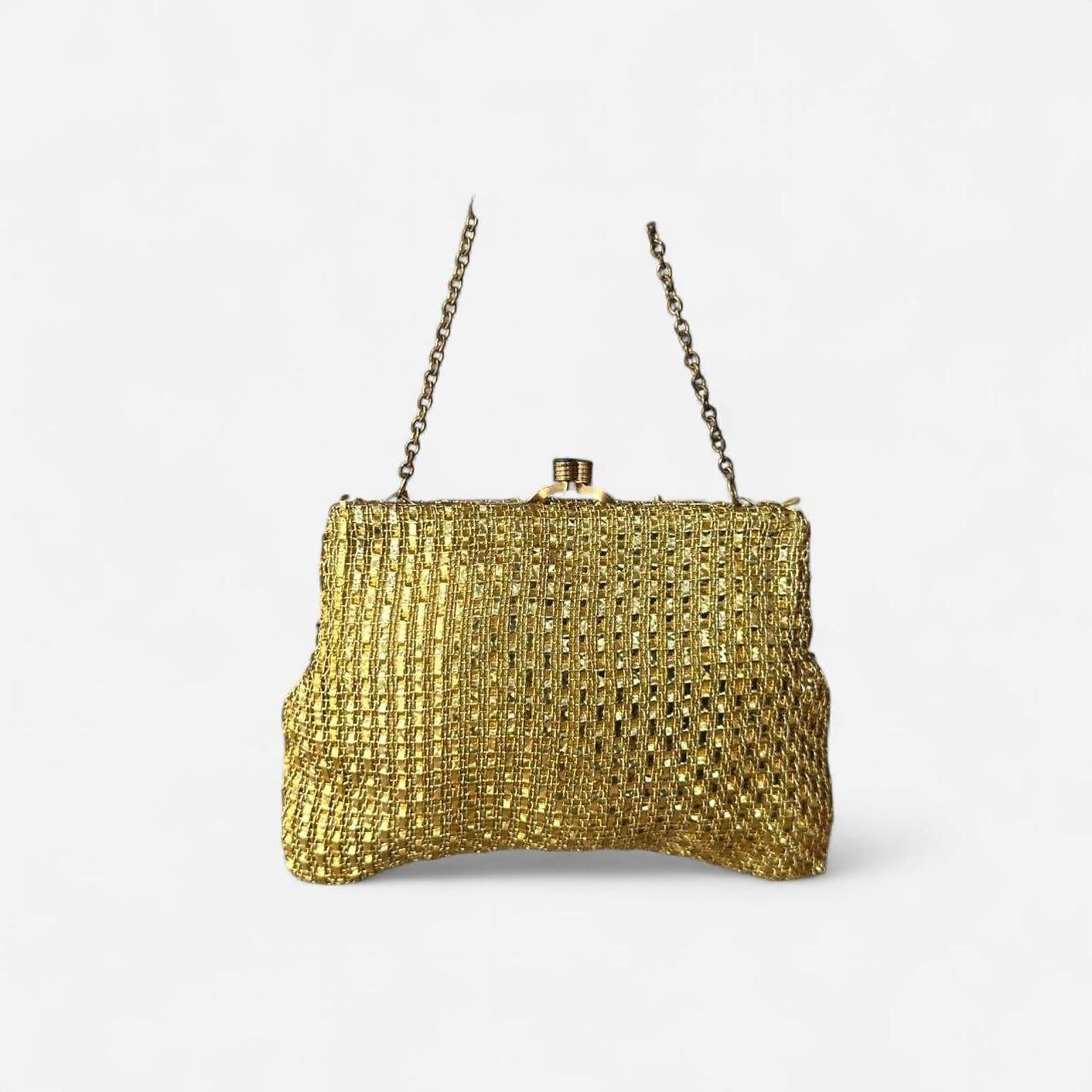 gold mini bag, evening clutch, gold hardware, evening accessory, party bag, compact purse, jewelry-inspired, evening clutch, statement bag, miniature pouch