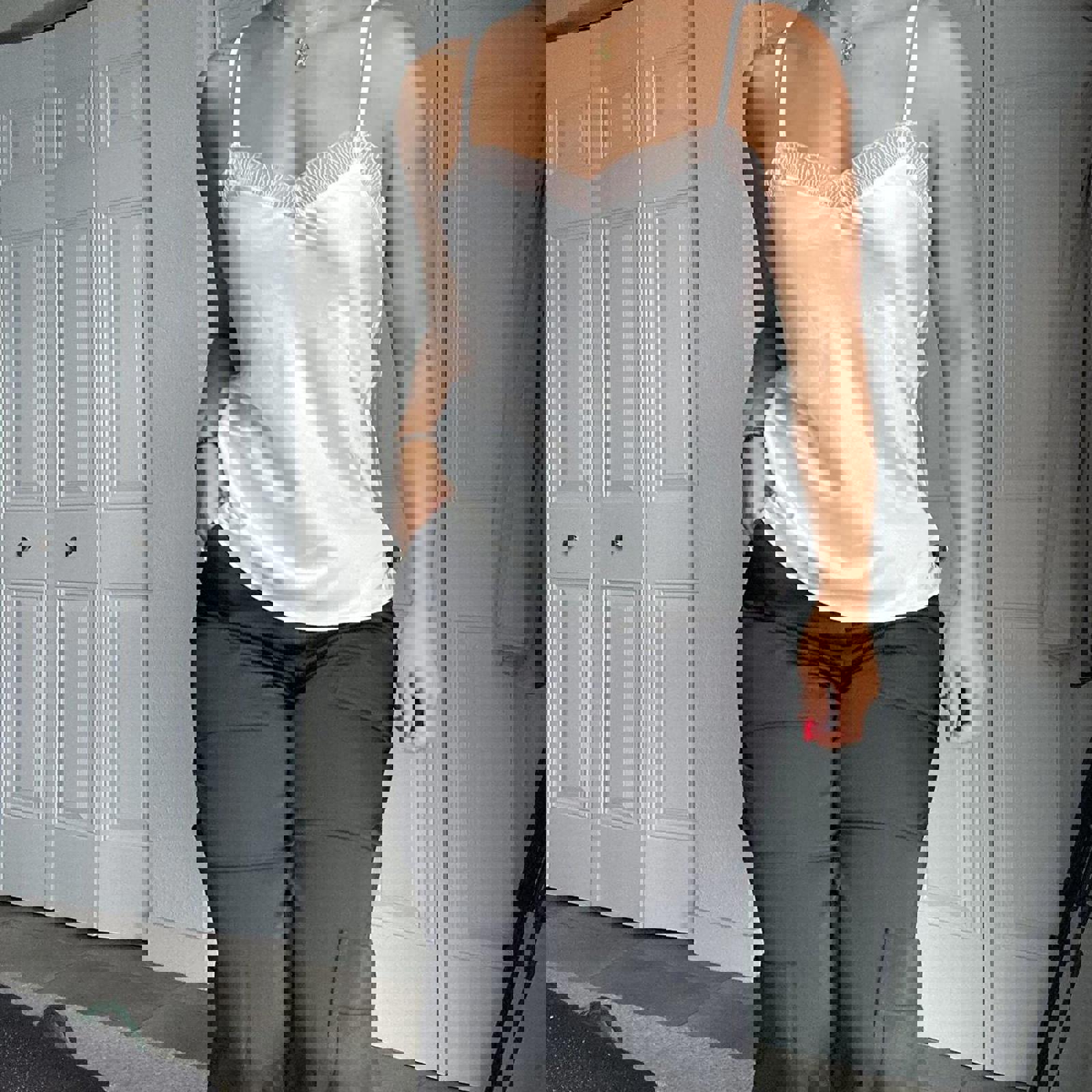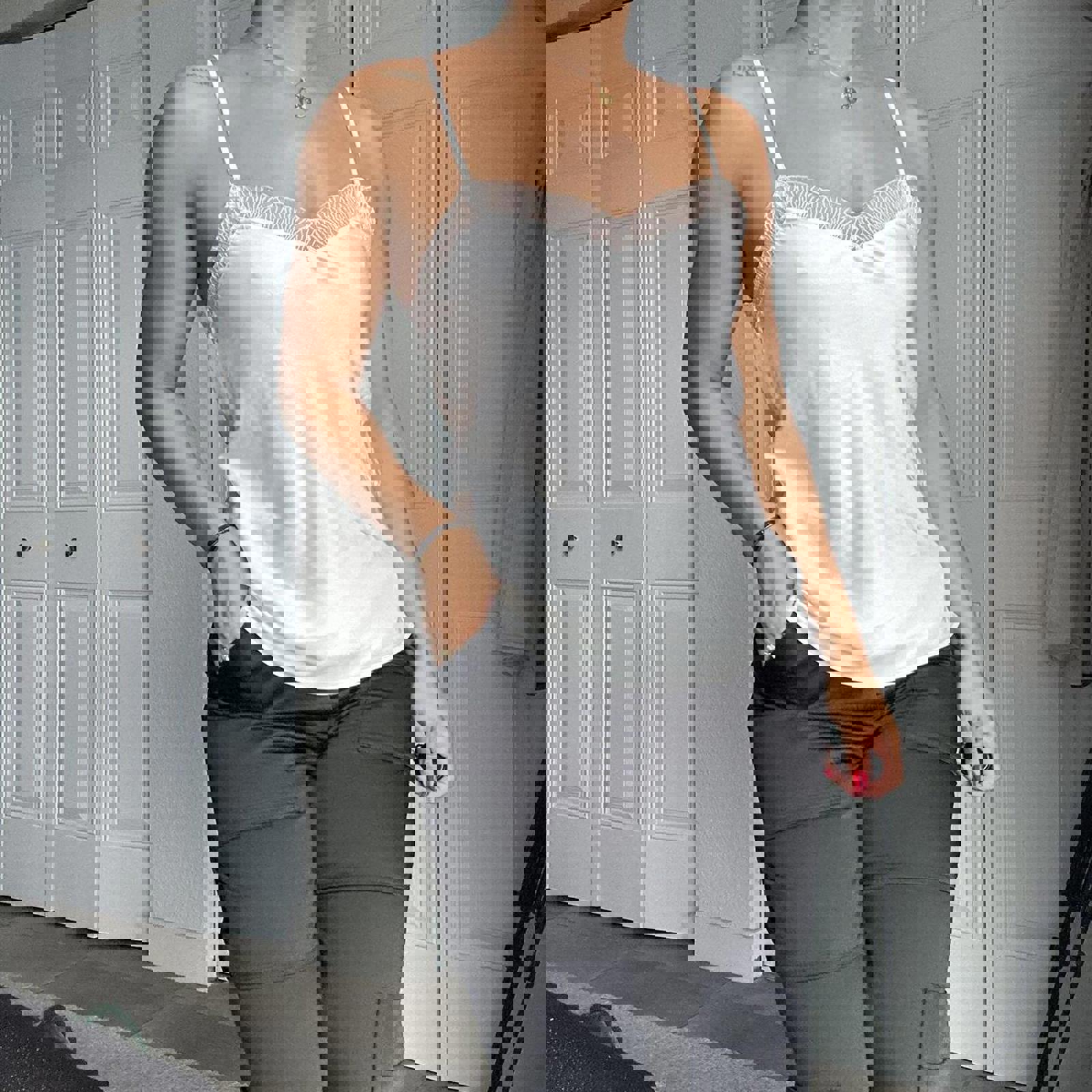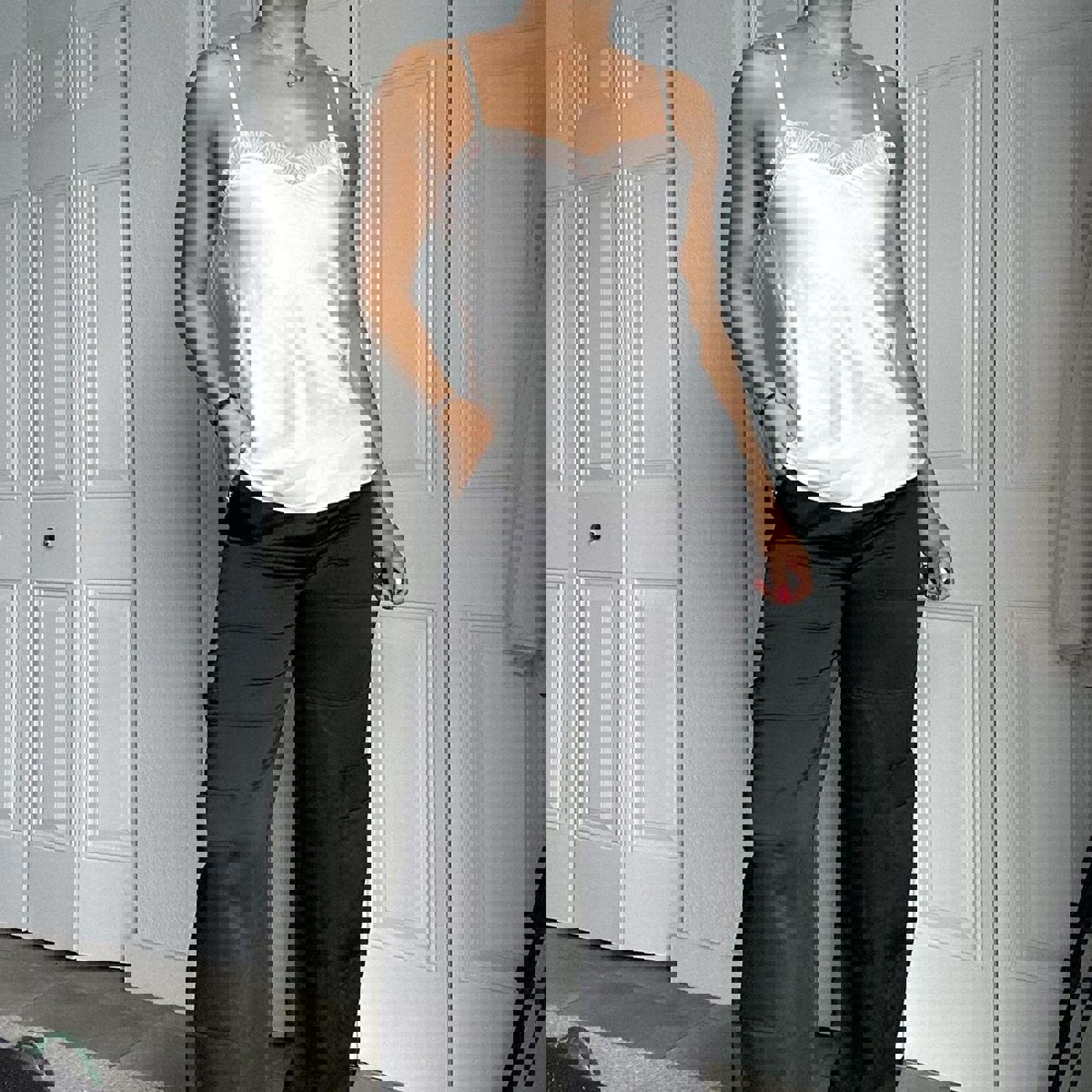 663. Cream colored lace camisole top in a size 2XS. It really does fit like a small or extra small. It has adjustable straps. Perfect condition.
