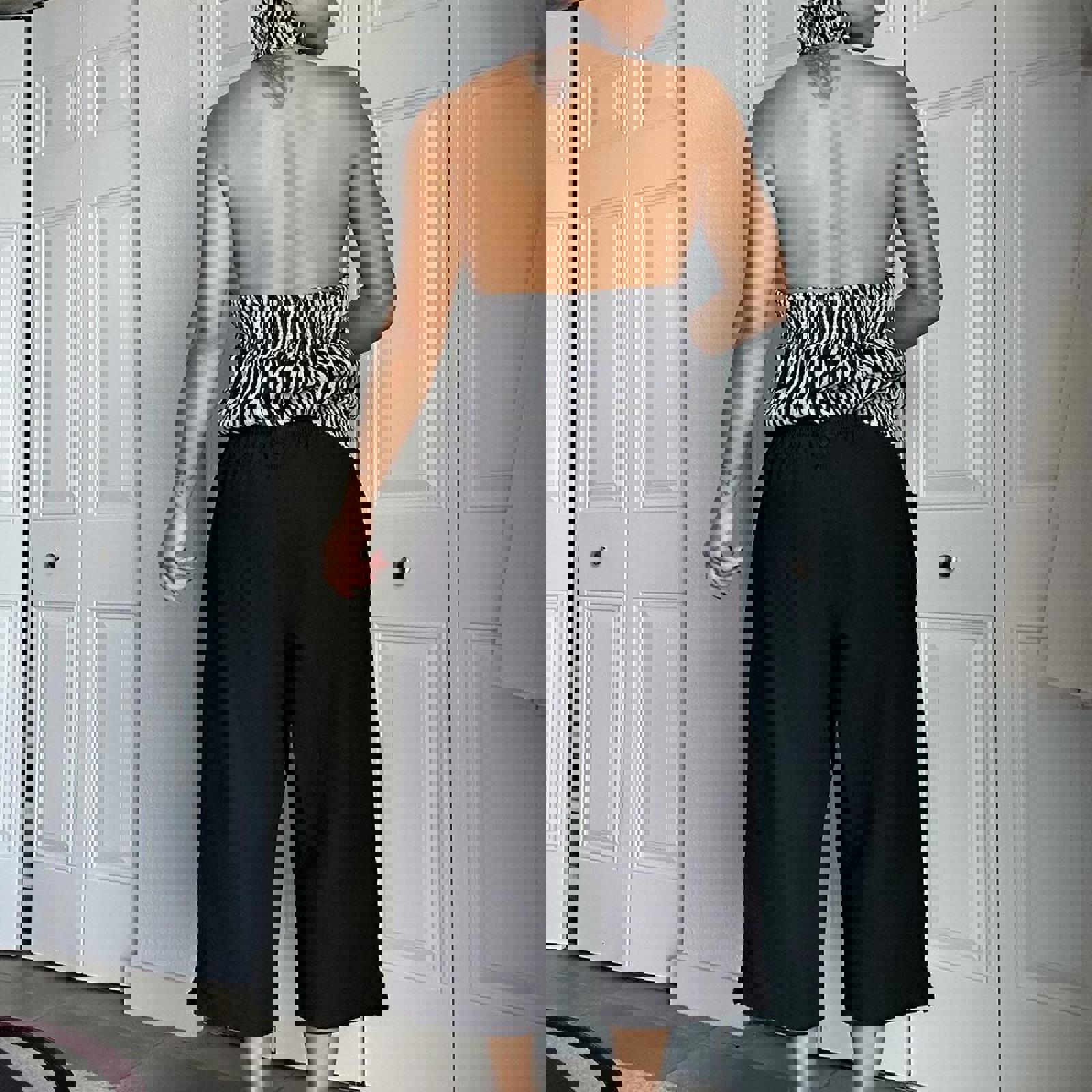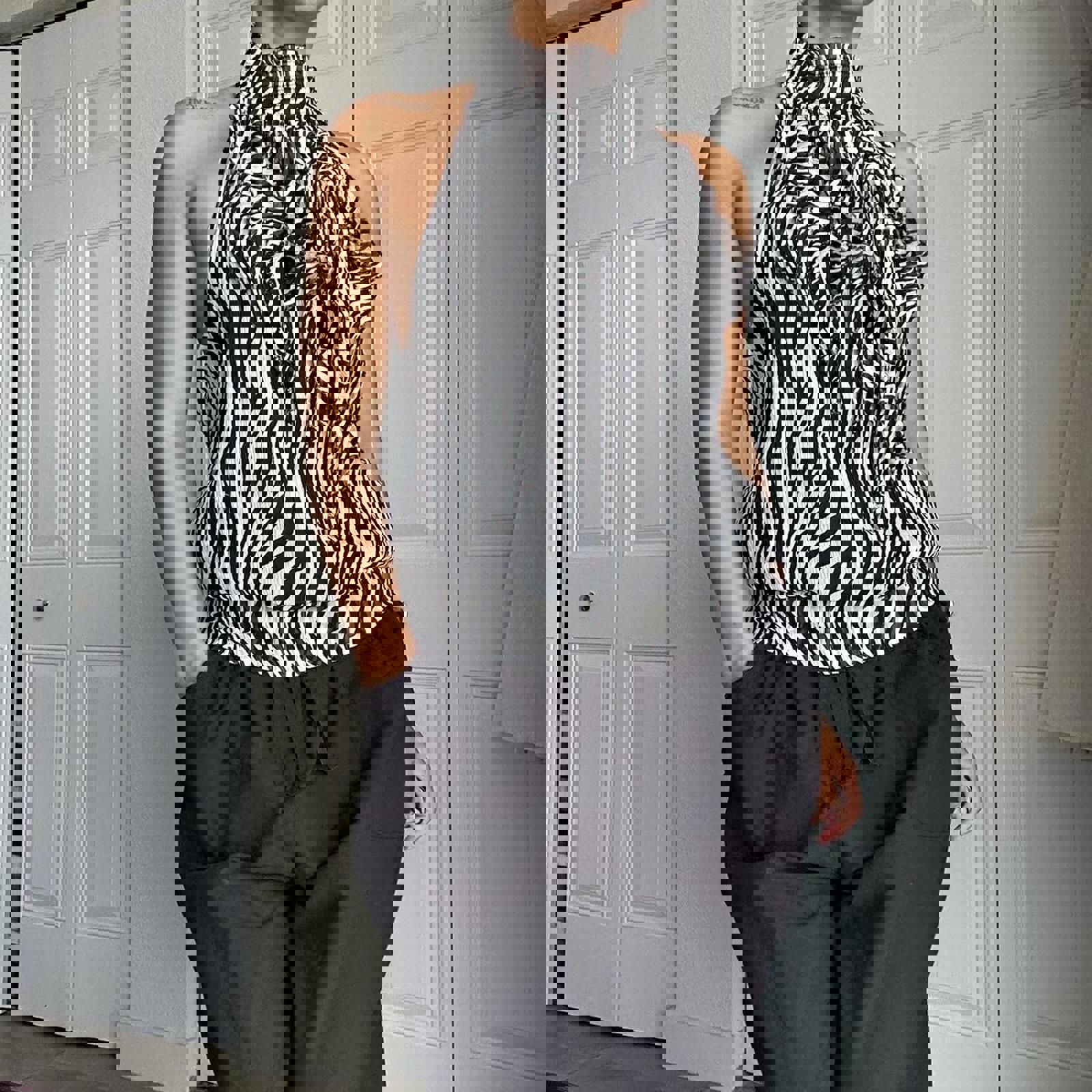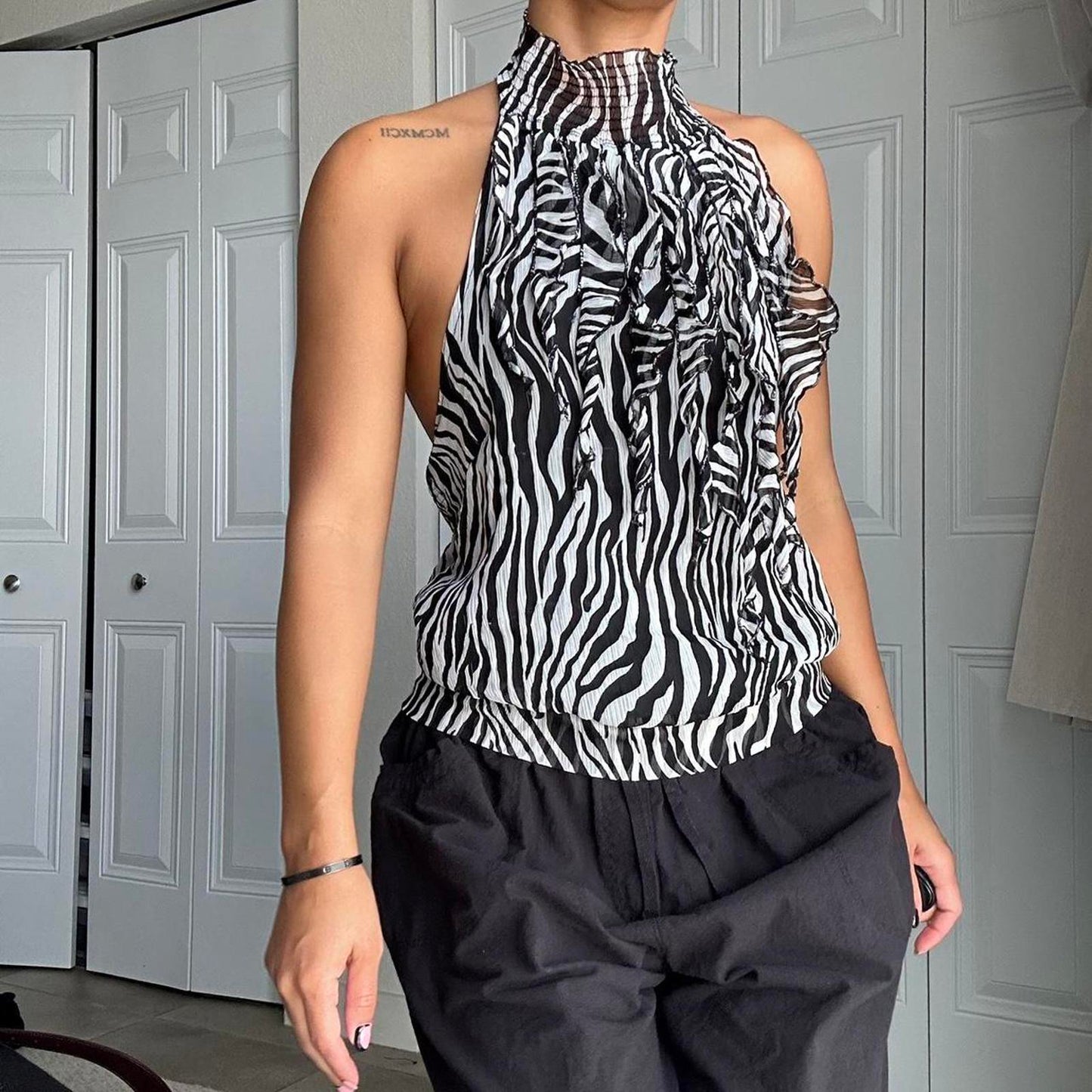 589. Passport zebra print high neck halter top in a size medium shown on a small. Perfect condition