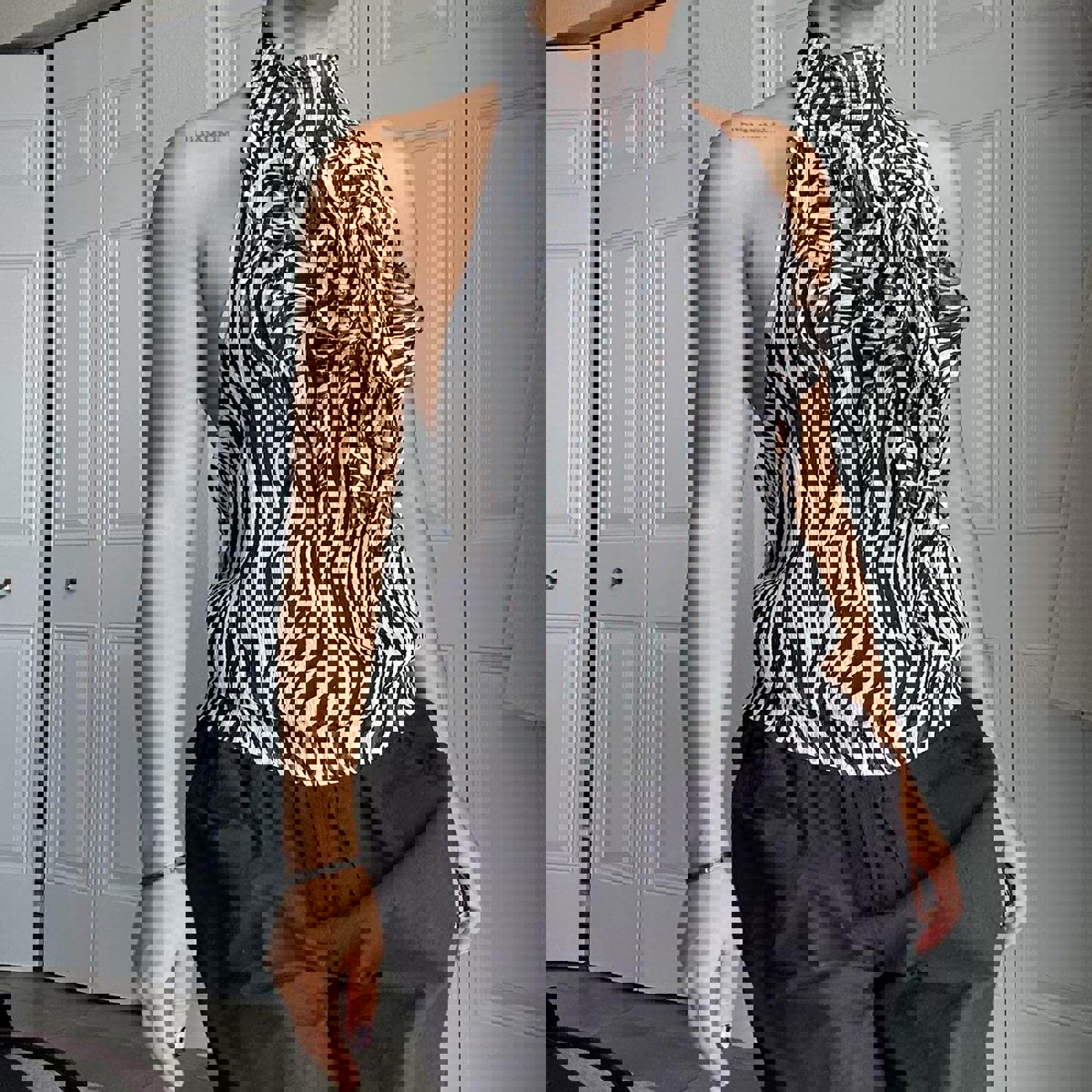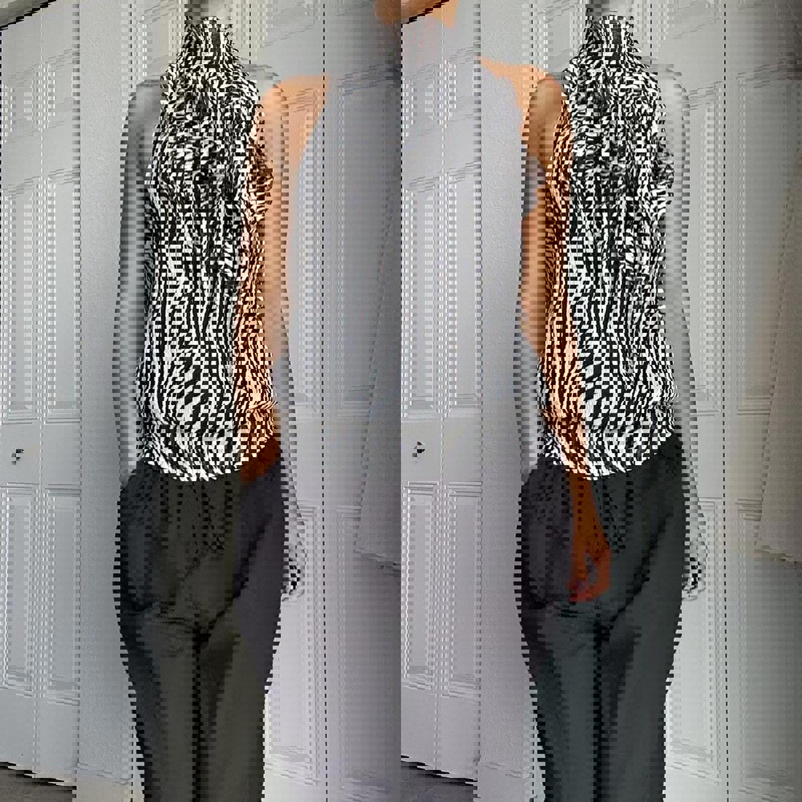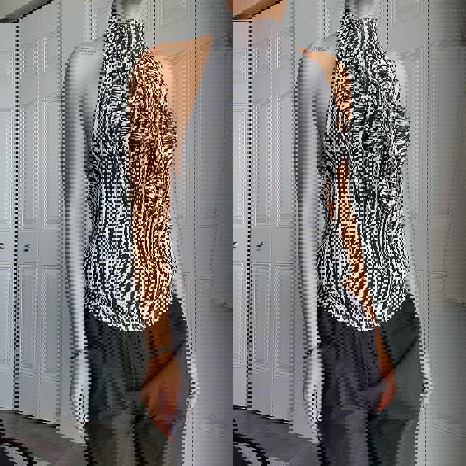 589. Passport zebra print high neck halter top in a size medium shown on a small. Perfect condition