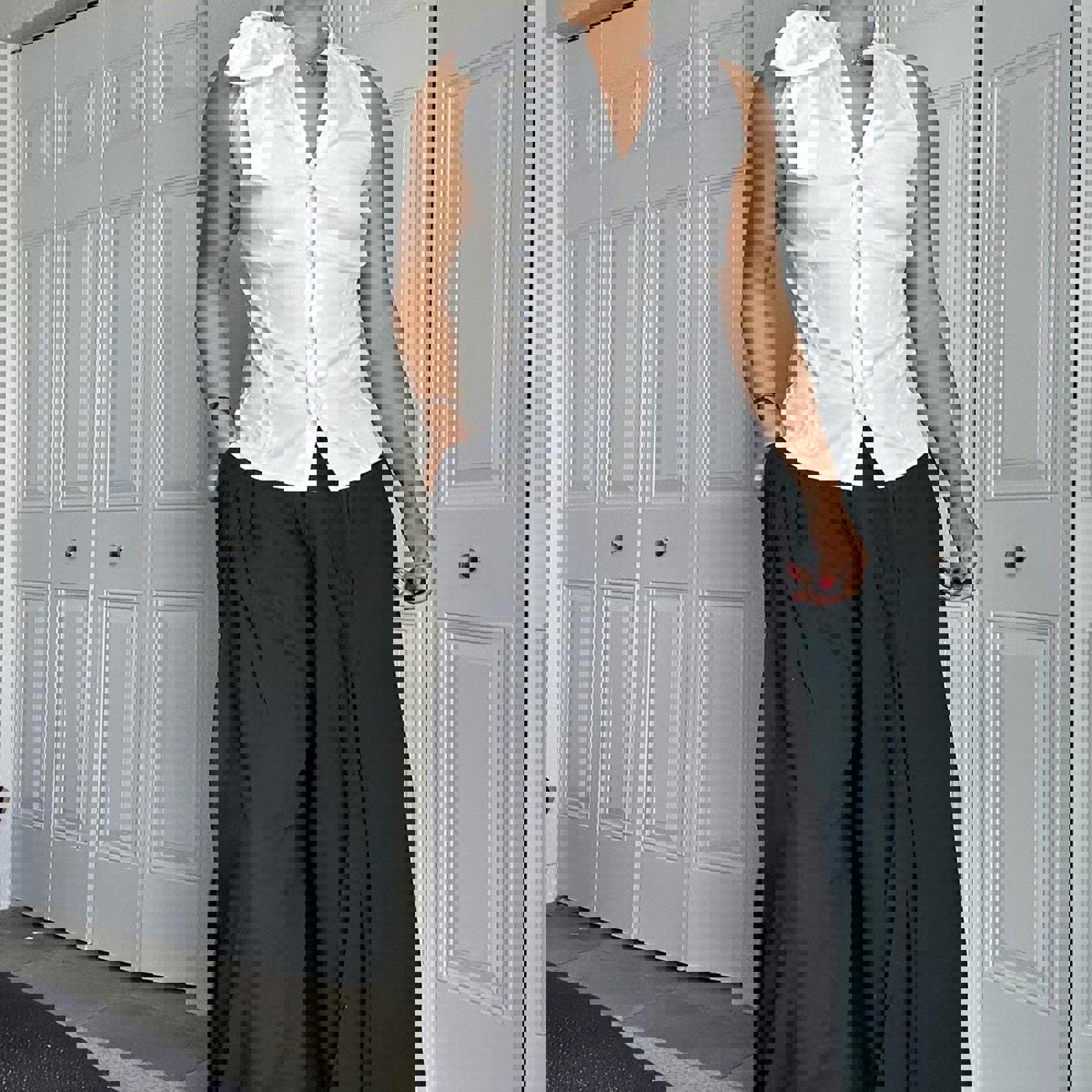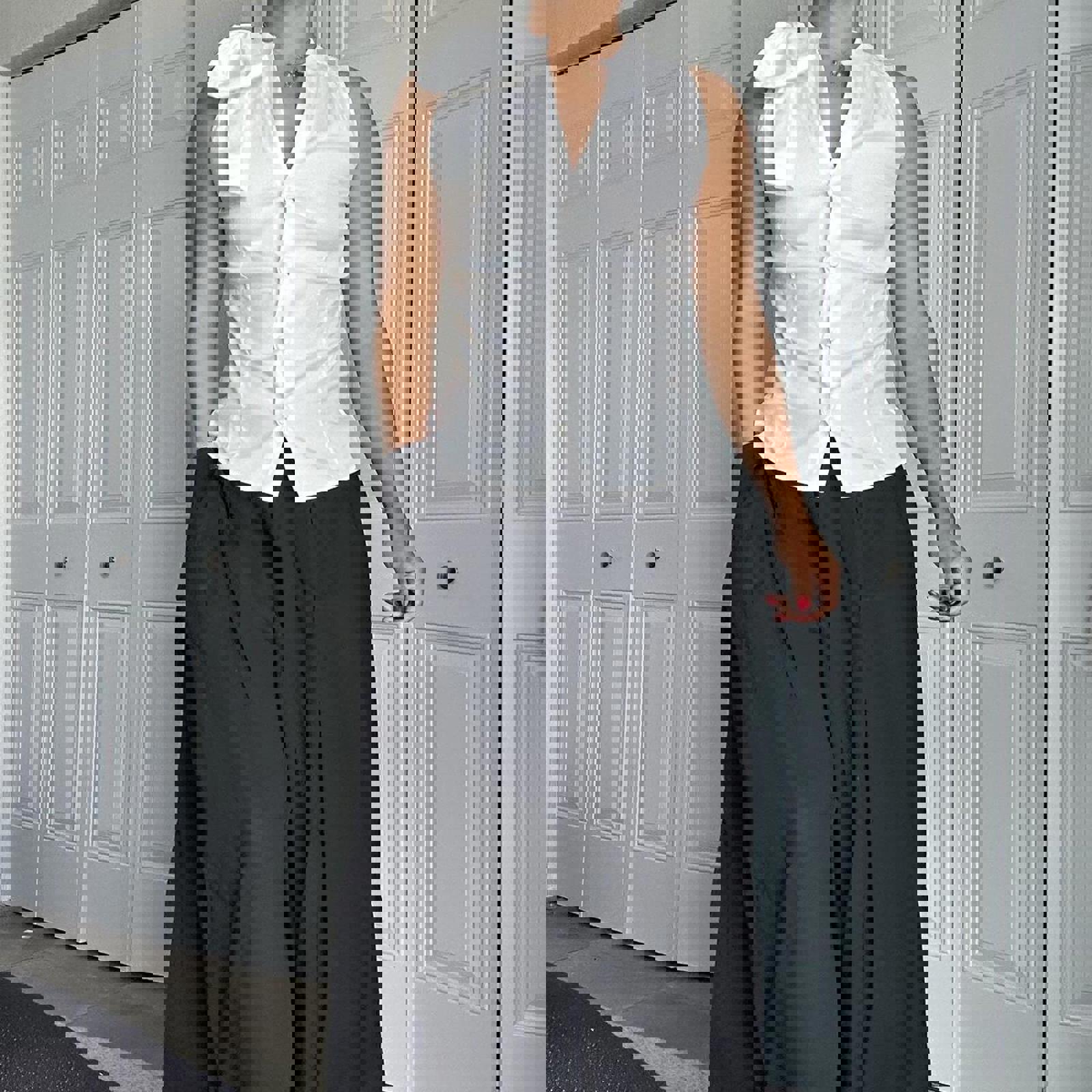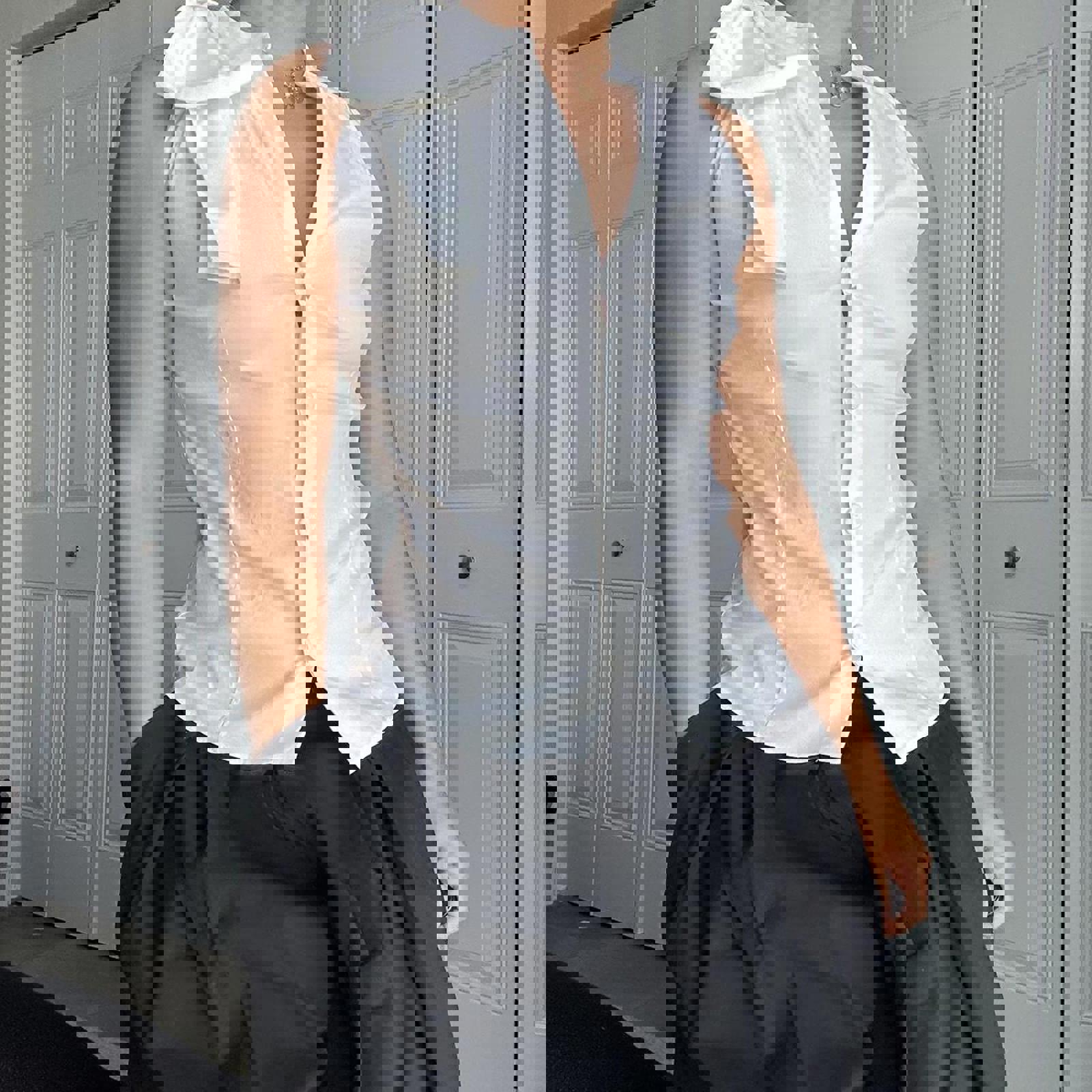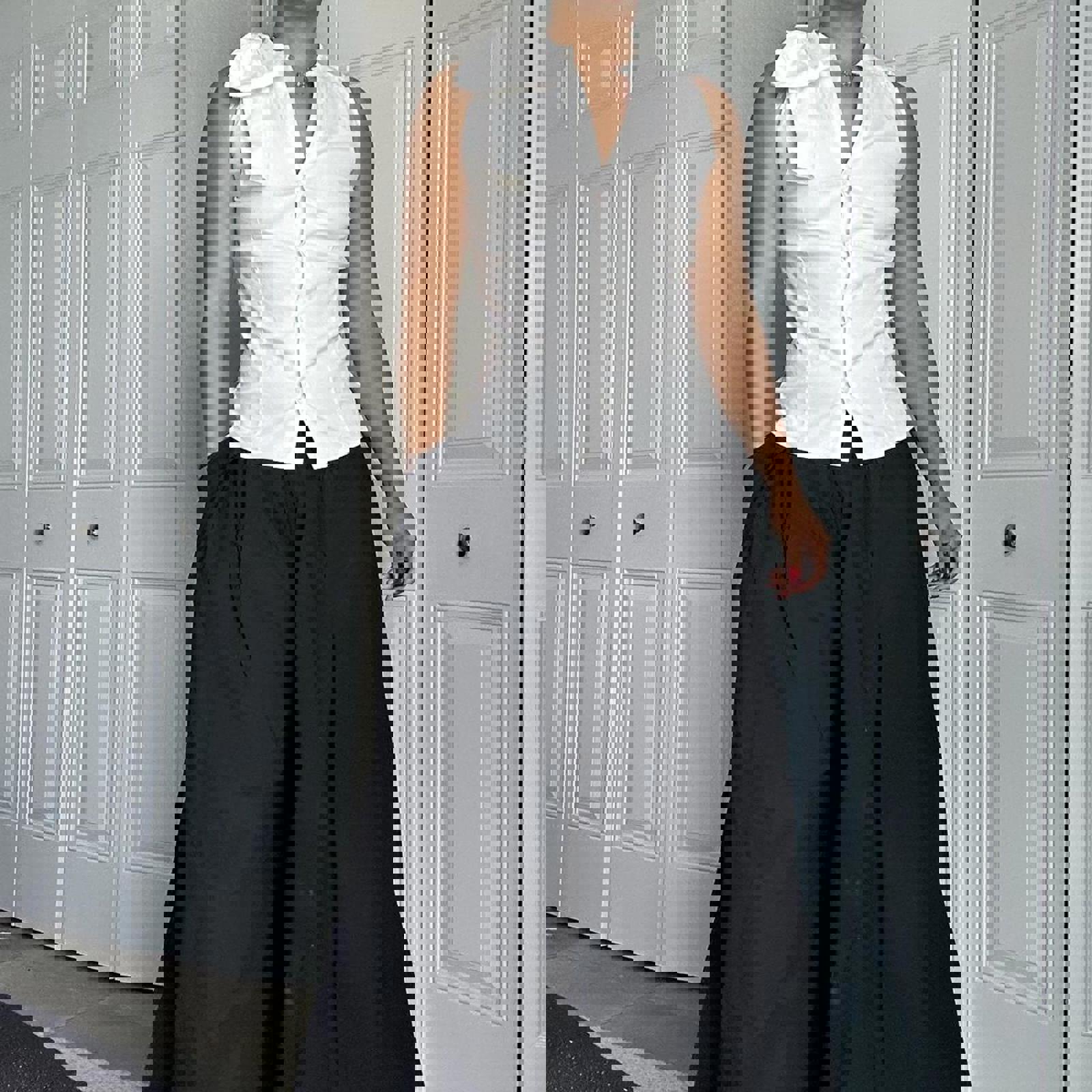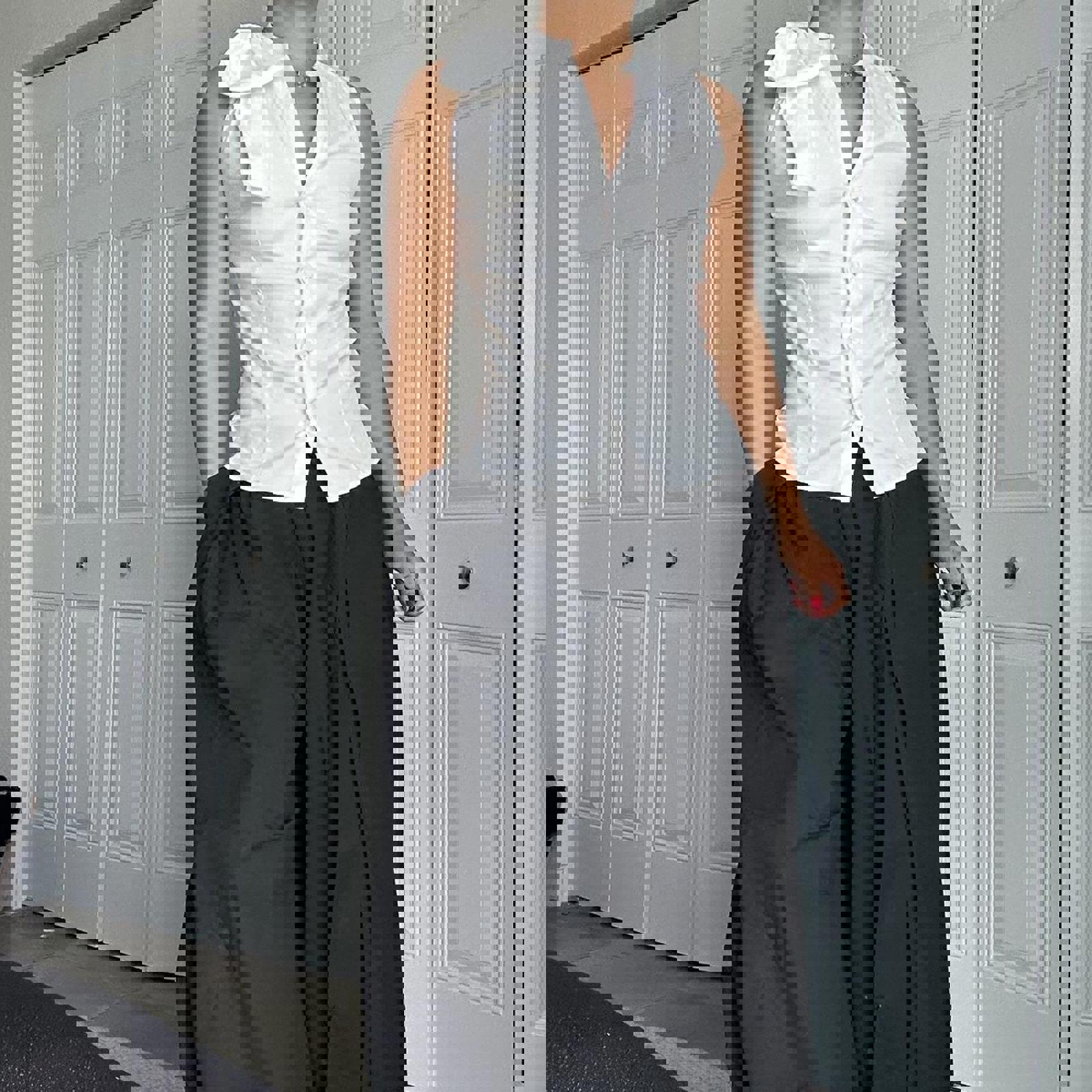 cotton top, bow shoulder detail, sleeveless blouse, tailored fit, white tank, minimalistic, smart casual, summer top, office wear, feminine style