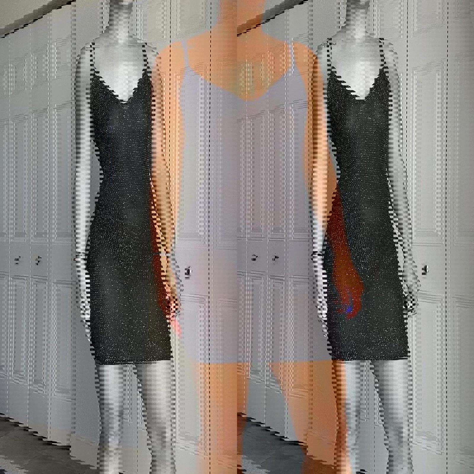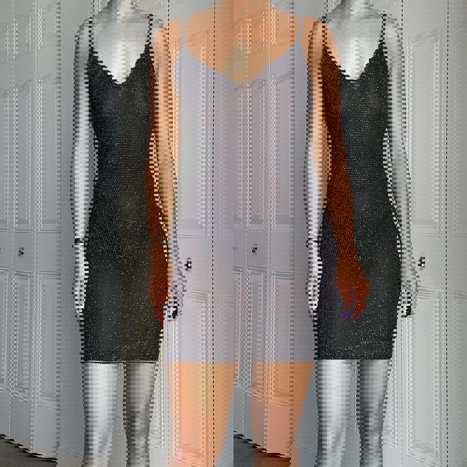 336. Pretty little thing black glittery sheer dress. It is a size 4 but it has a lot of stretch so I could see it fitting up to a size large. Absolutely perfect condition. So cute for the summer