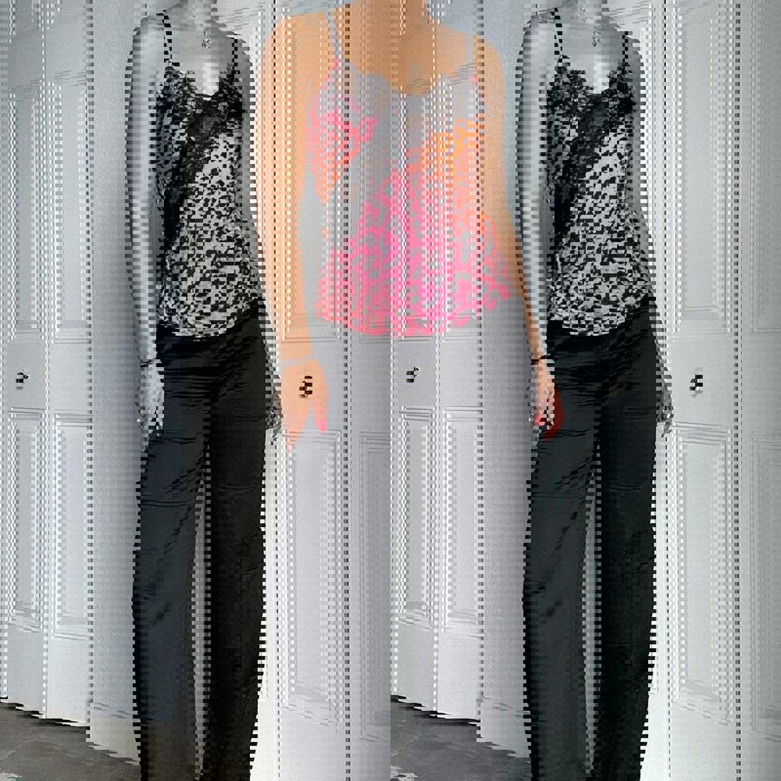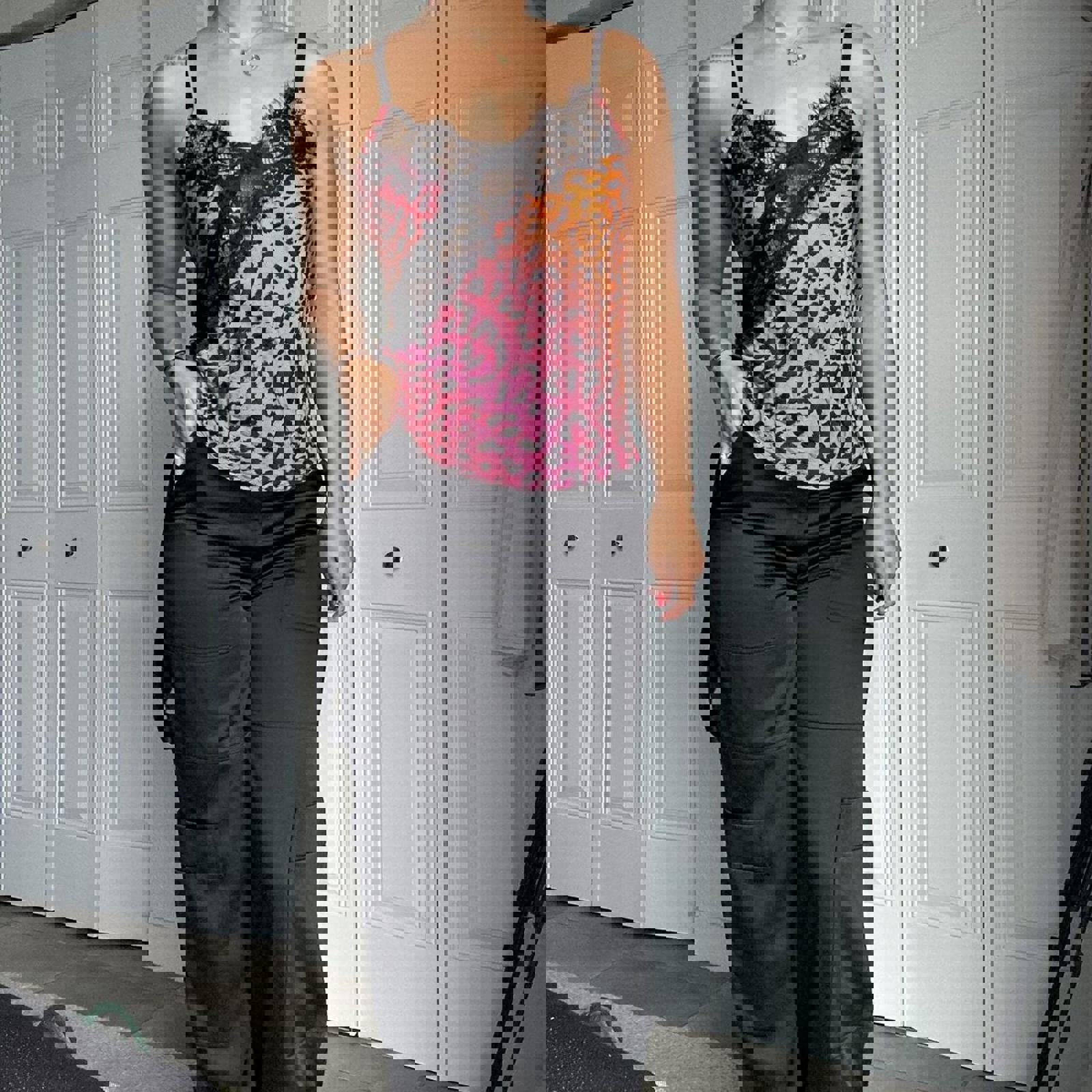 665. Q2 Pink and black cami top #y2kfashion #glamtop size small 100% viscose