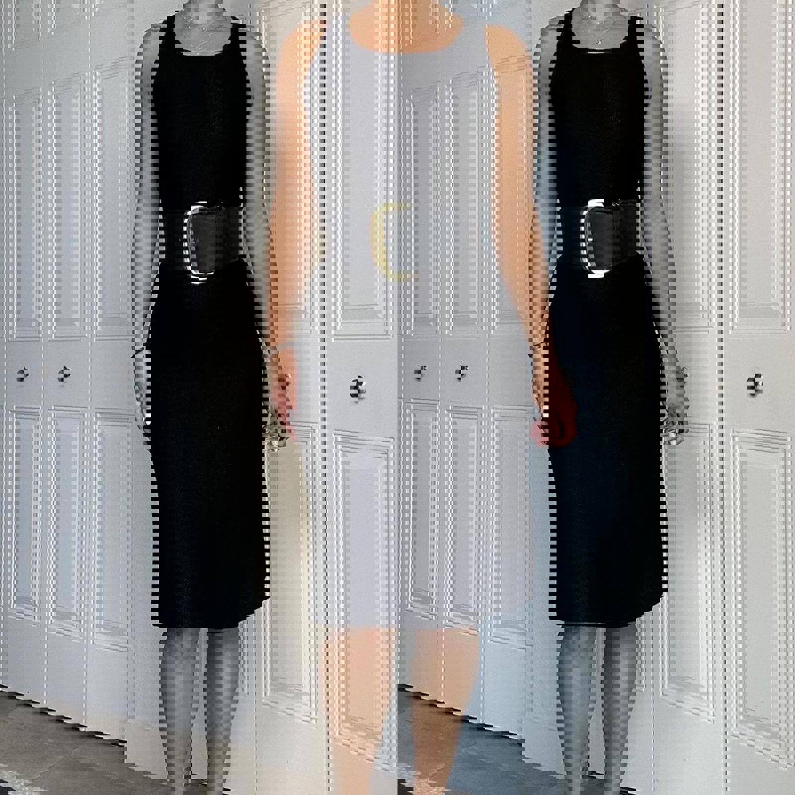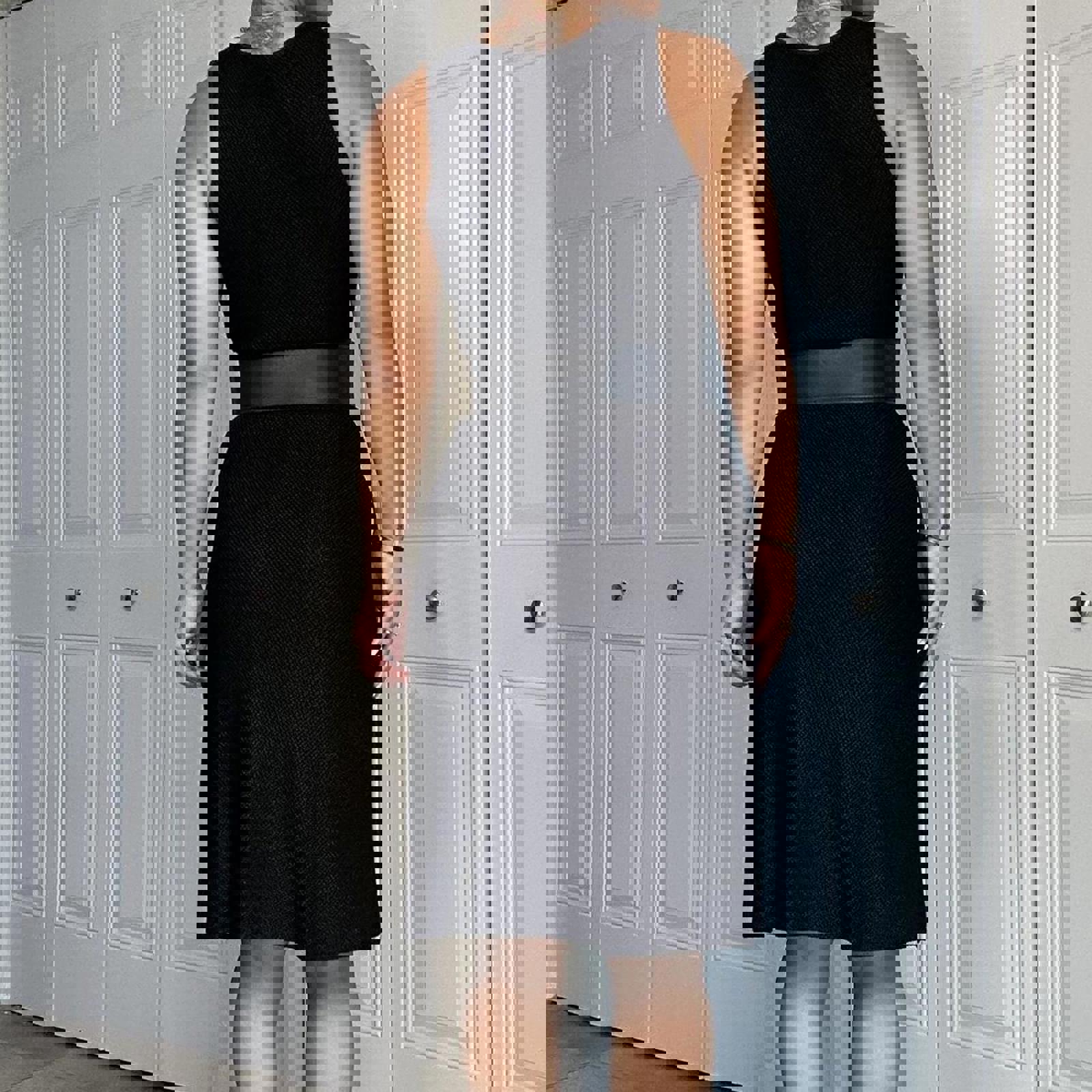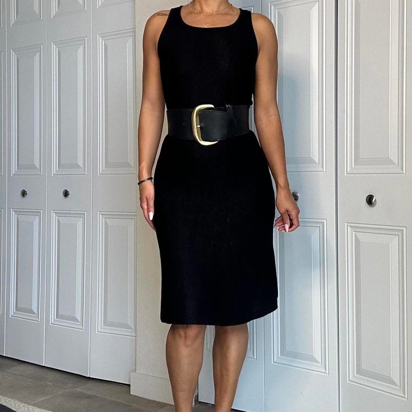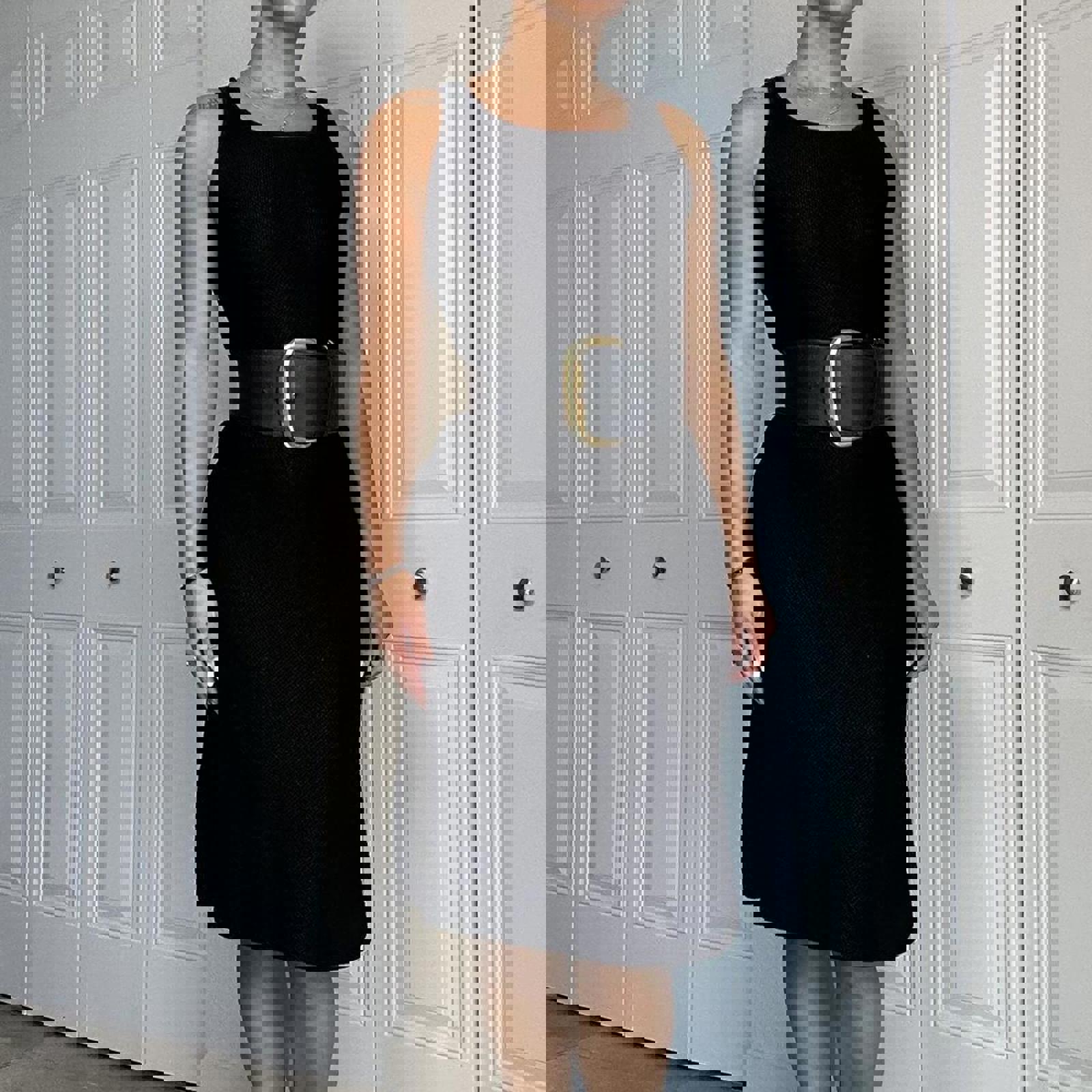 525. Black knit Ralph Lauren dress soooo flattering - size xs shown on a small. Belt pictured not included
