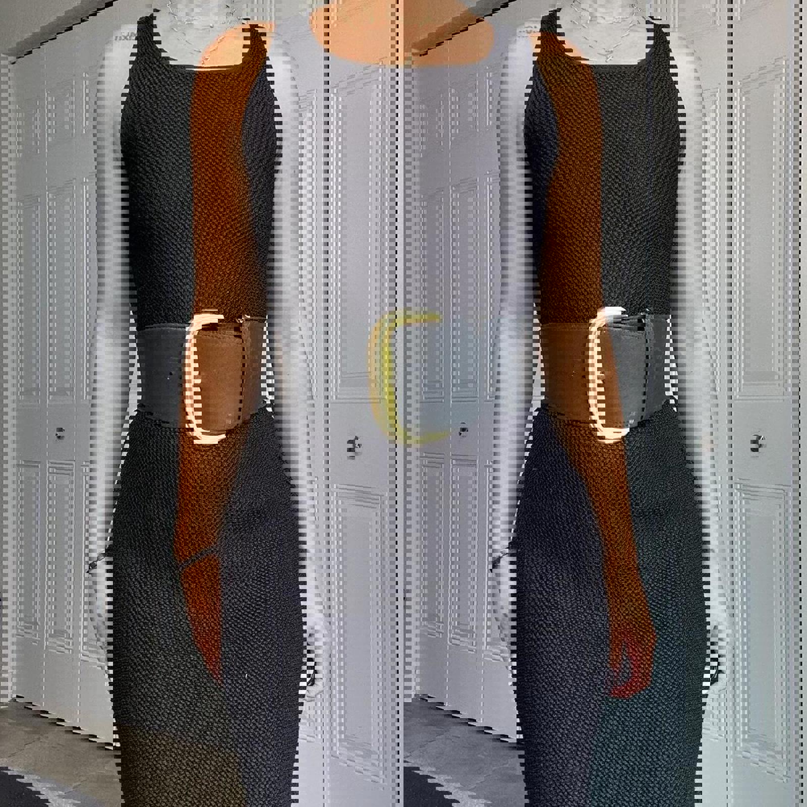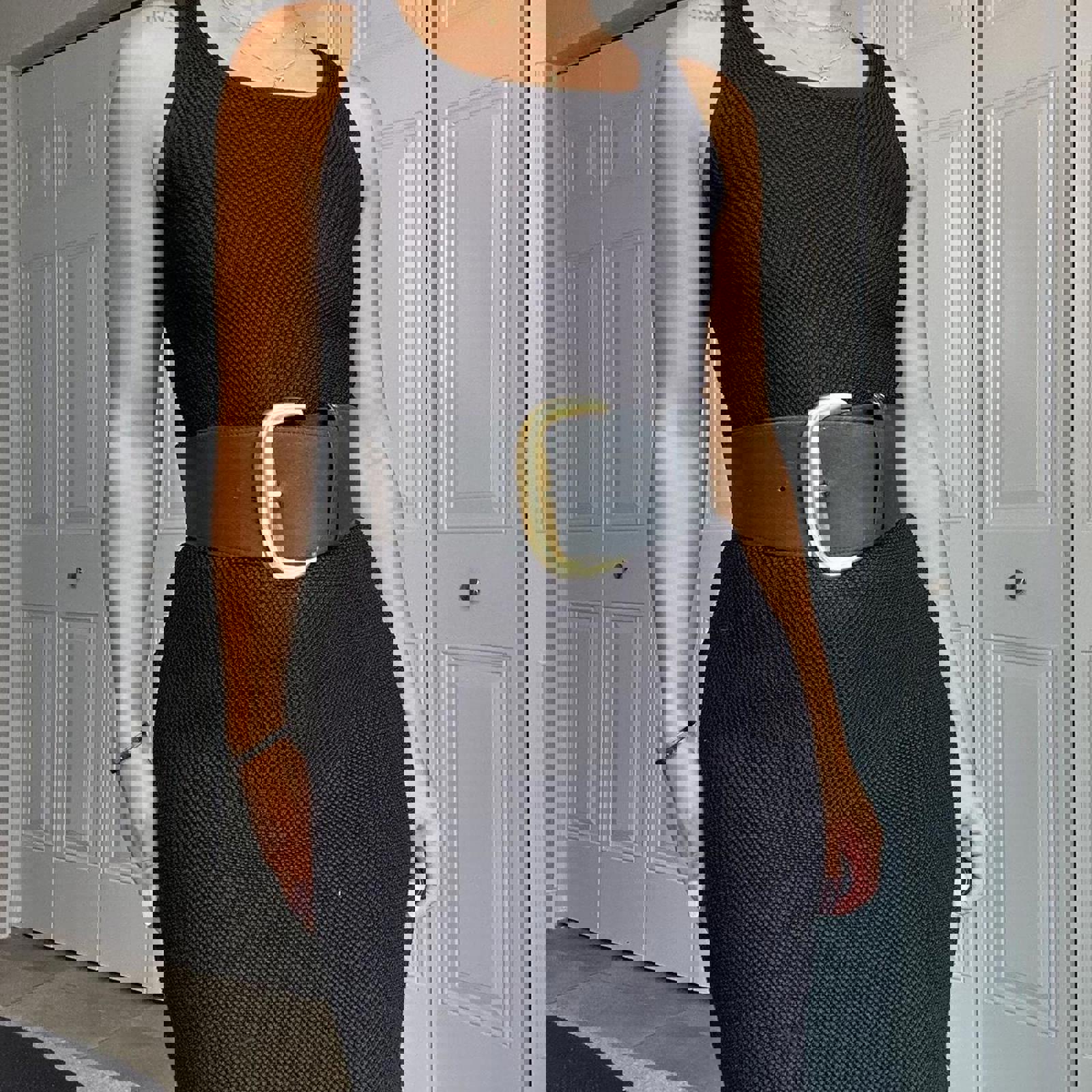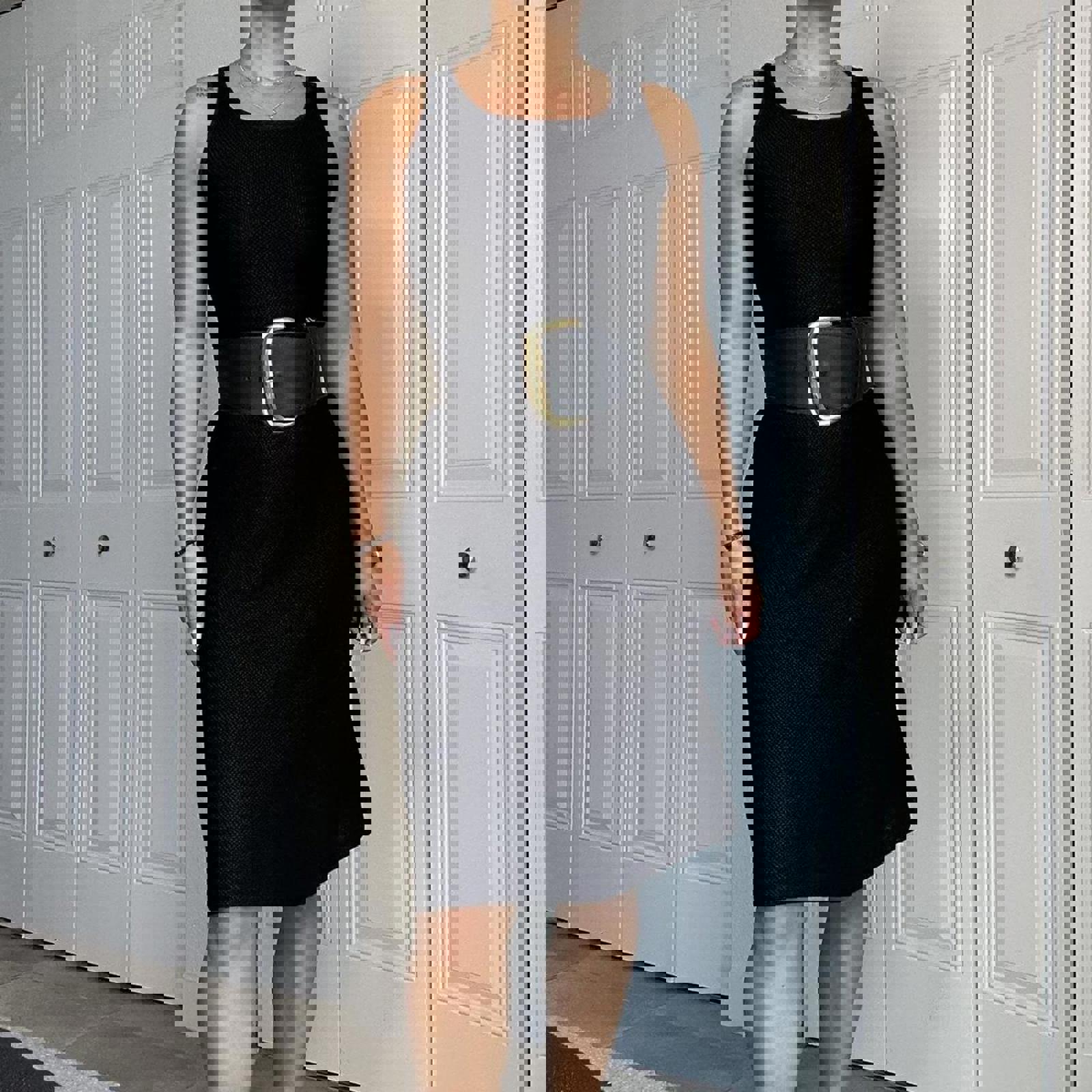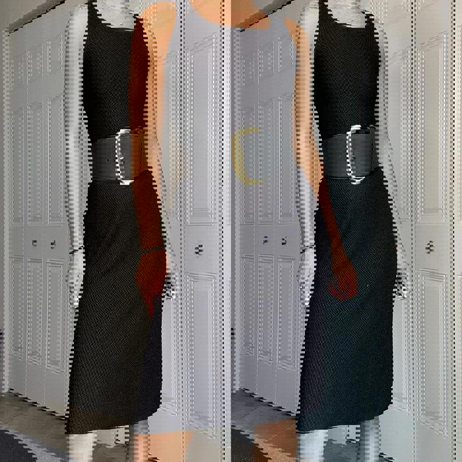 525. Black knit Ralph Lauren dress soooo flattering - size xs shown on a small. Belt pictured not included