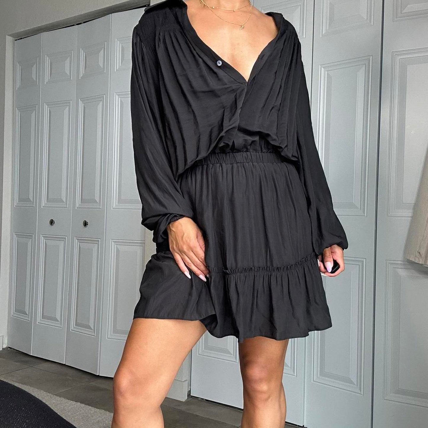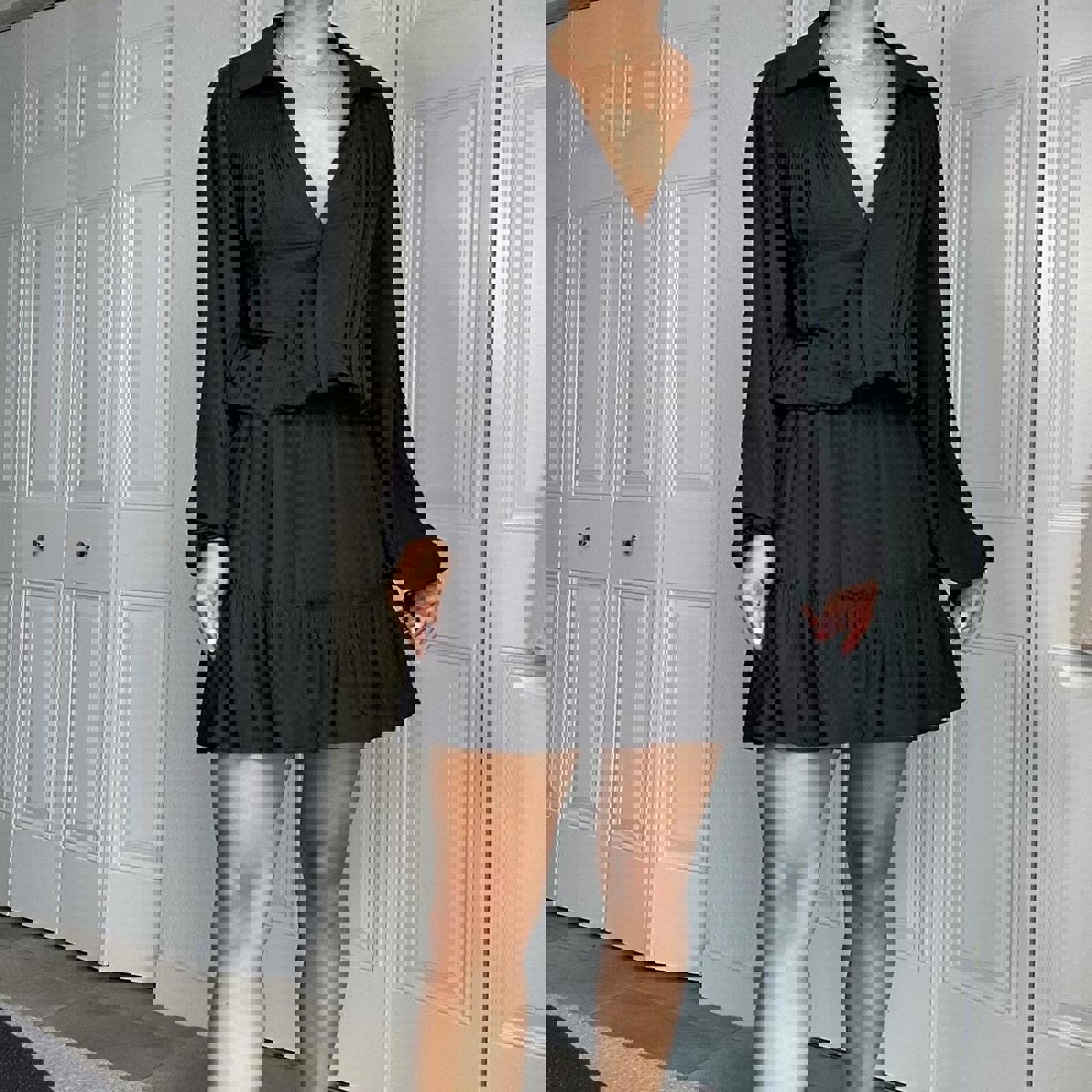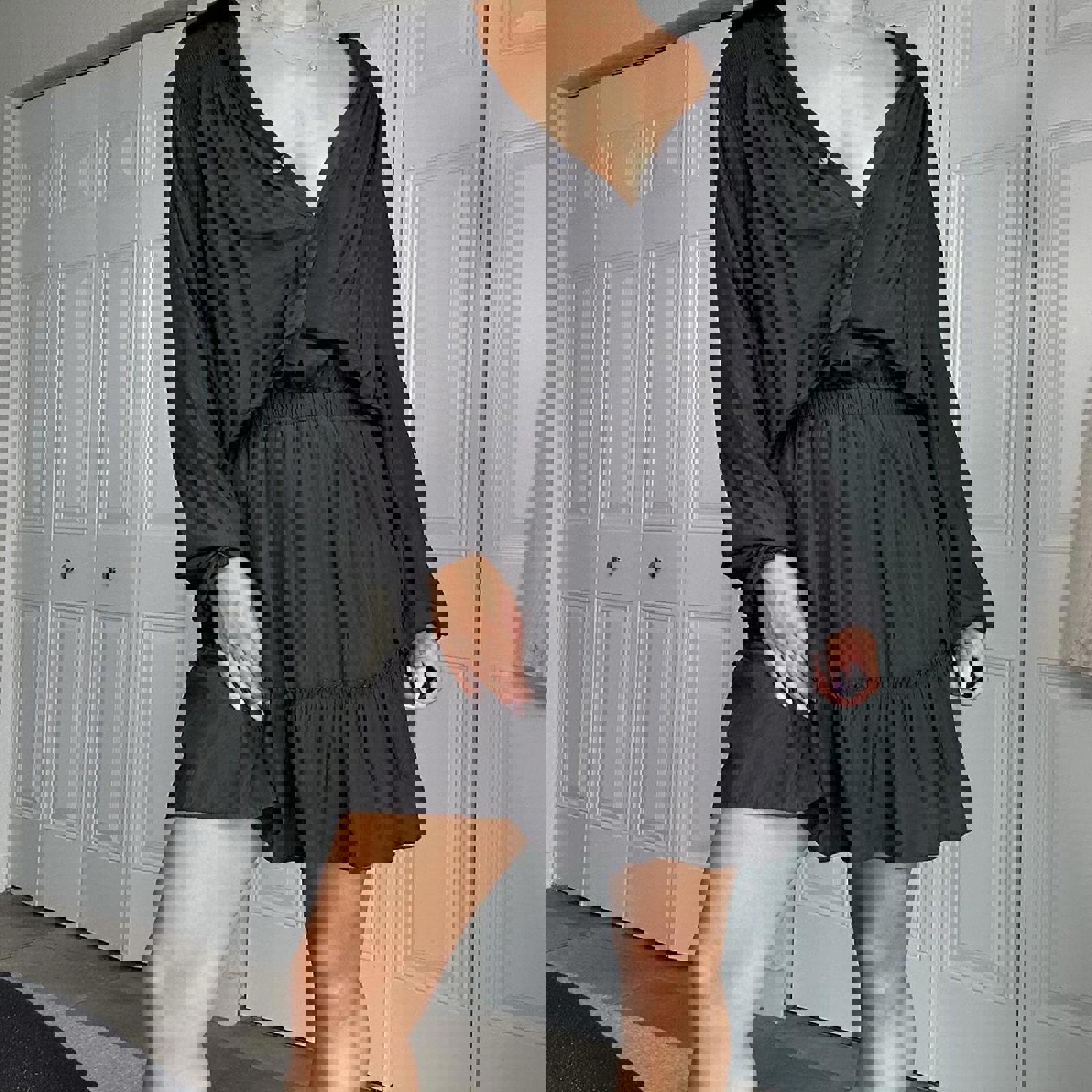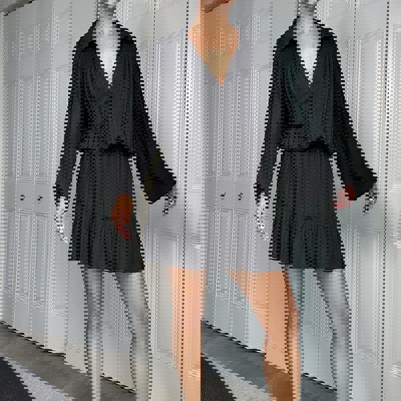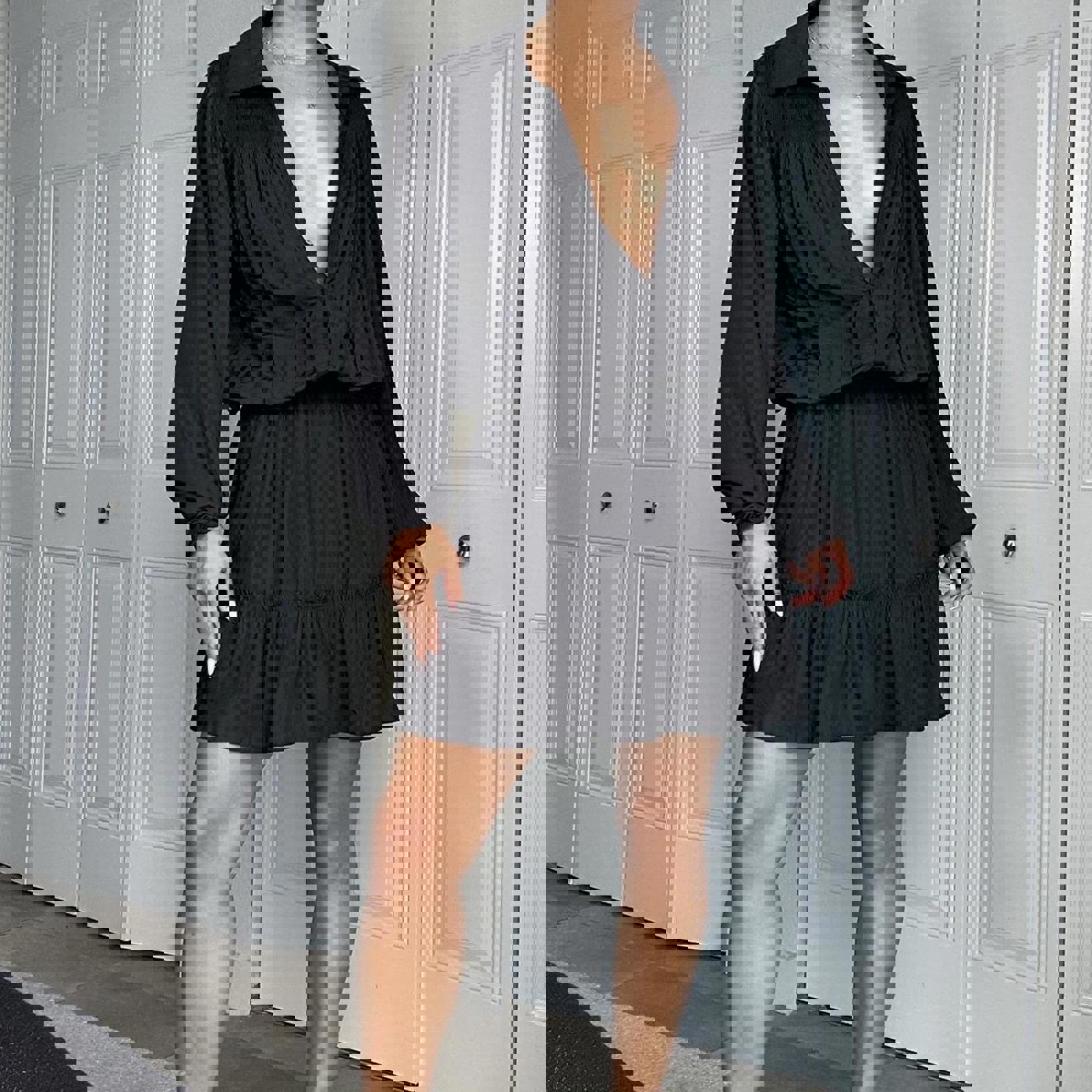 481. Ramy Brook Black mini dress with ruffles and tie front detail #minidress size medium