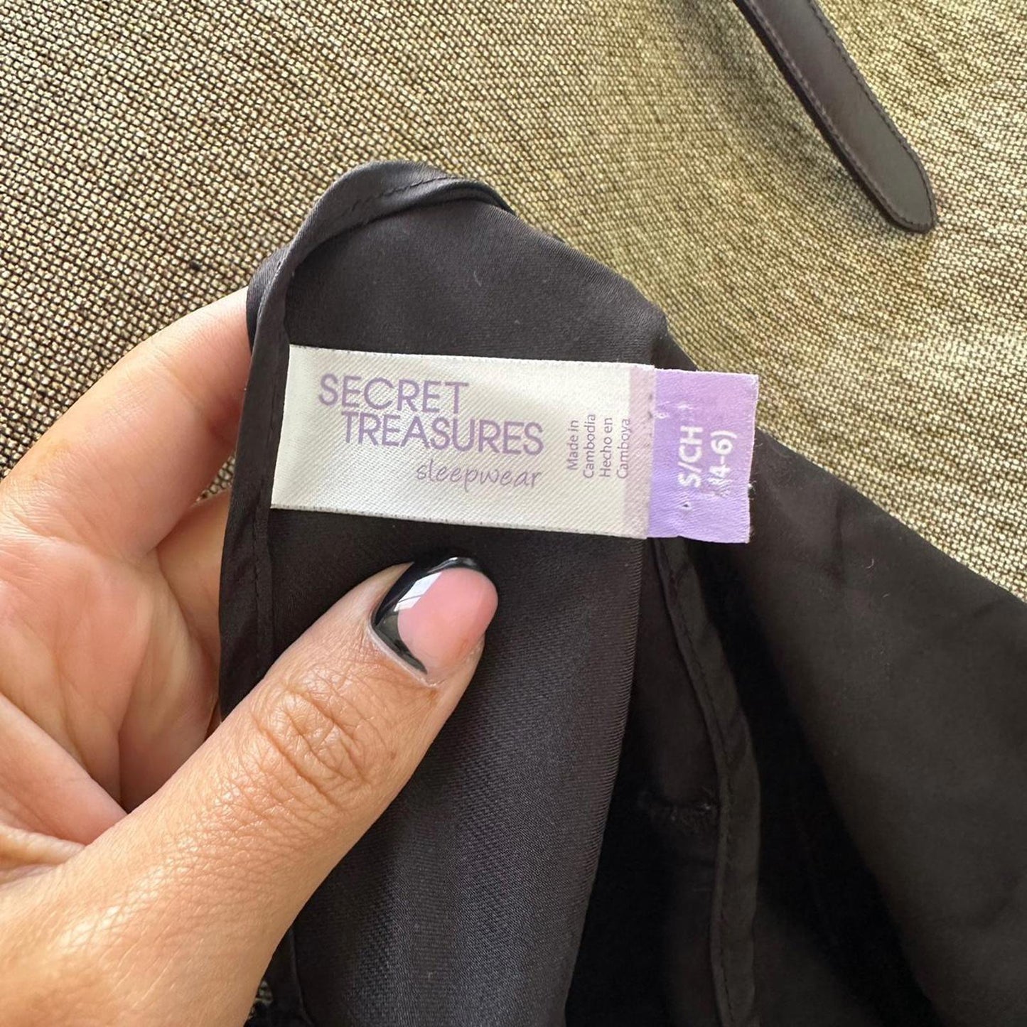 588.. Black secret treasures lace slip dress #lacedress shown styled over a white shirt.