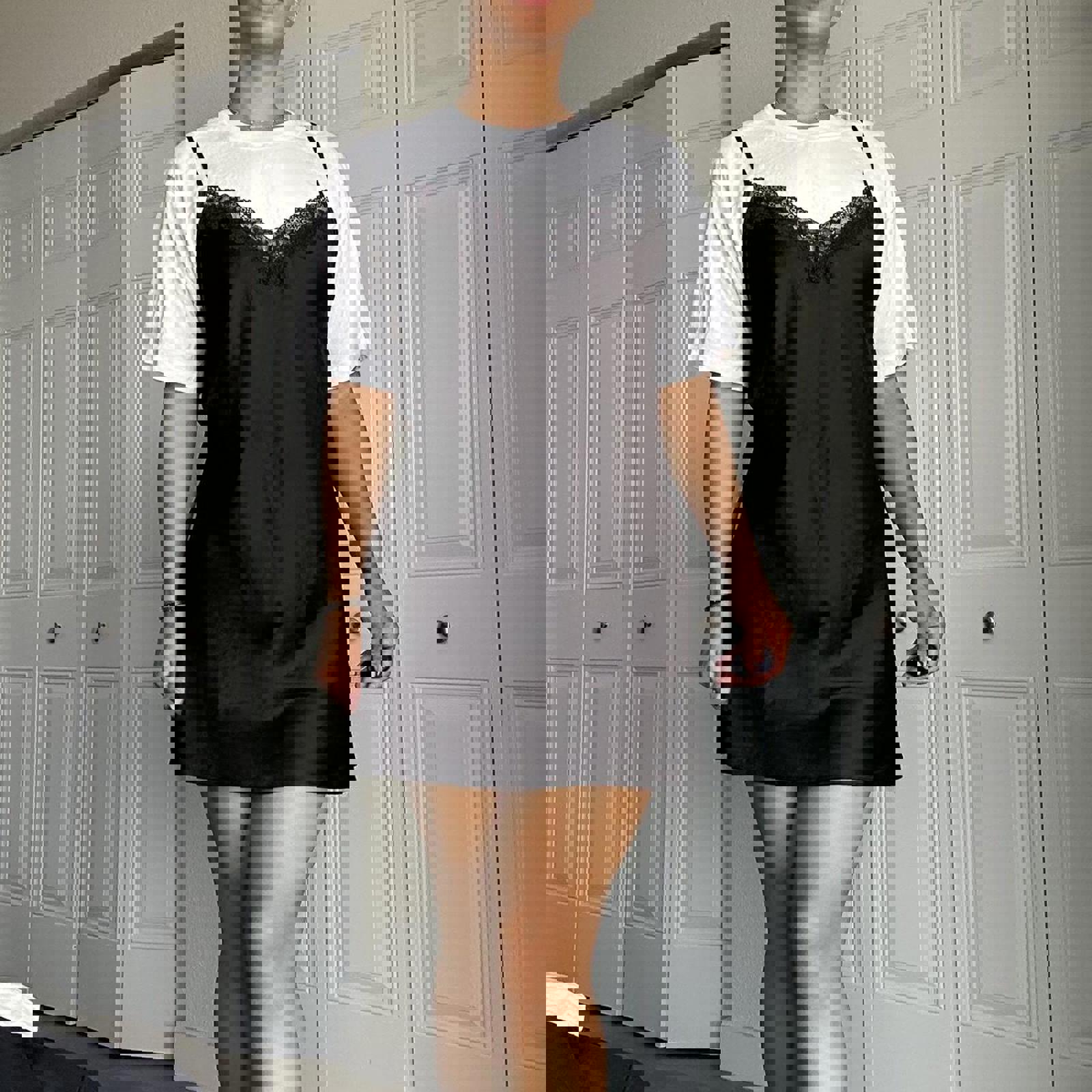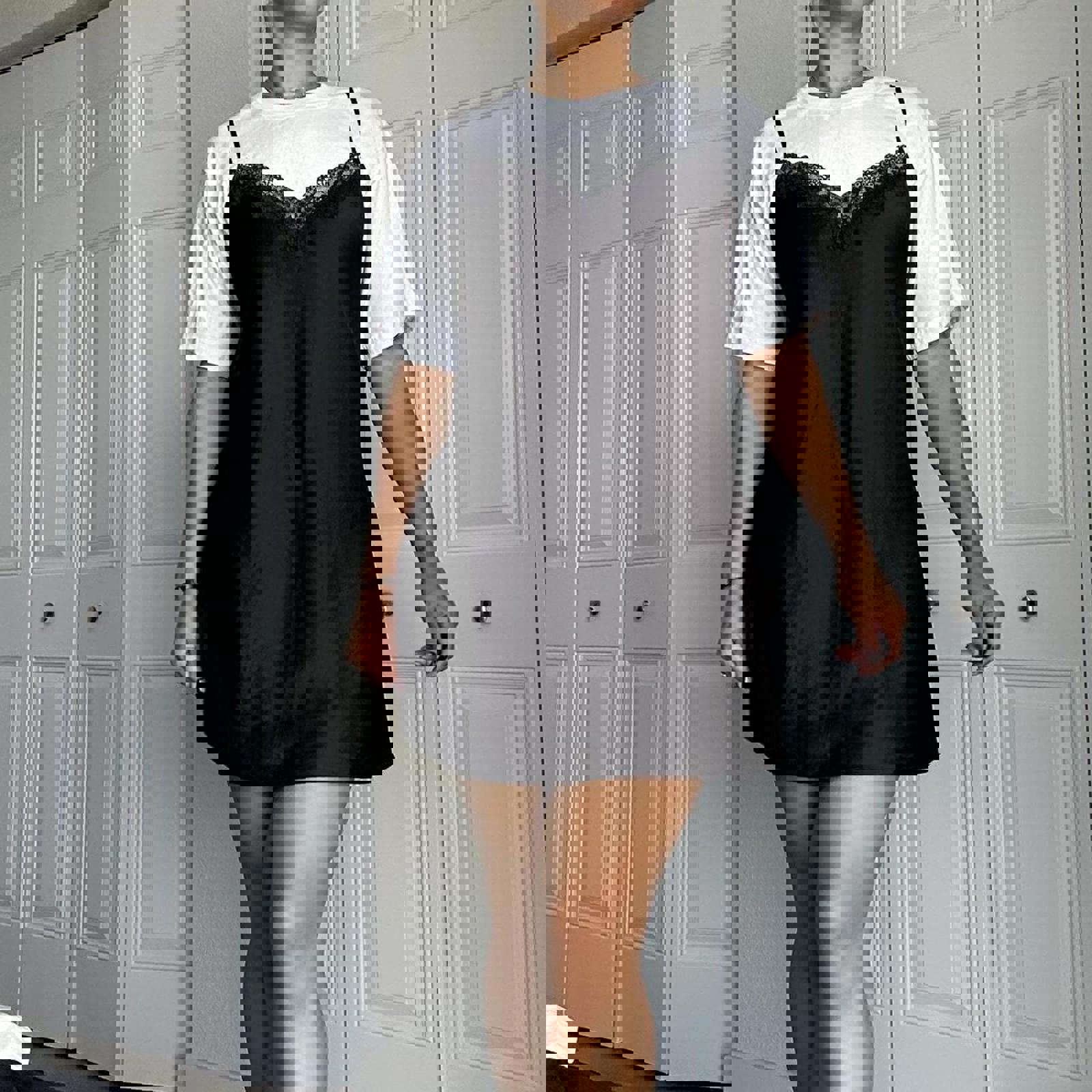 black and white, lace slip, layered style, satin finish, vintage-inspired, minimalistic, elegant, contrasting colors, camisole dress, monochrome