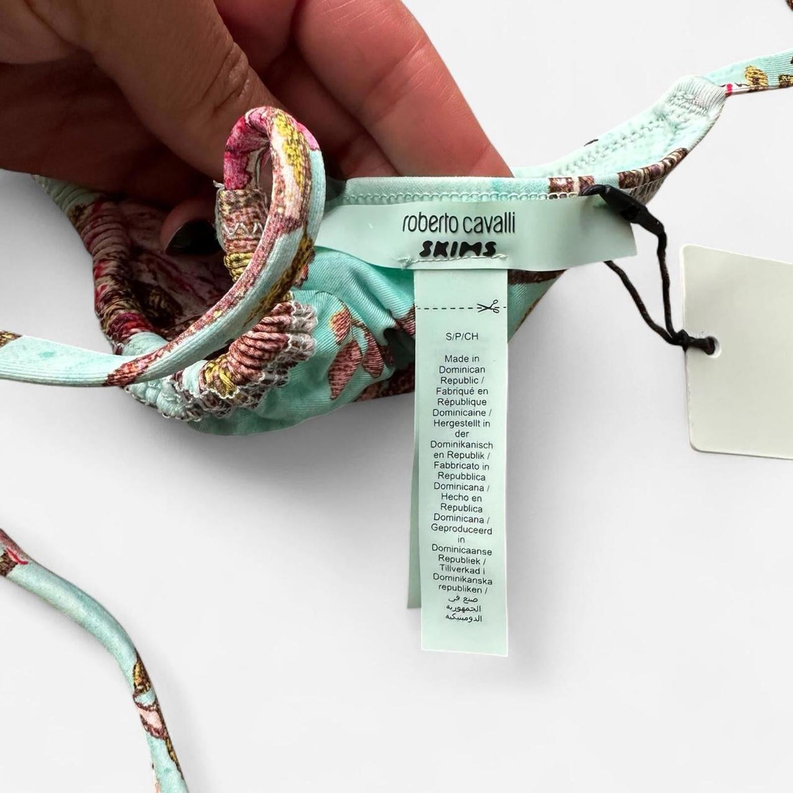 Skims X Roberto Cavalli Fagianella print bikini never worn, come in boxes. Tags are still attached to both. Bottoms are a size medium, and top is a size small.