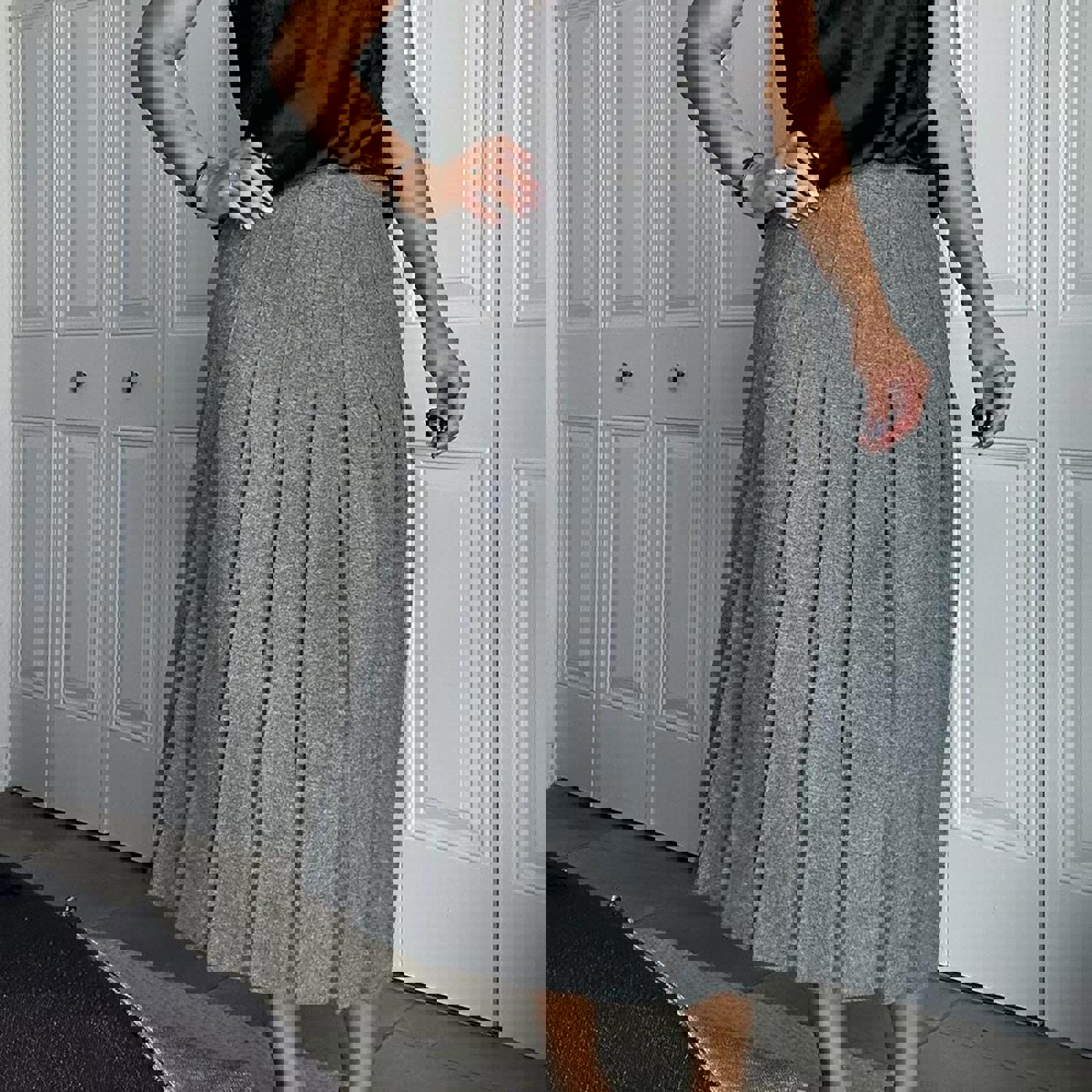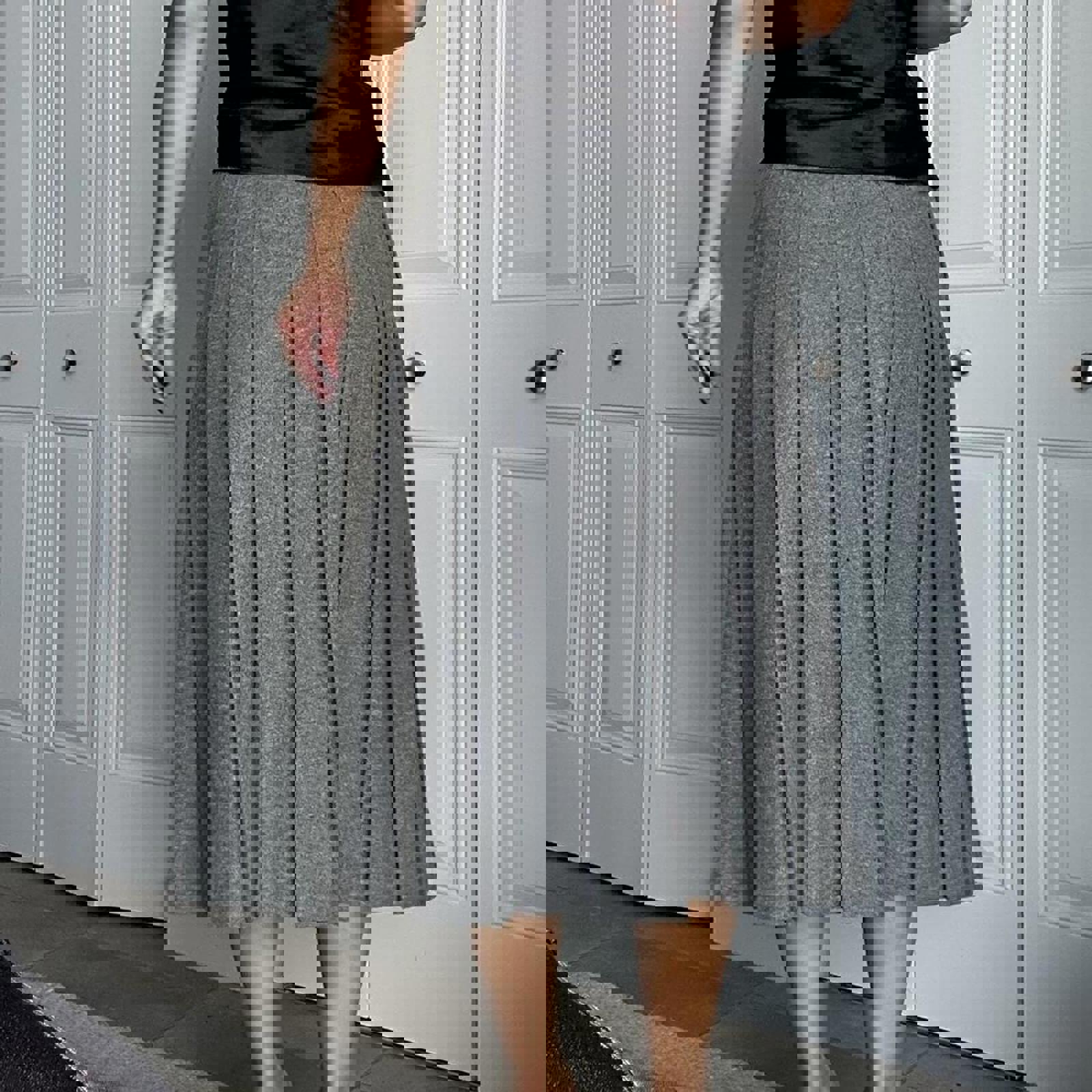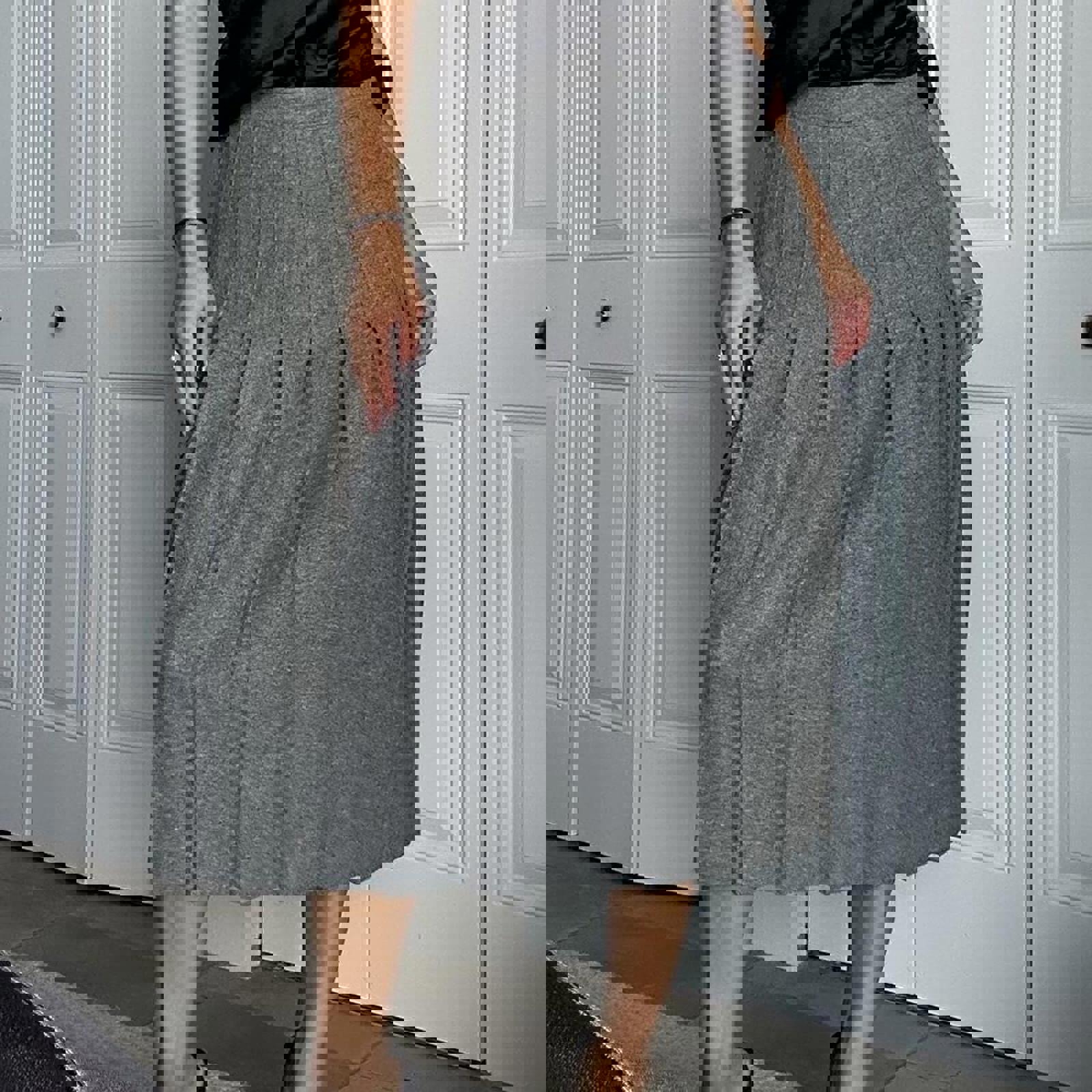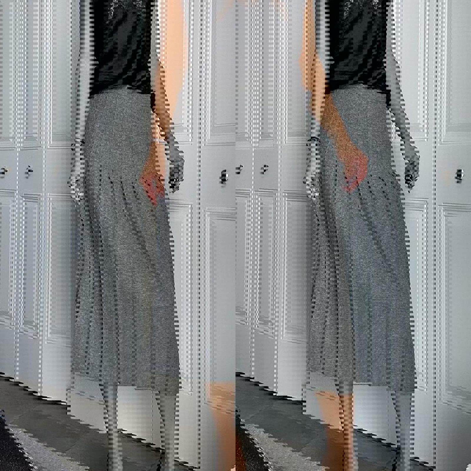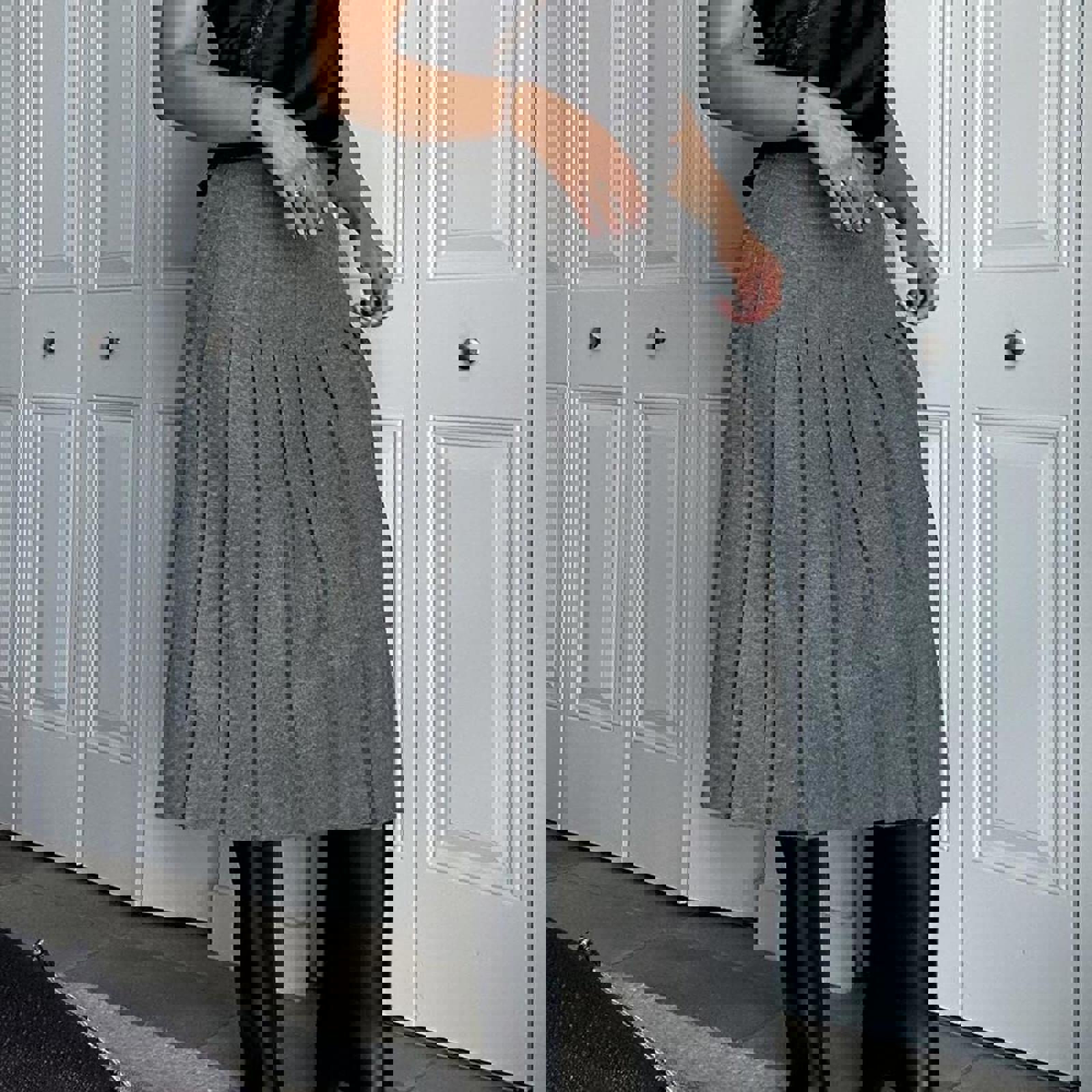 543. Stephanie Andrews grey 100% wool skirt in perfect condition. Labeled a vintage 10 fits like a small; measurements below