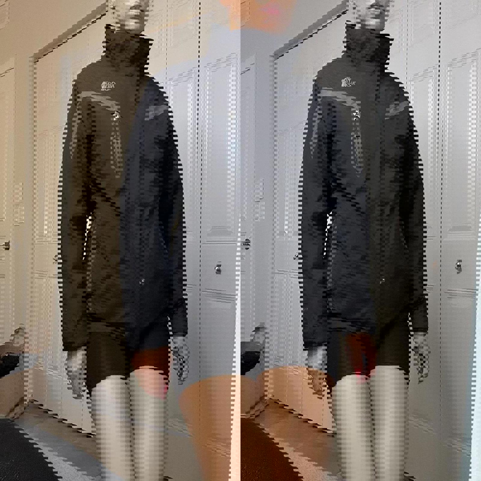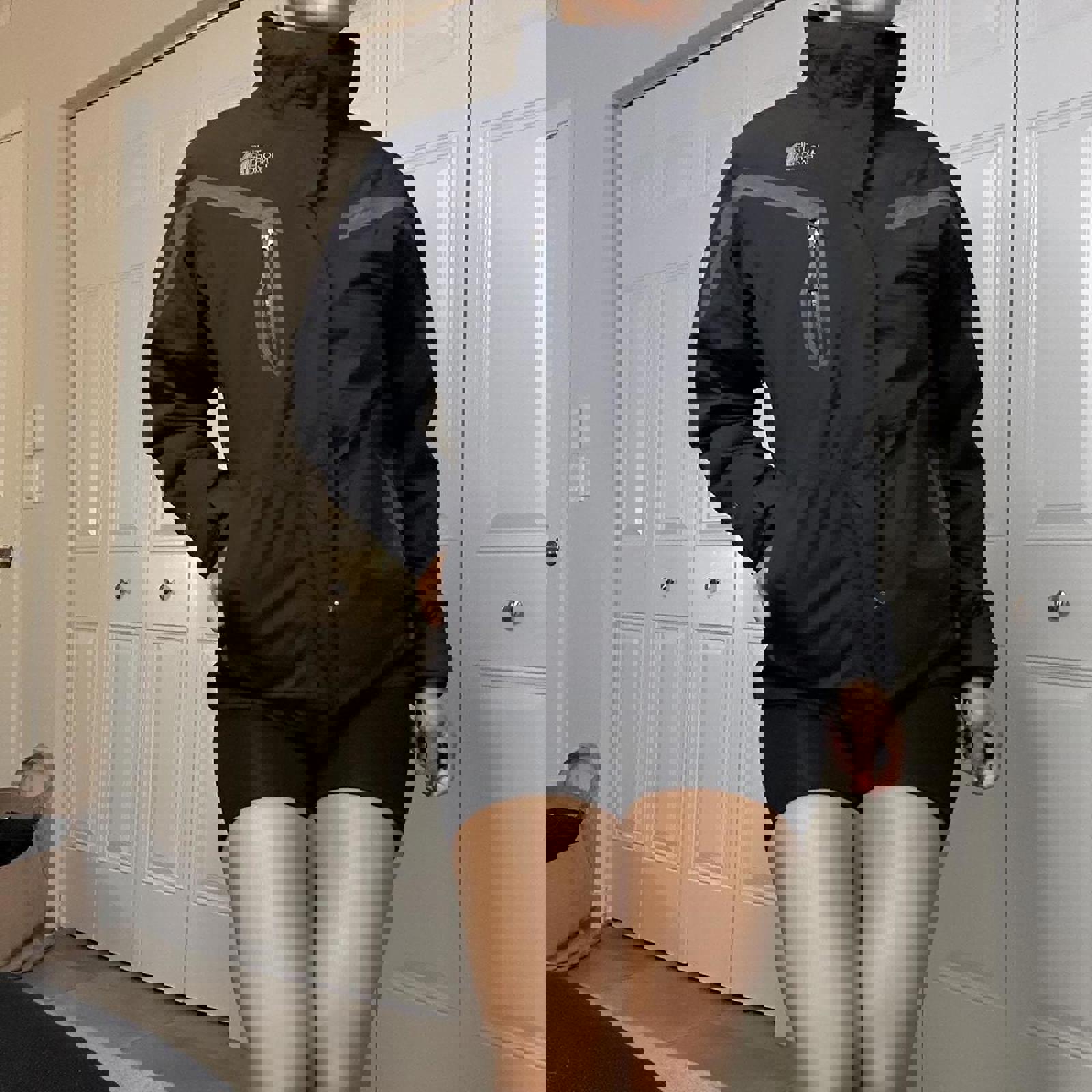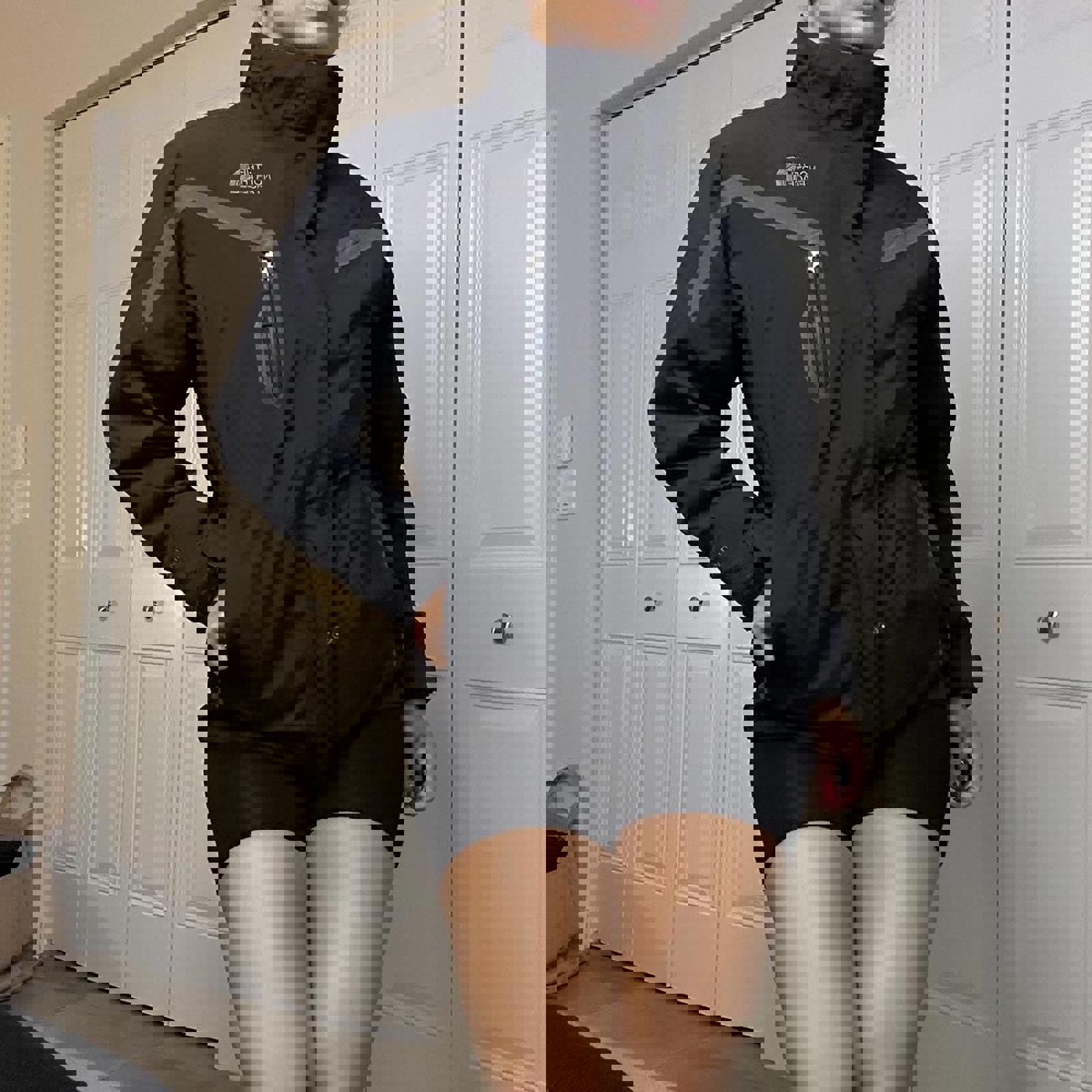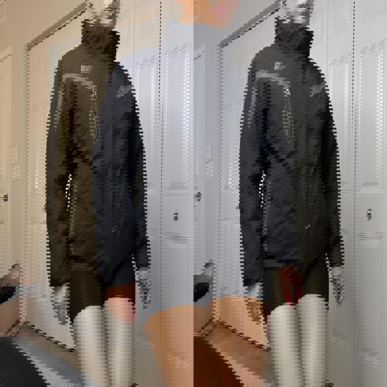 721. The North Face 3-in-1 Tri-Climate Jacket in a size large kind of fits a little bit smaller shown on a size small. Super thick funnel neck jacket.