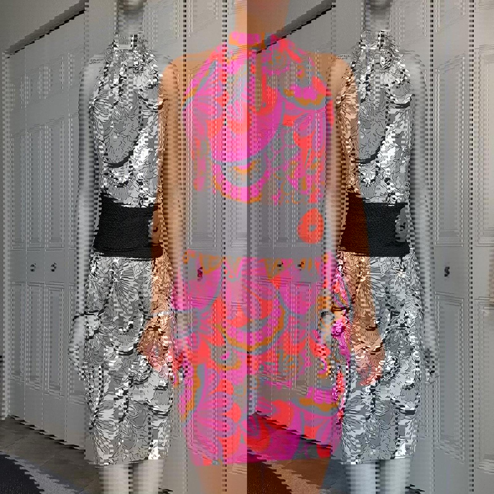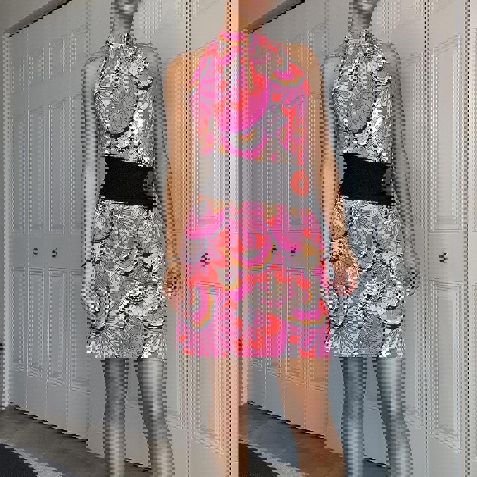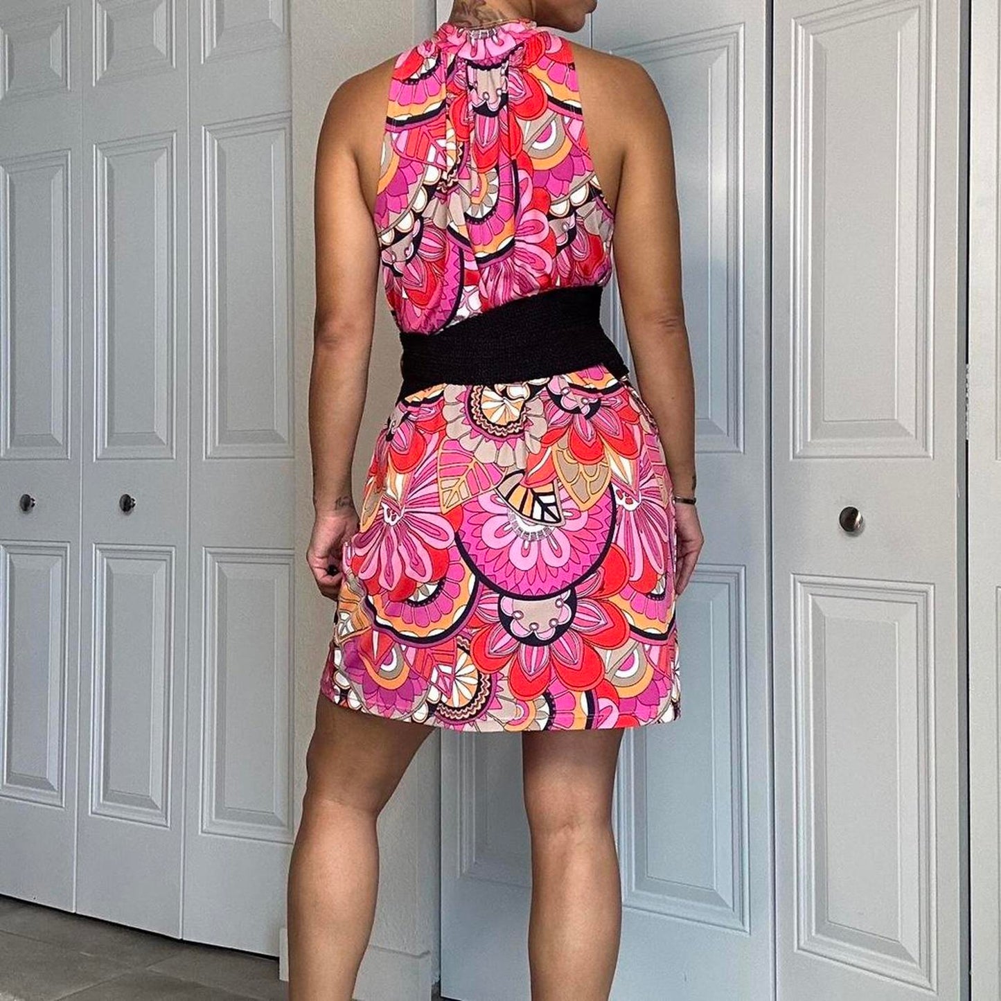 524. Trina Turk multi-coloured dress. Perfect condition. Shown styled with a belt that is not included. Size medium shown styled on a small. Print gives #pucci