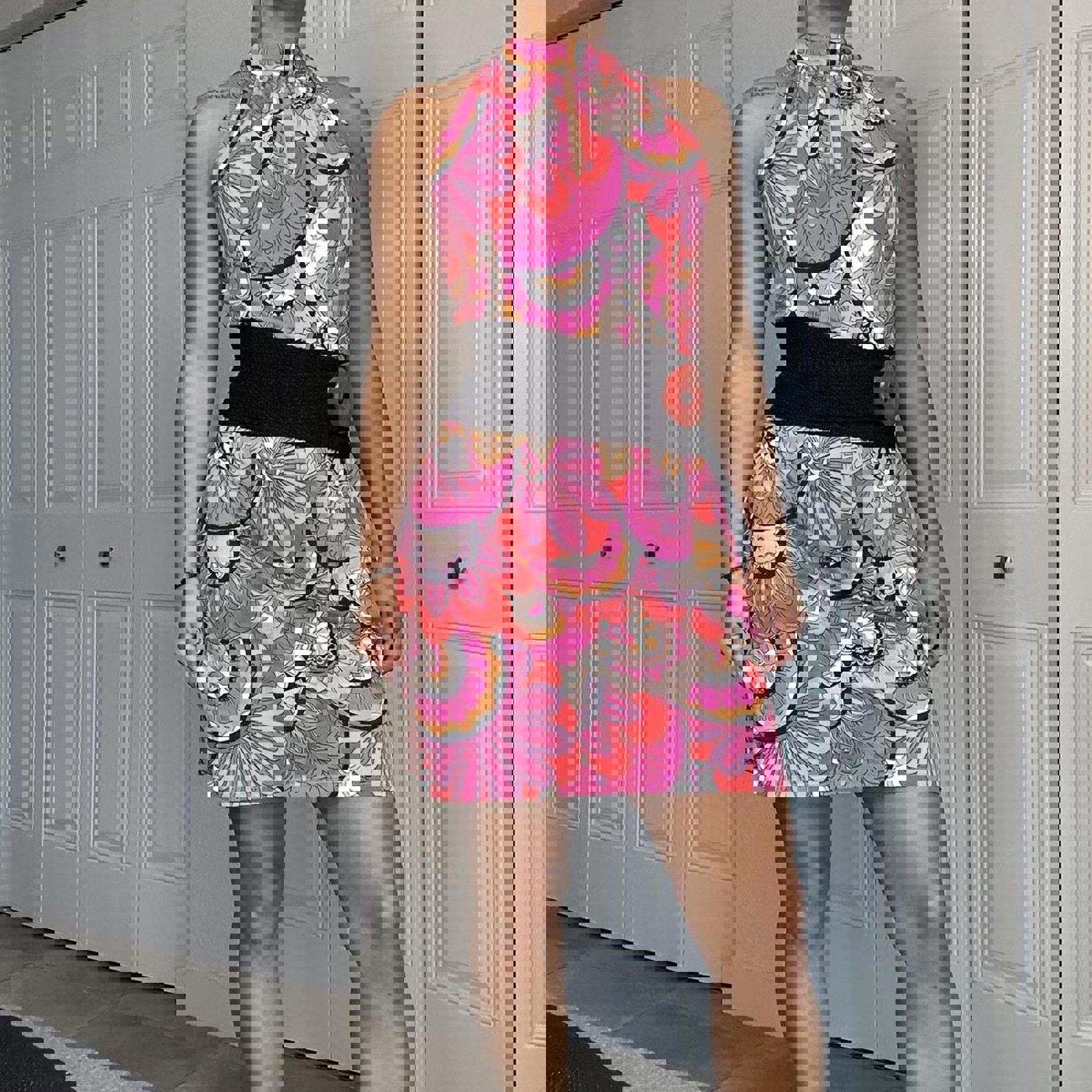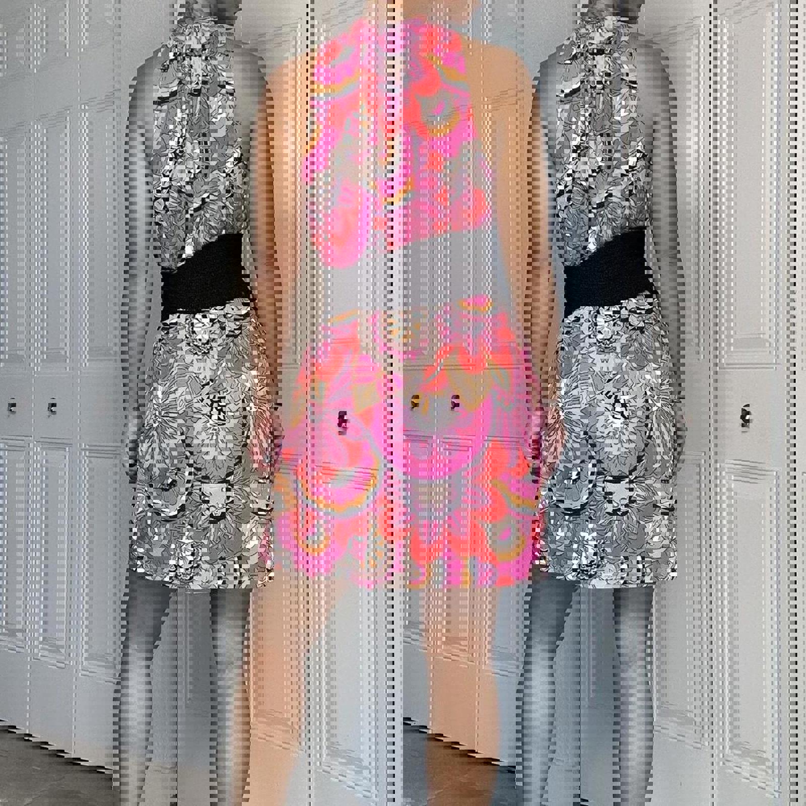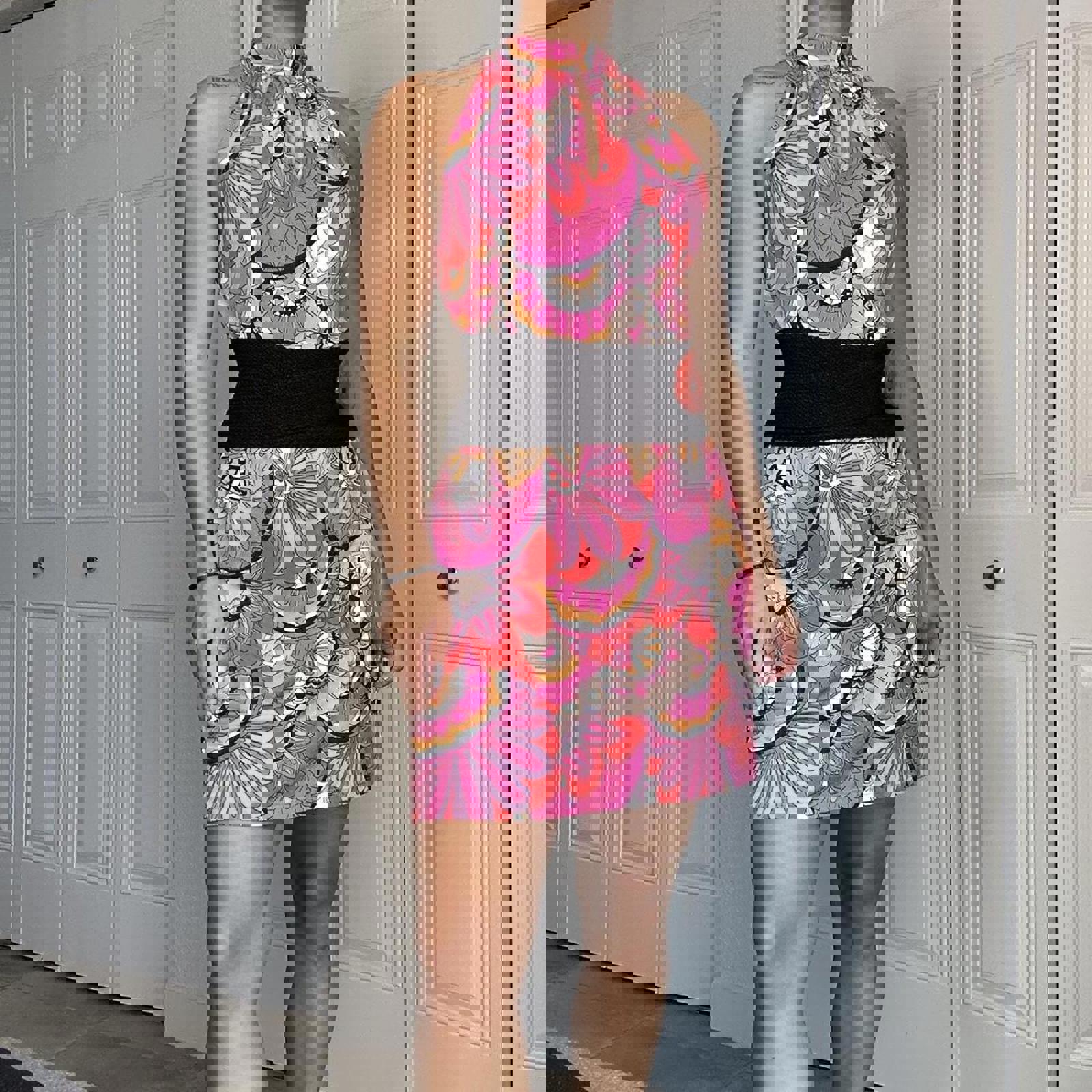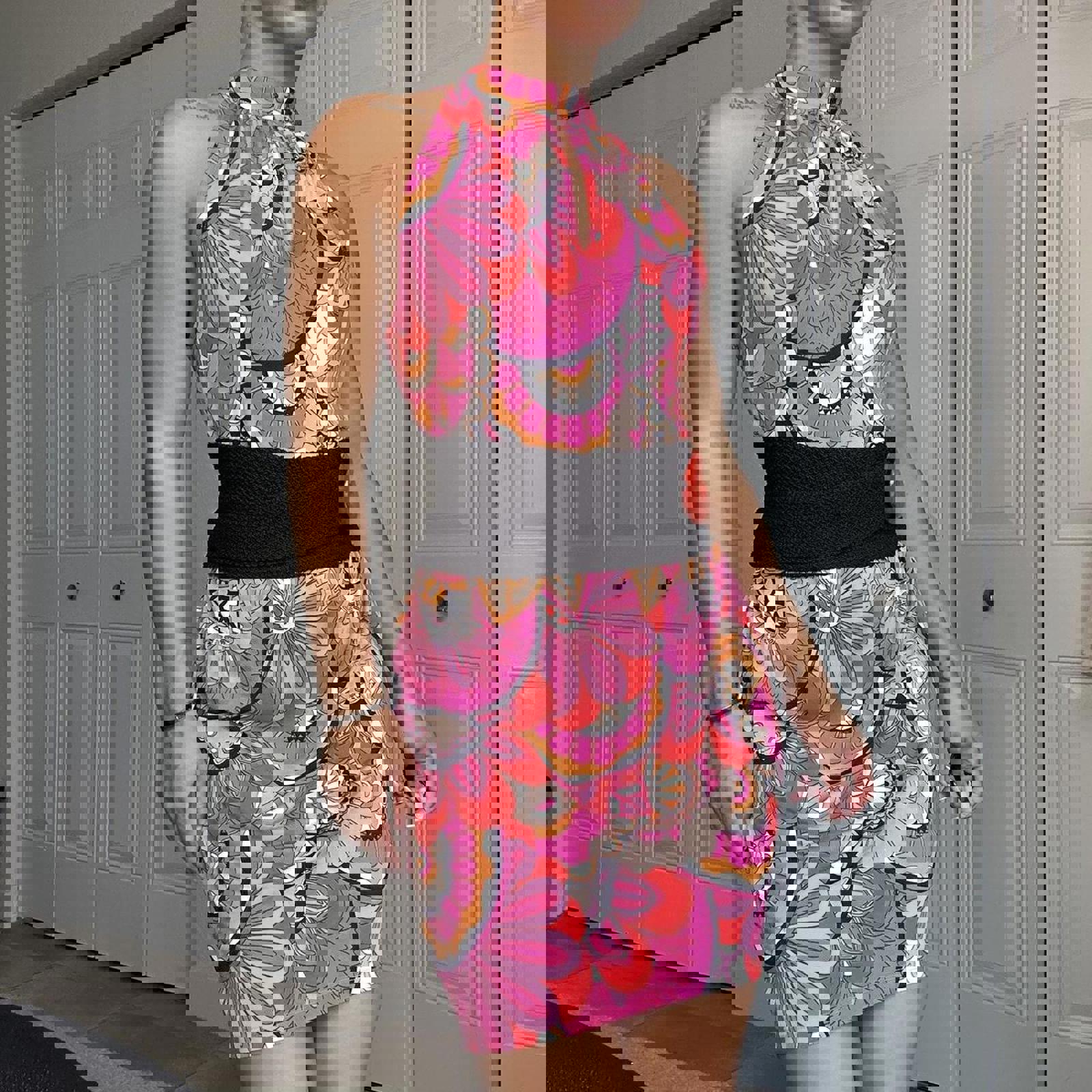 524. Trina Turk multi-coloured dress. Perfect condition. Shown styled with a belt that is not included. Size medium shown styled on a small. Print gives #pucci