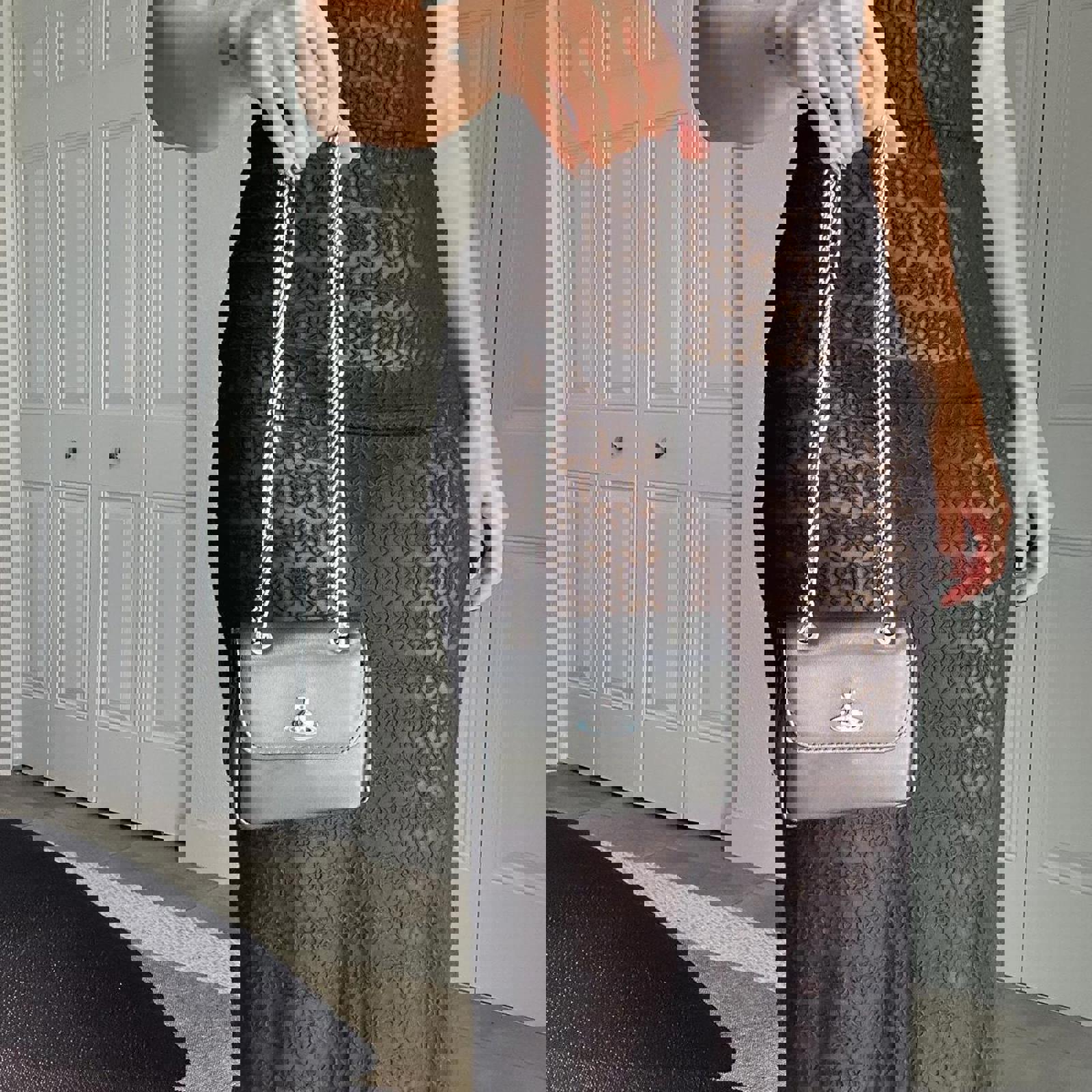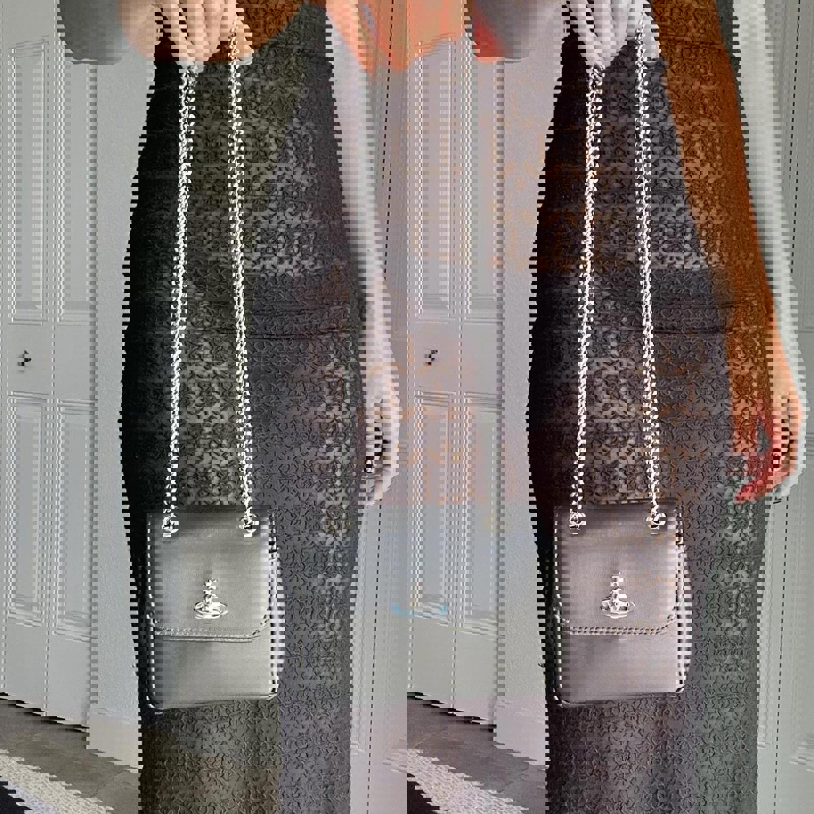 813. Vivienne Westwood black leather mini bag with silver chain #minibag