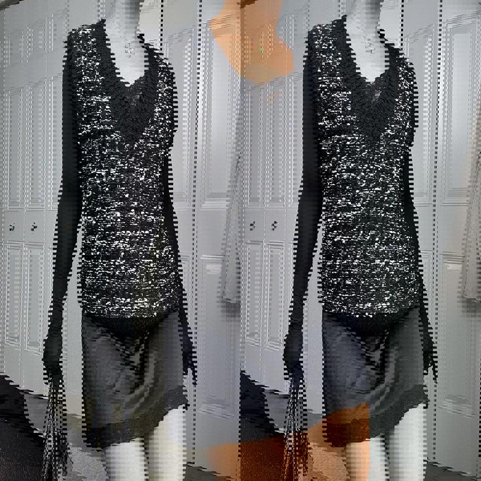 615. We11done black and white tweed sweater vest in excellent condition. Super thick, tags still attached