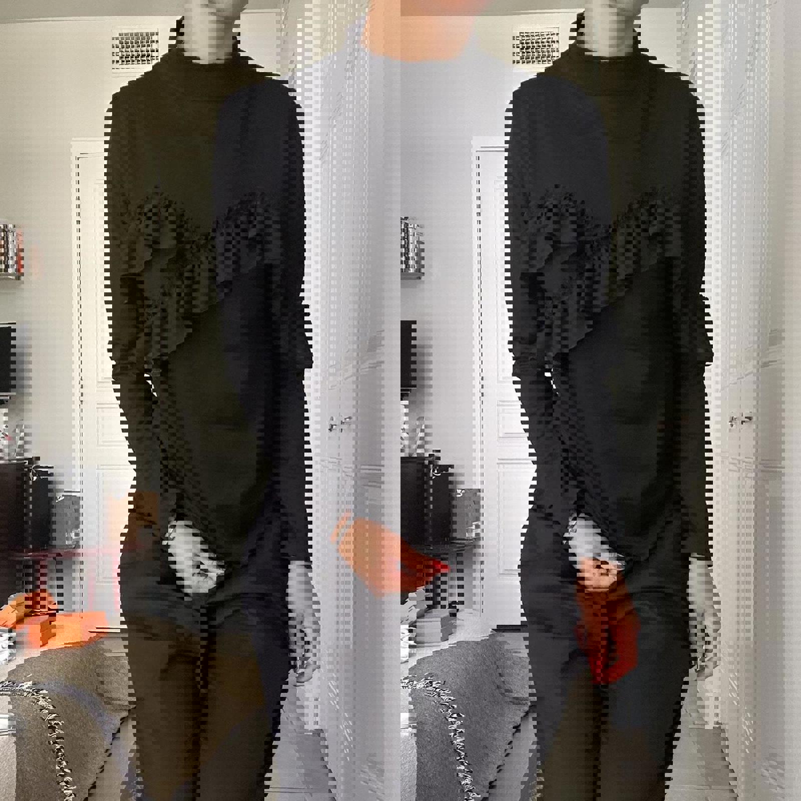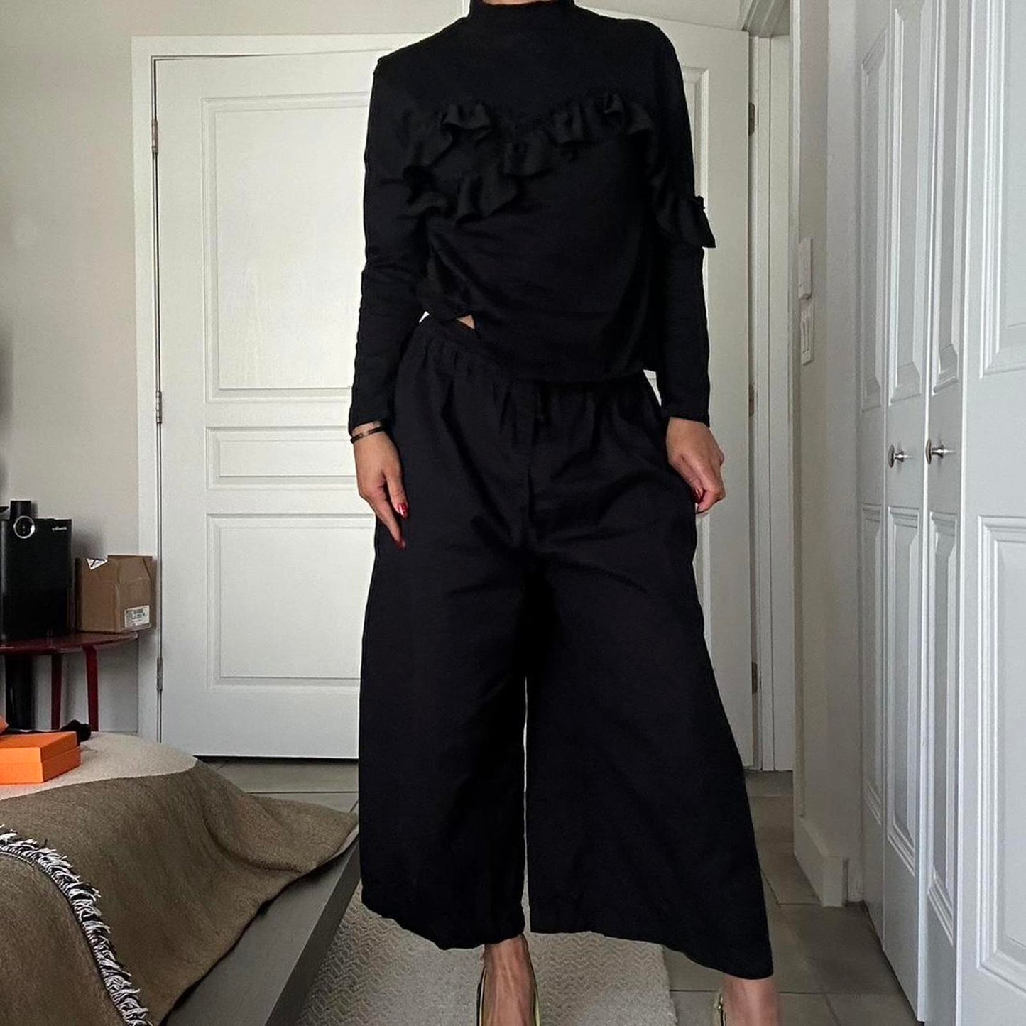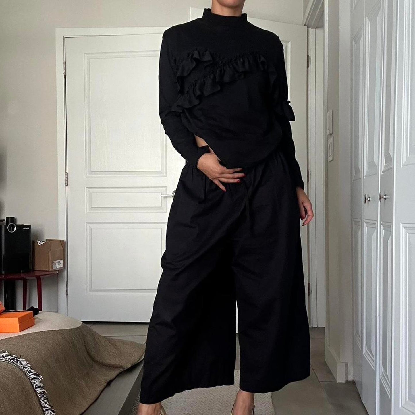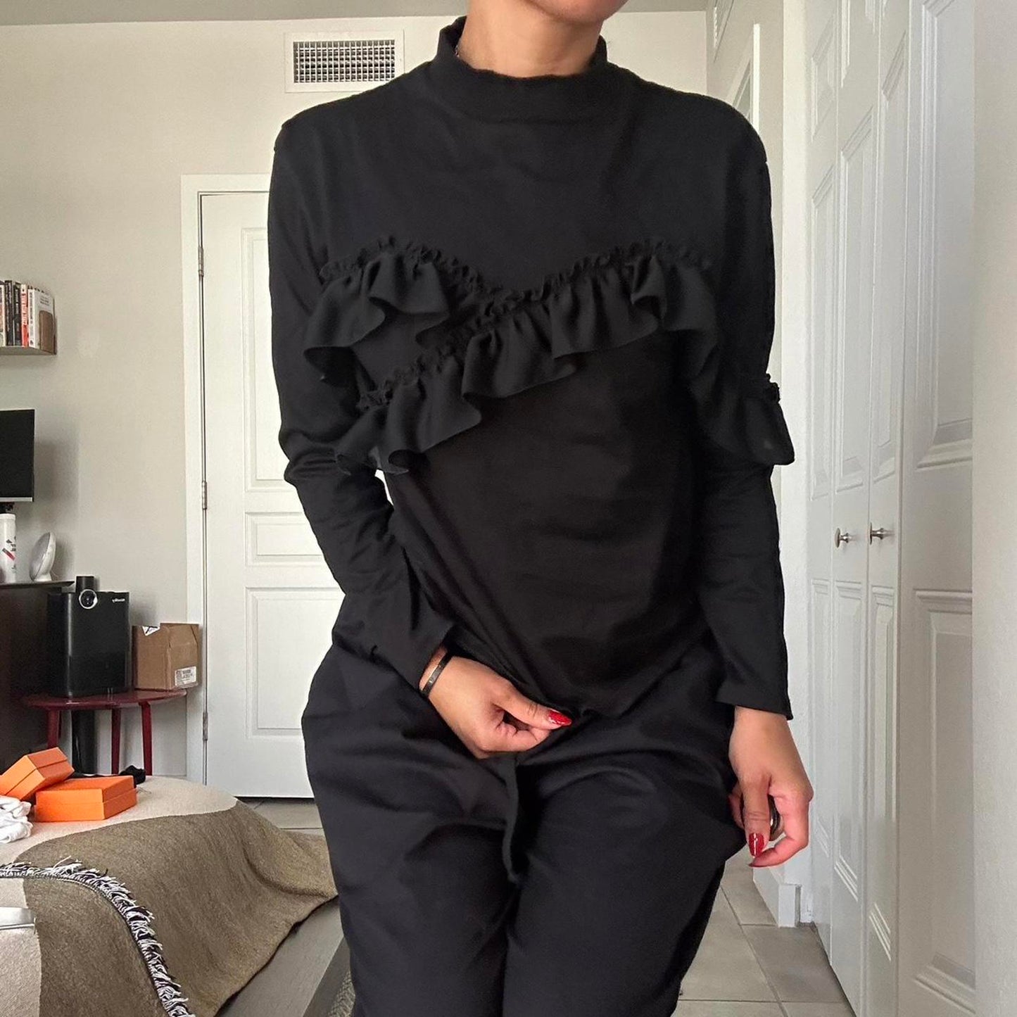 Le Ciel Bleu 100% cotton top with ruffle detail and high neck bought in Japan. Perfect condition