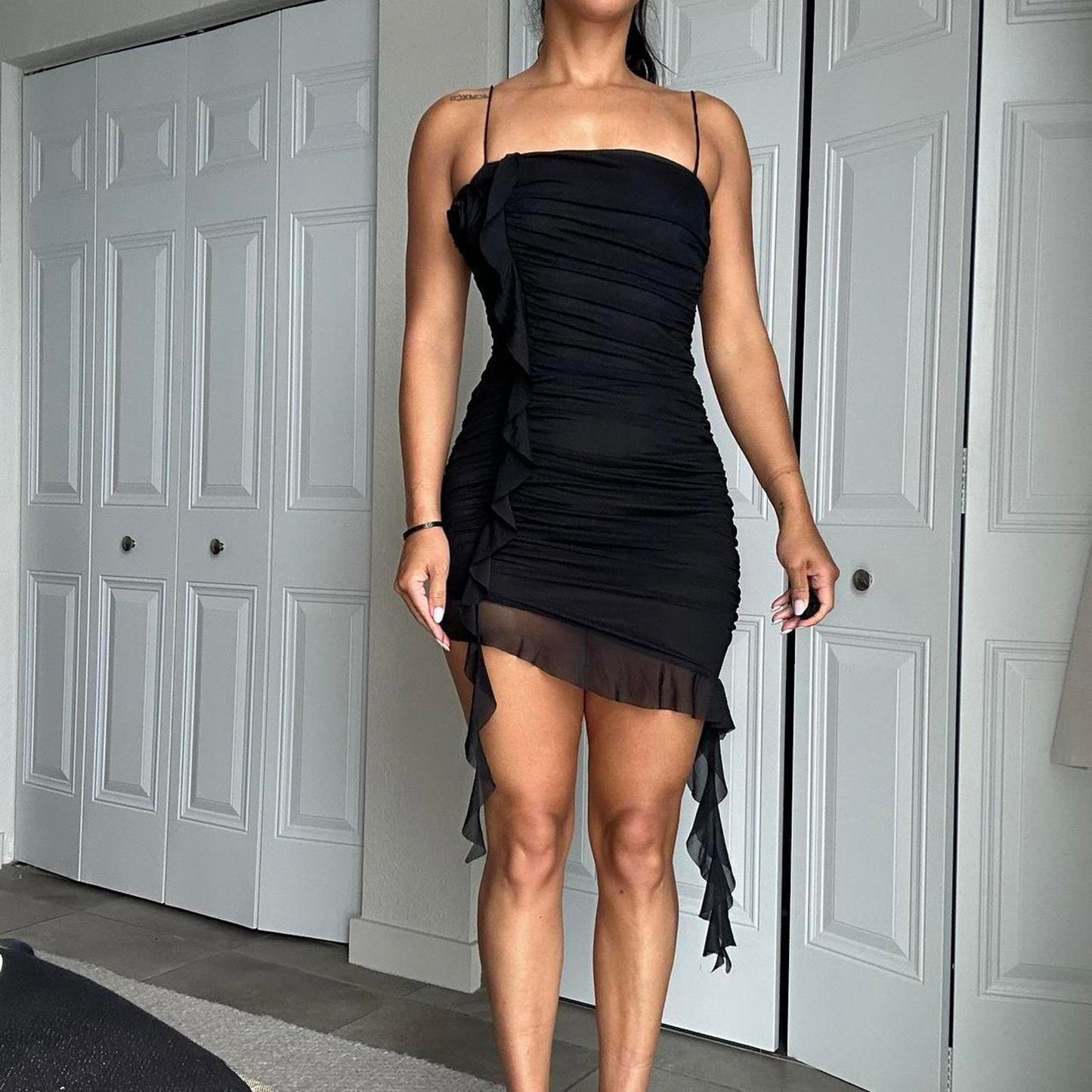 345. Refuge Black mesh ruffle mini dress with adjustable straps #partydress