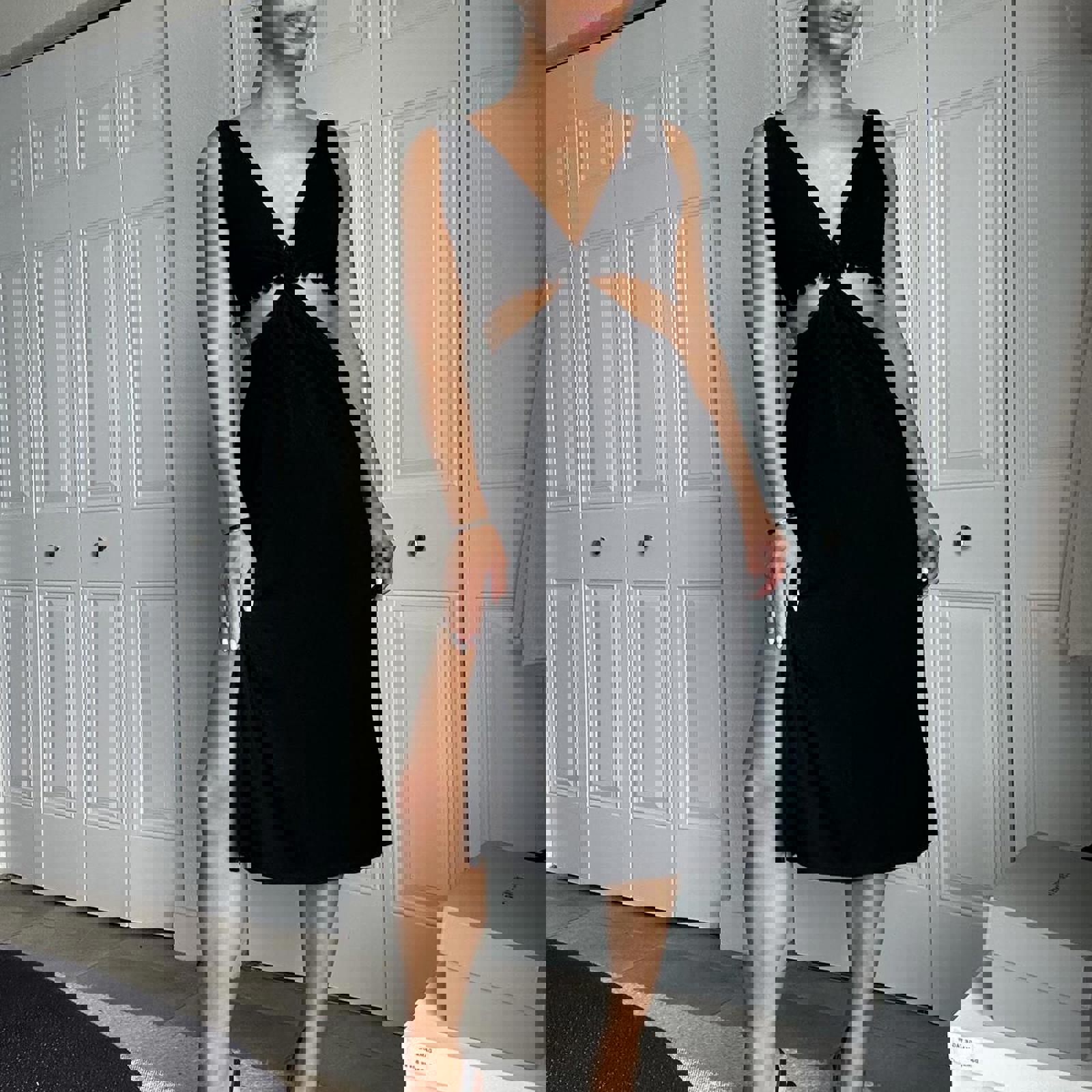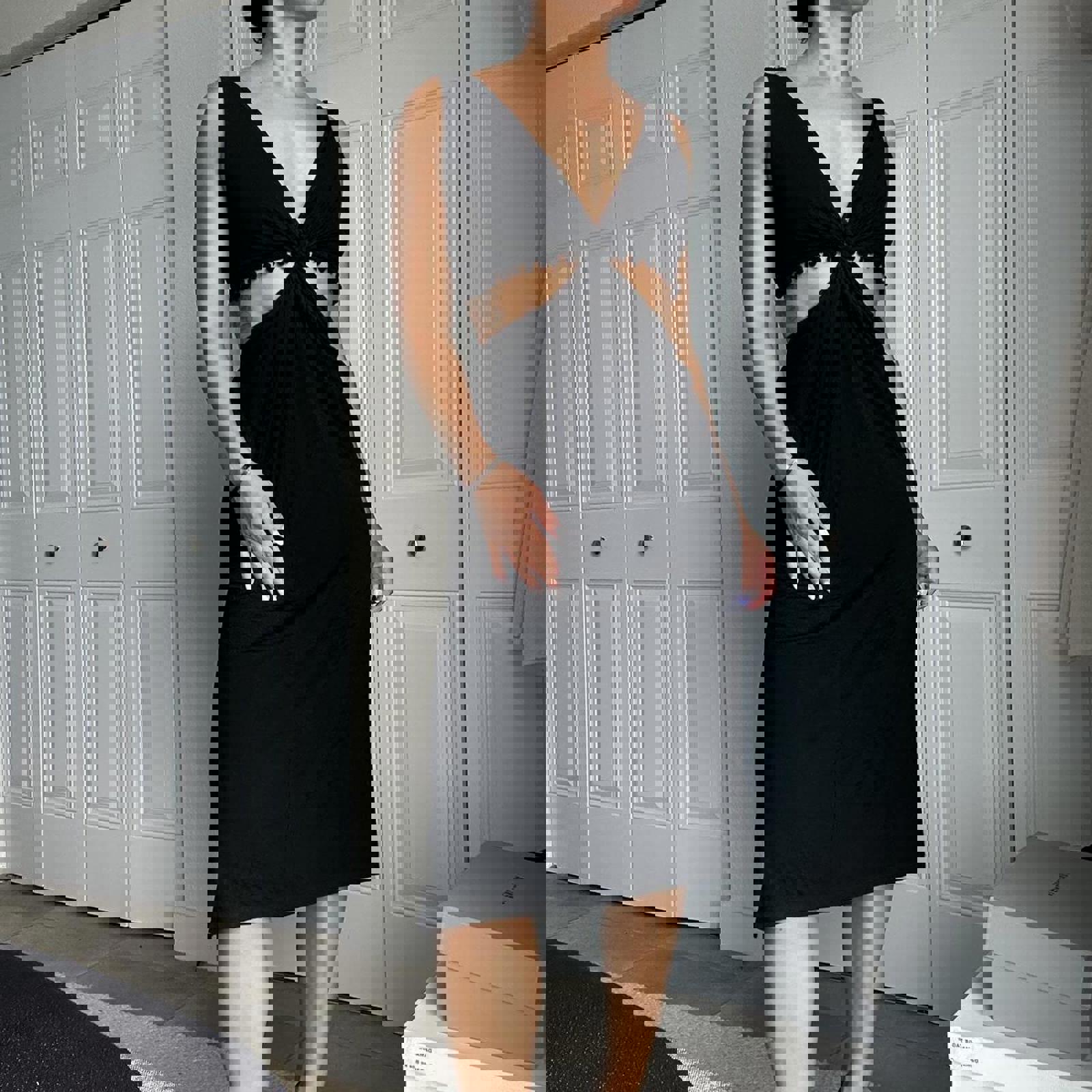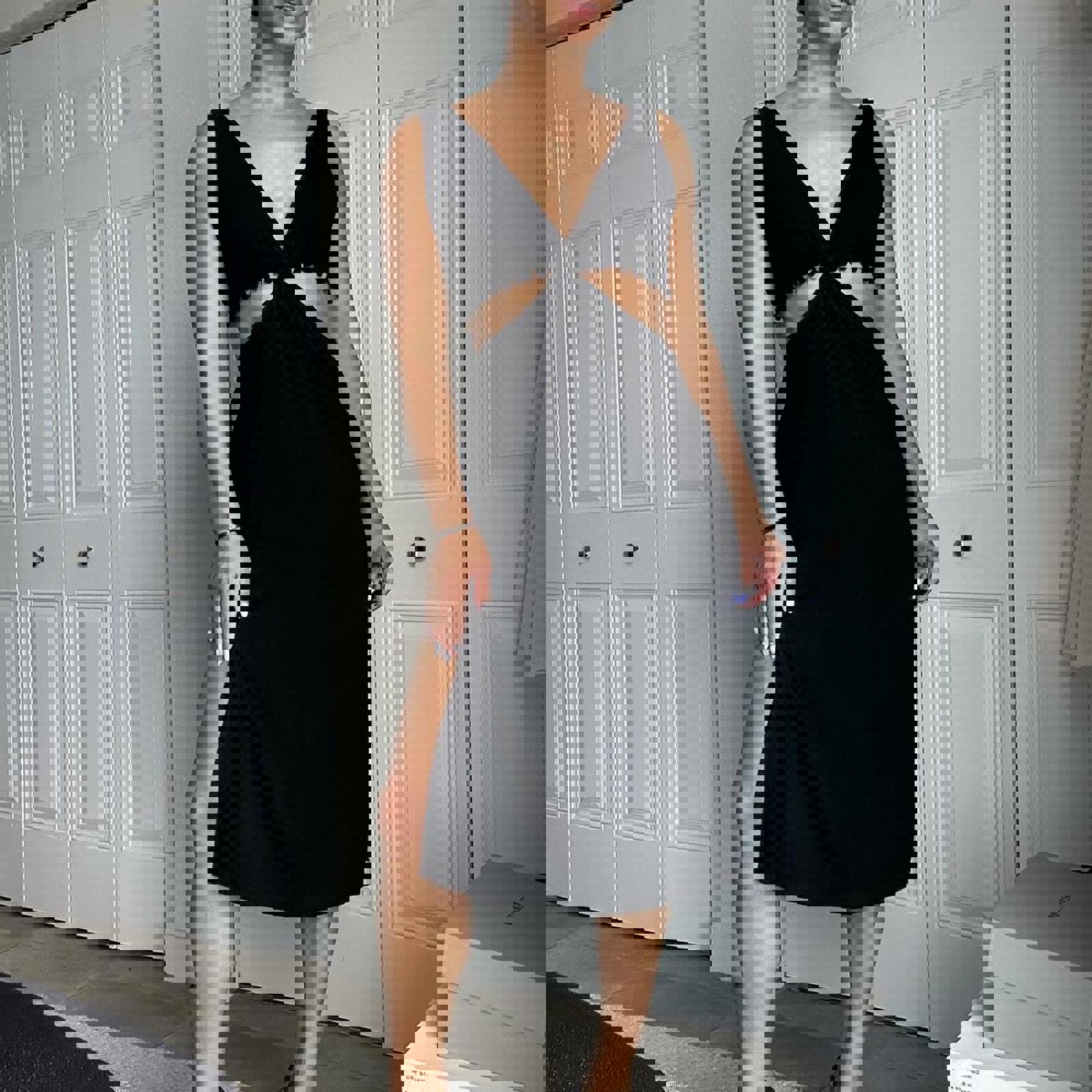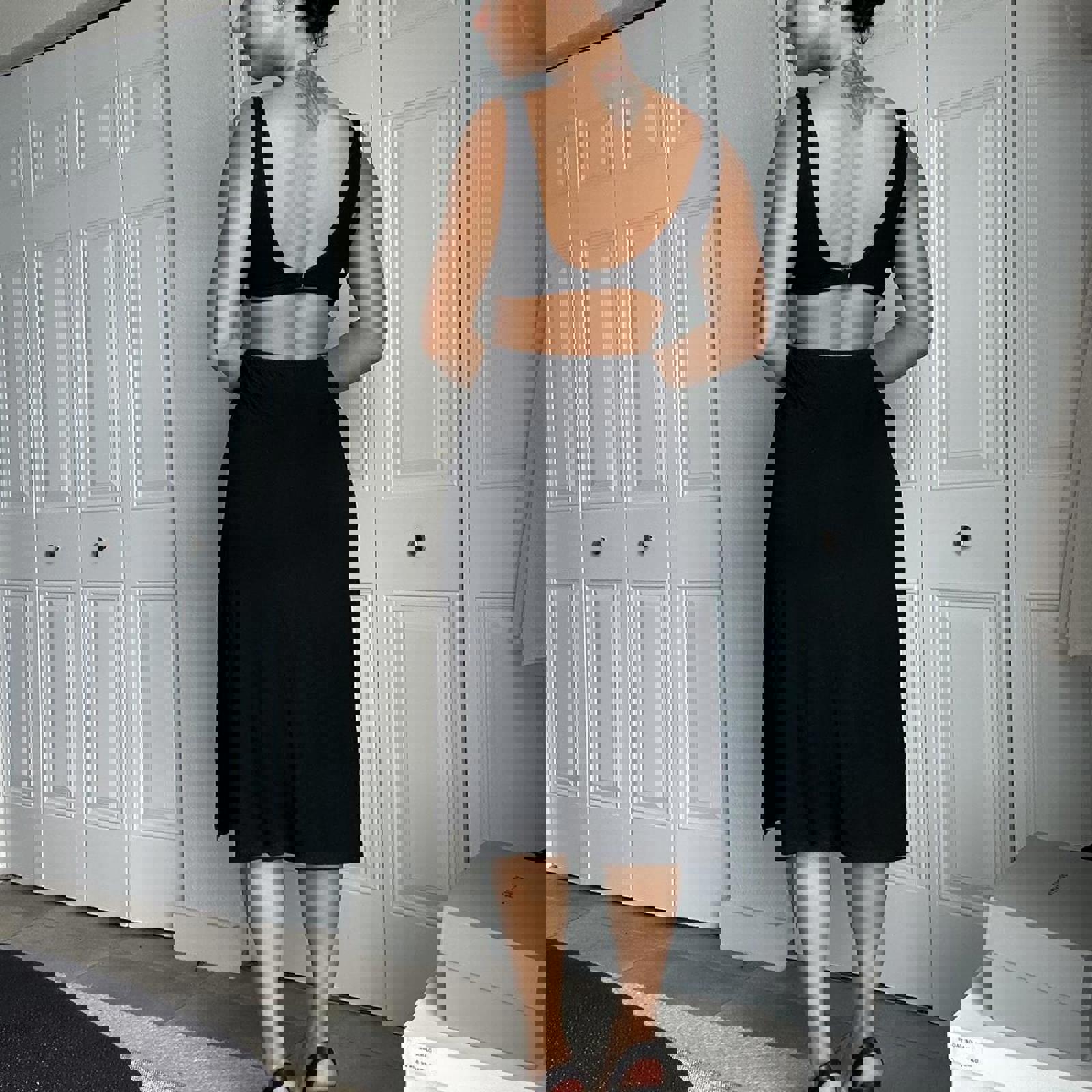 329. Black midi cutout dress by shoreroad. Slits at both sides, perfect for summer. Size xs shown on a small