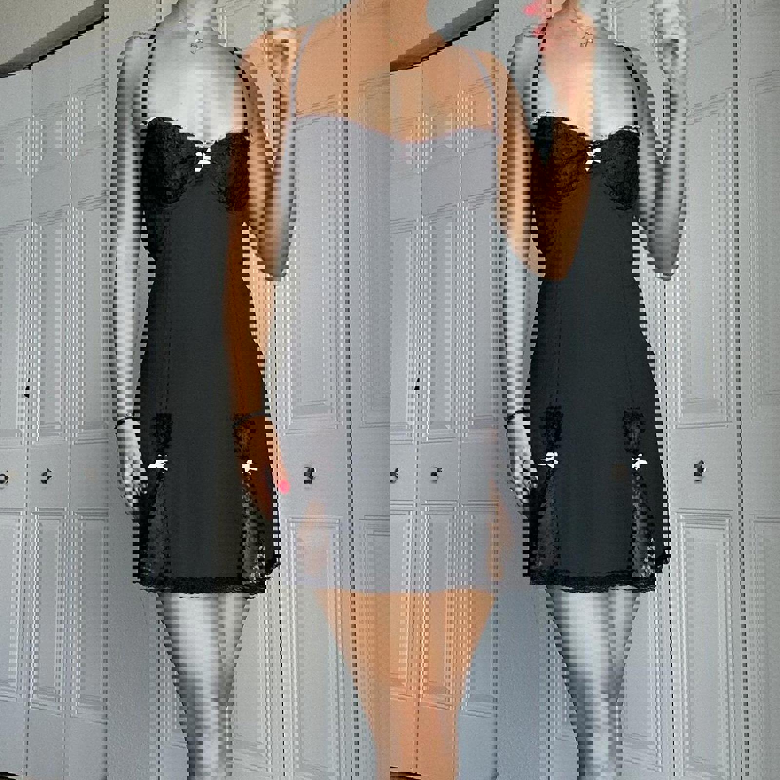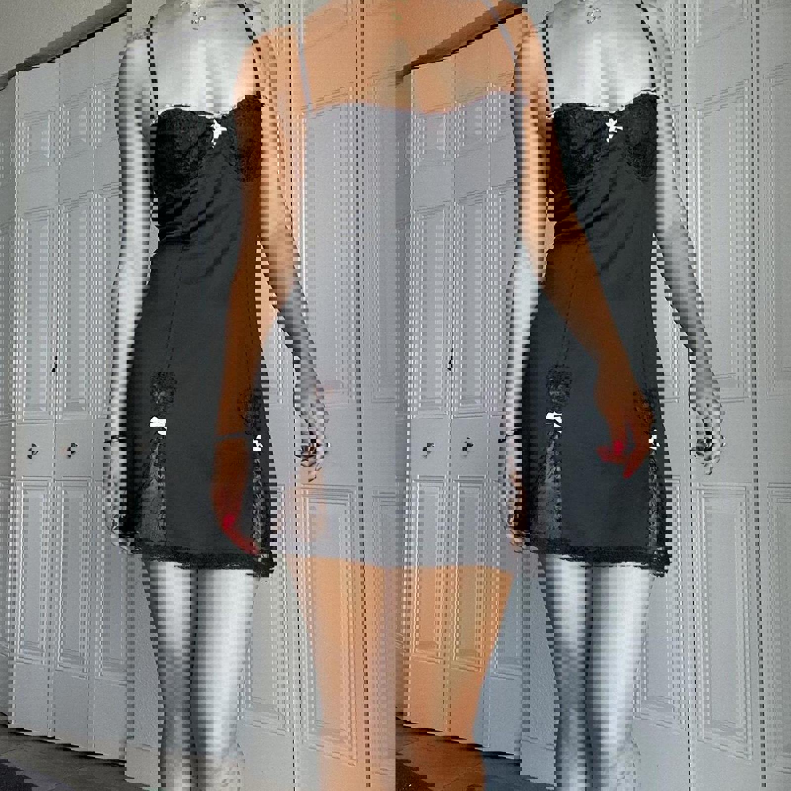 658. Pink and black lace baby doll dress with heart shaped lace pieces on the front. so adorable. This stress has no brand tag but does show as a size large. I would say it fits more like a small or medium