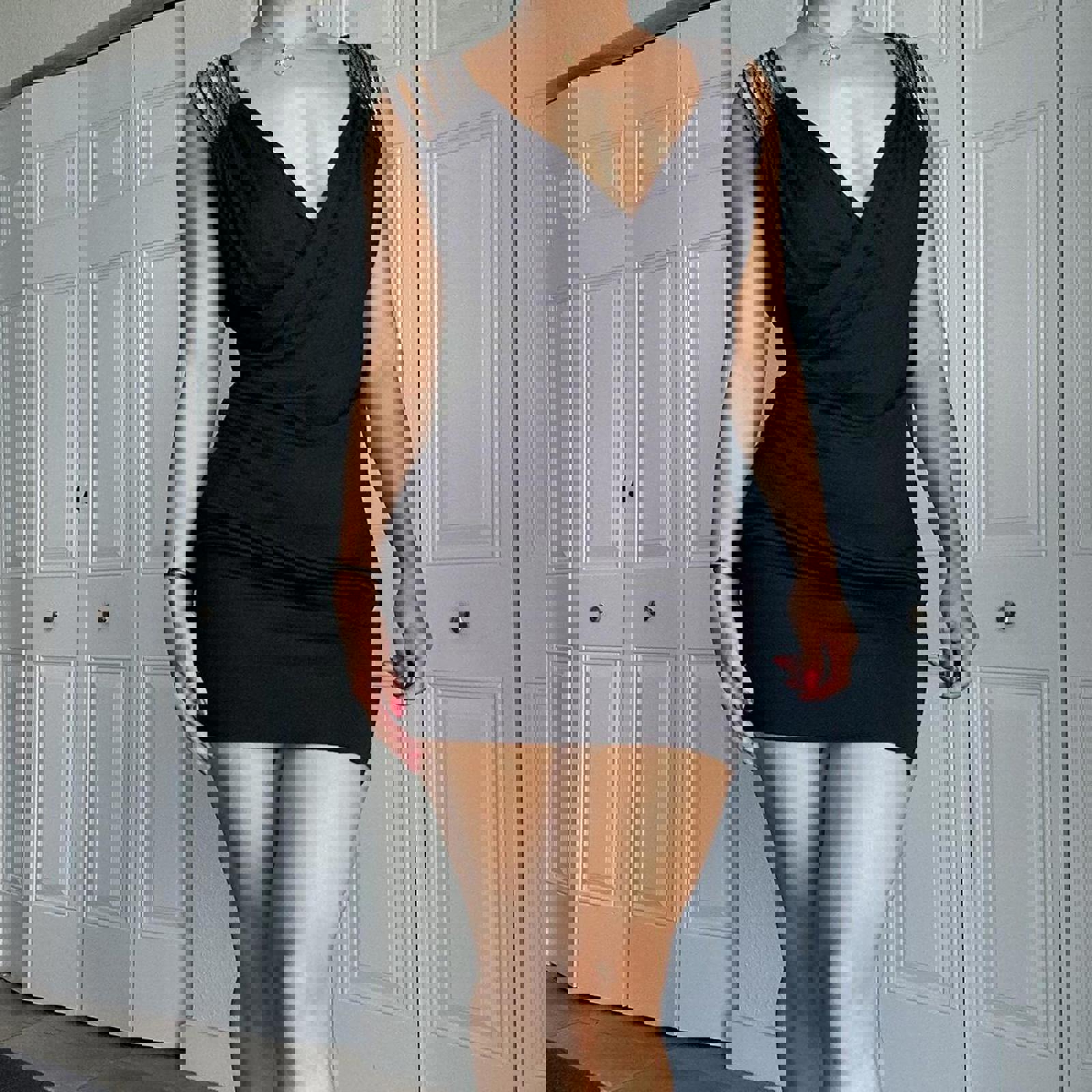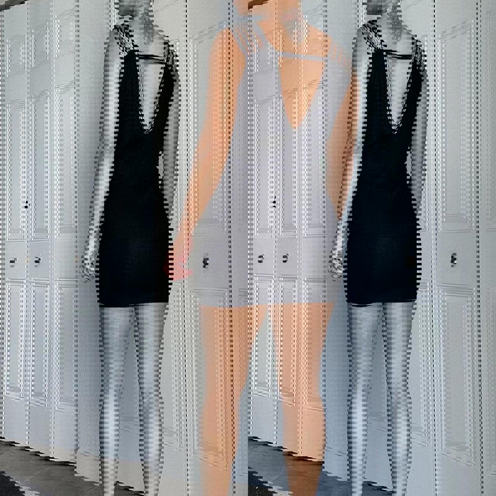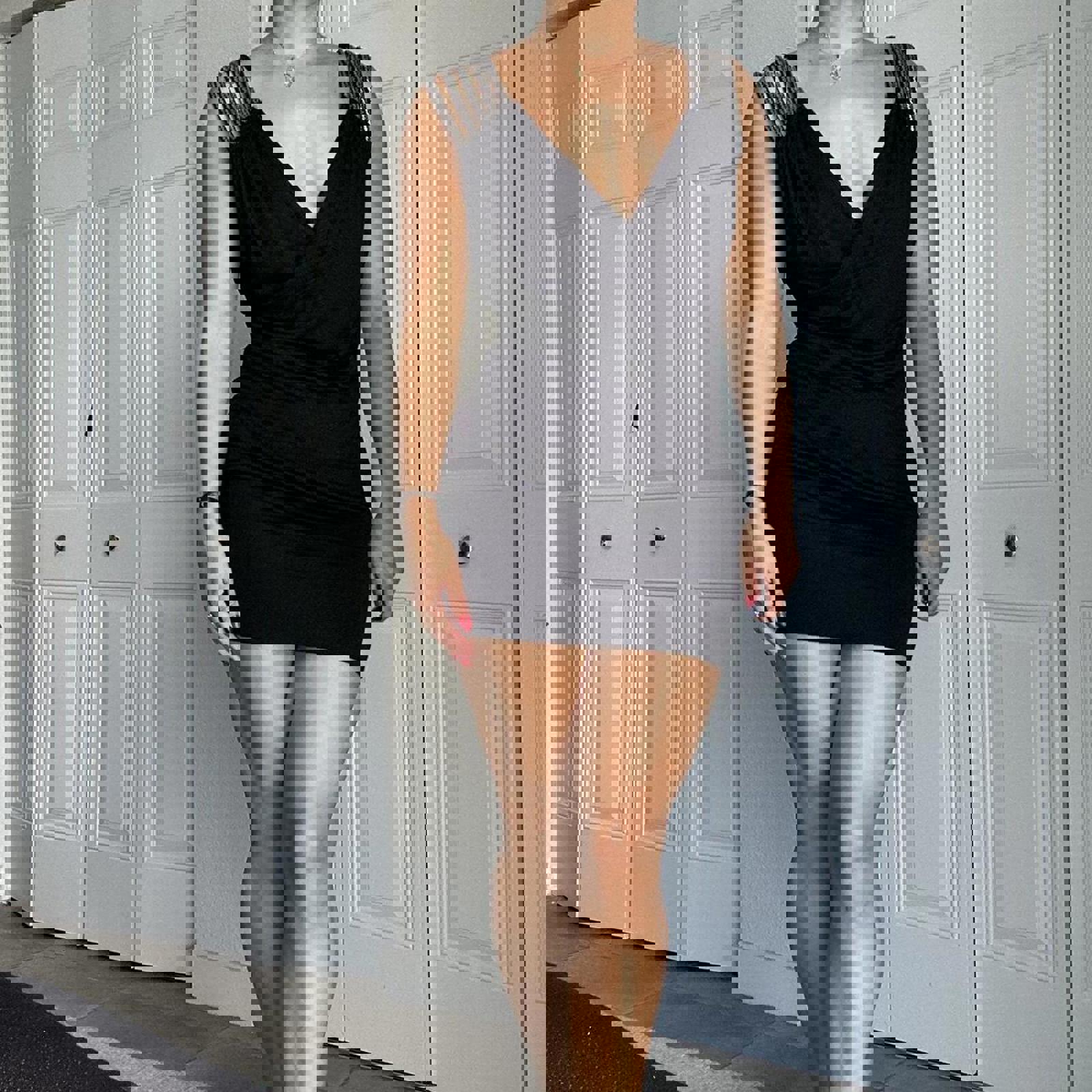 647. Mini black Niki Biki dress #PartyDress #LittleBlackDress has a tight bottom which accentuates curves and super beautiful beating detail at the top it is a size small and it fits at such