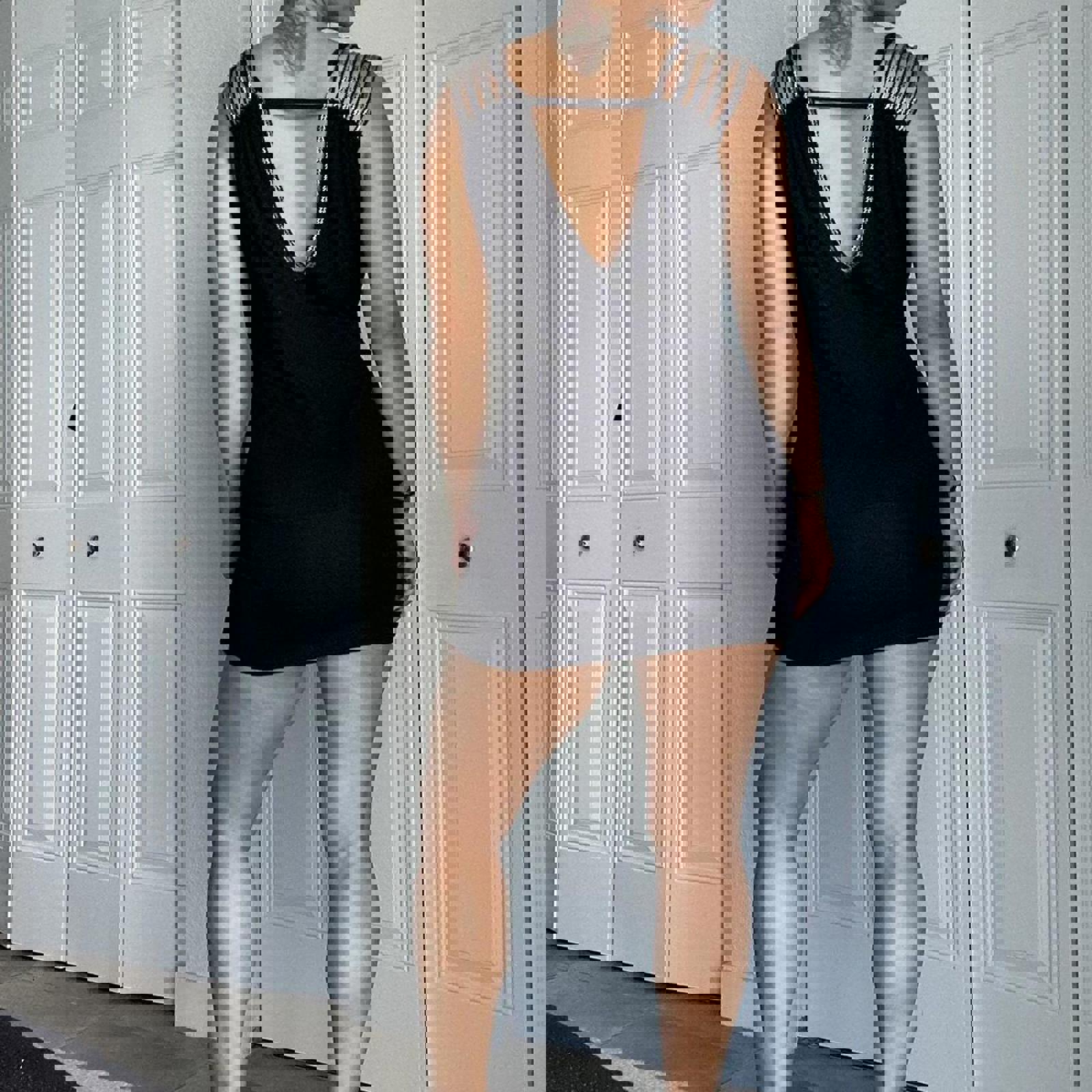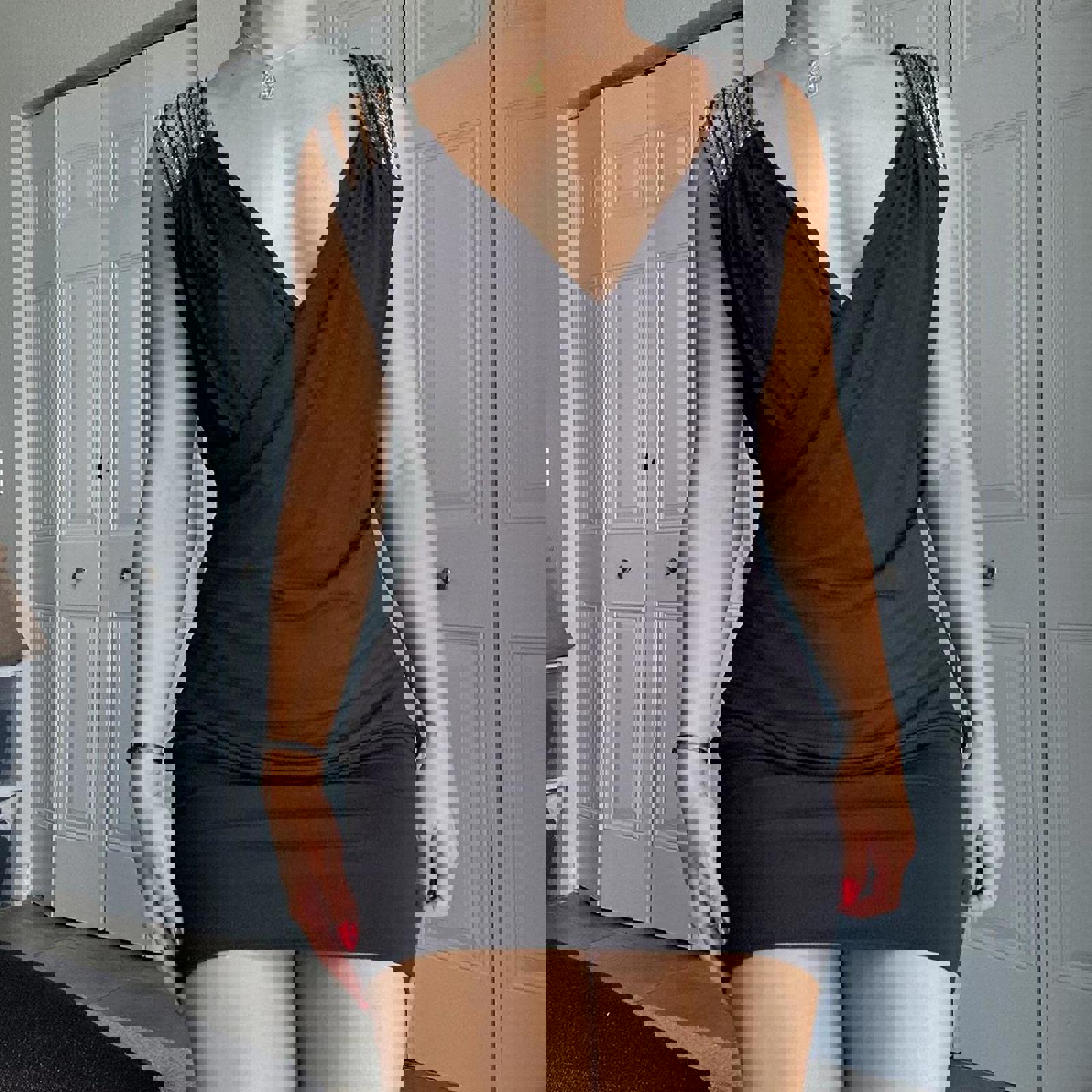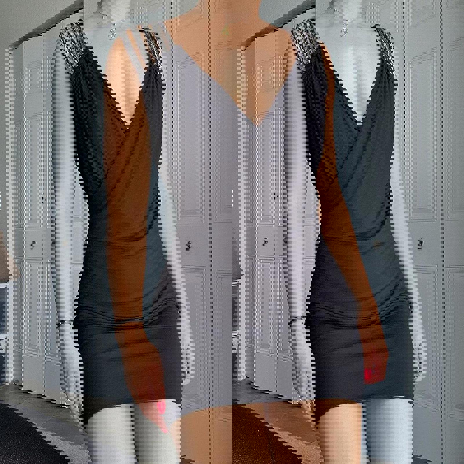 647. Mini black Niki Biki dress #PartyDress #LittleBlackDress has a tight bottom which accentuates curves and super beautiful beating detail at the top it is a size small and it fits at such