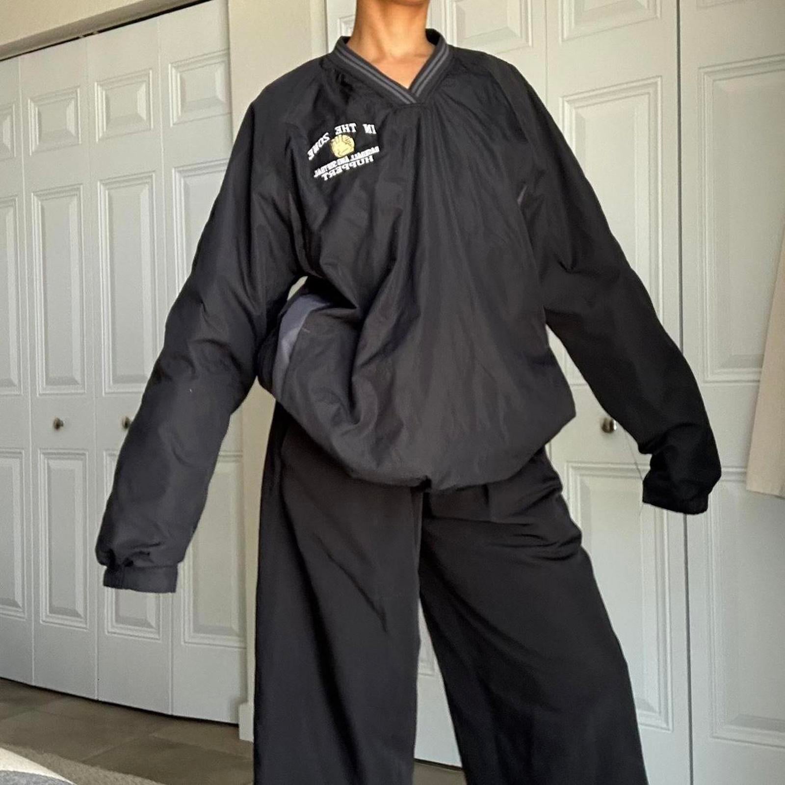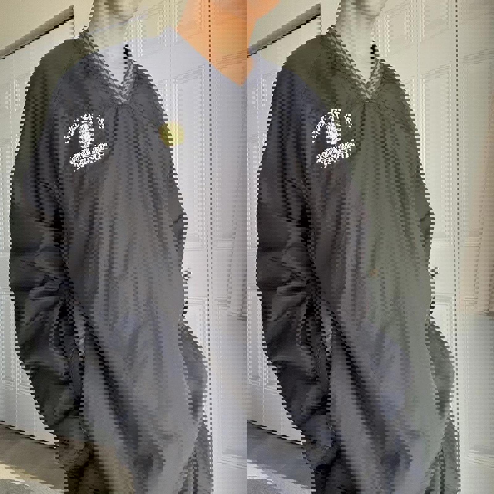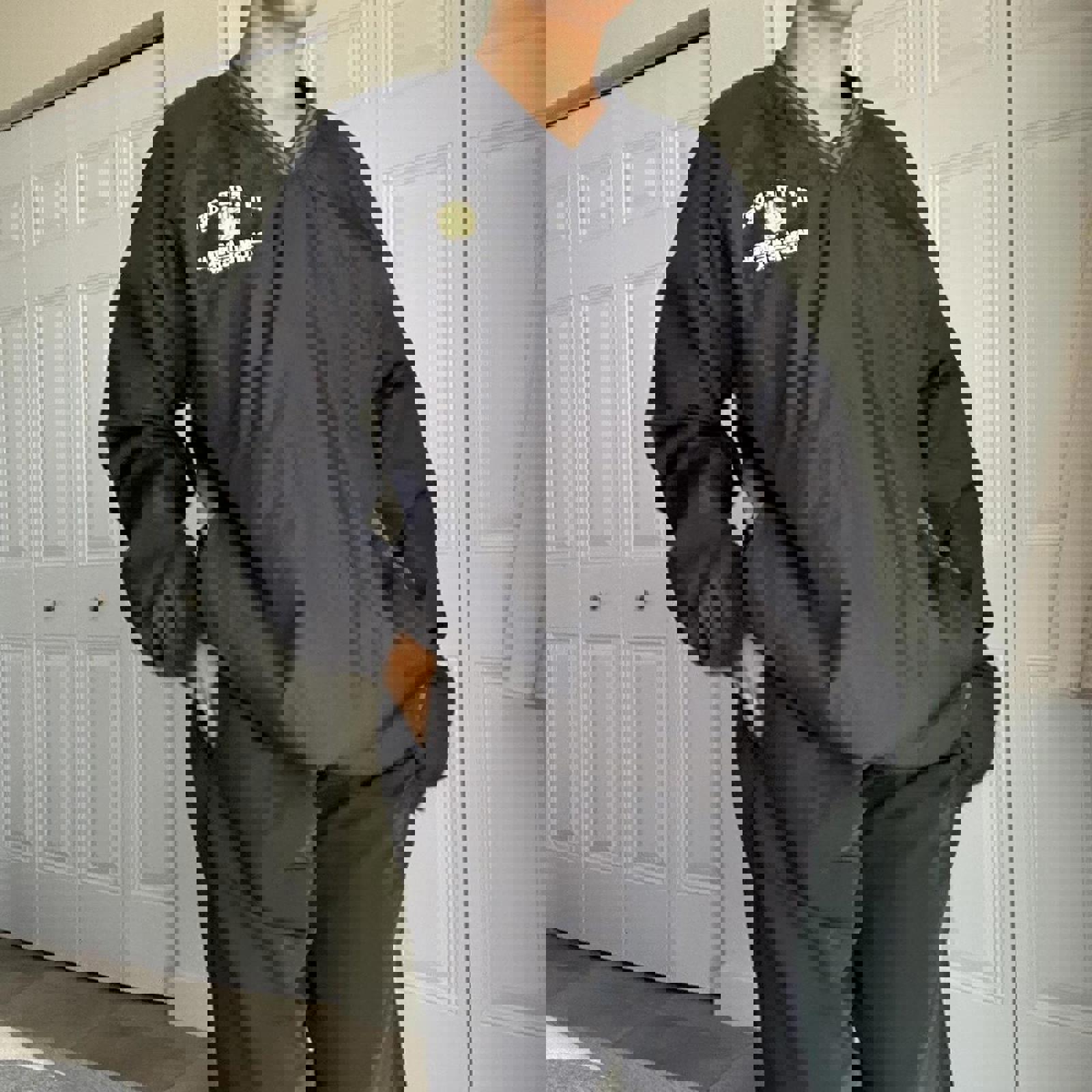 370. V neck black and gray windbreaker with baseball logo perfect condition