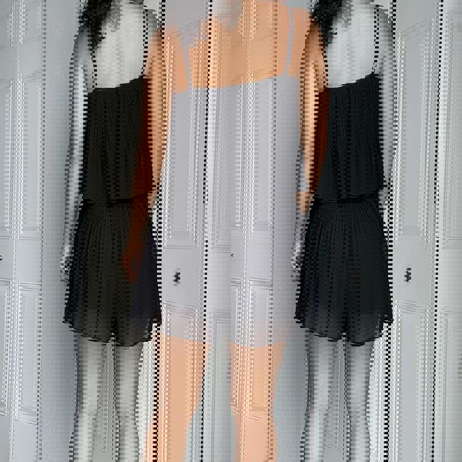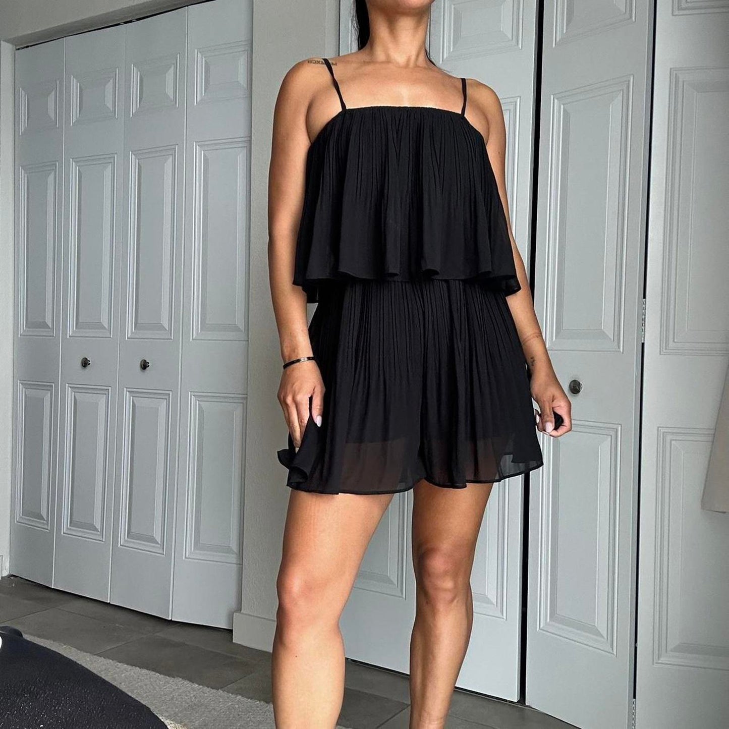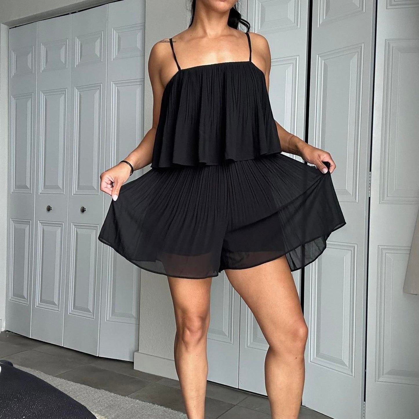 347. Exlura Black pleated ruffle romper - looks like a pleated dress #littleblackdress size small