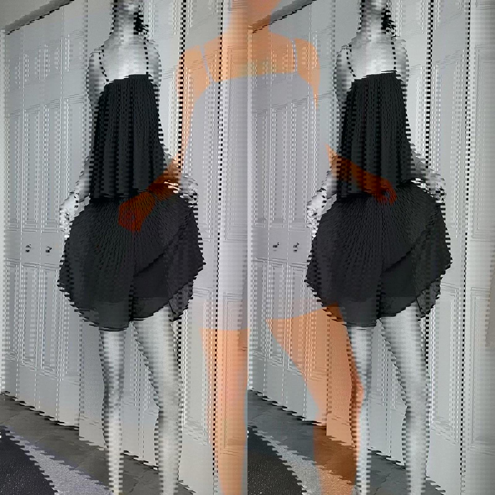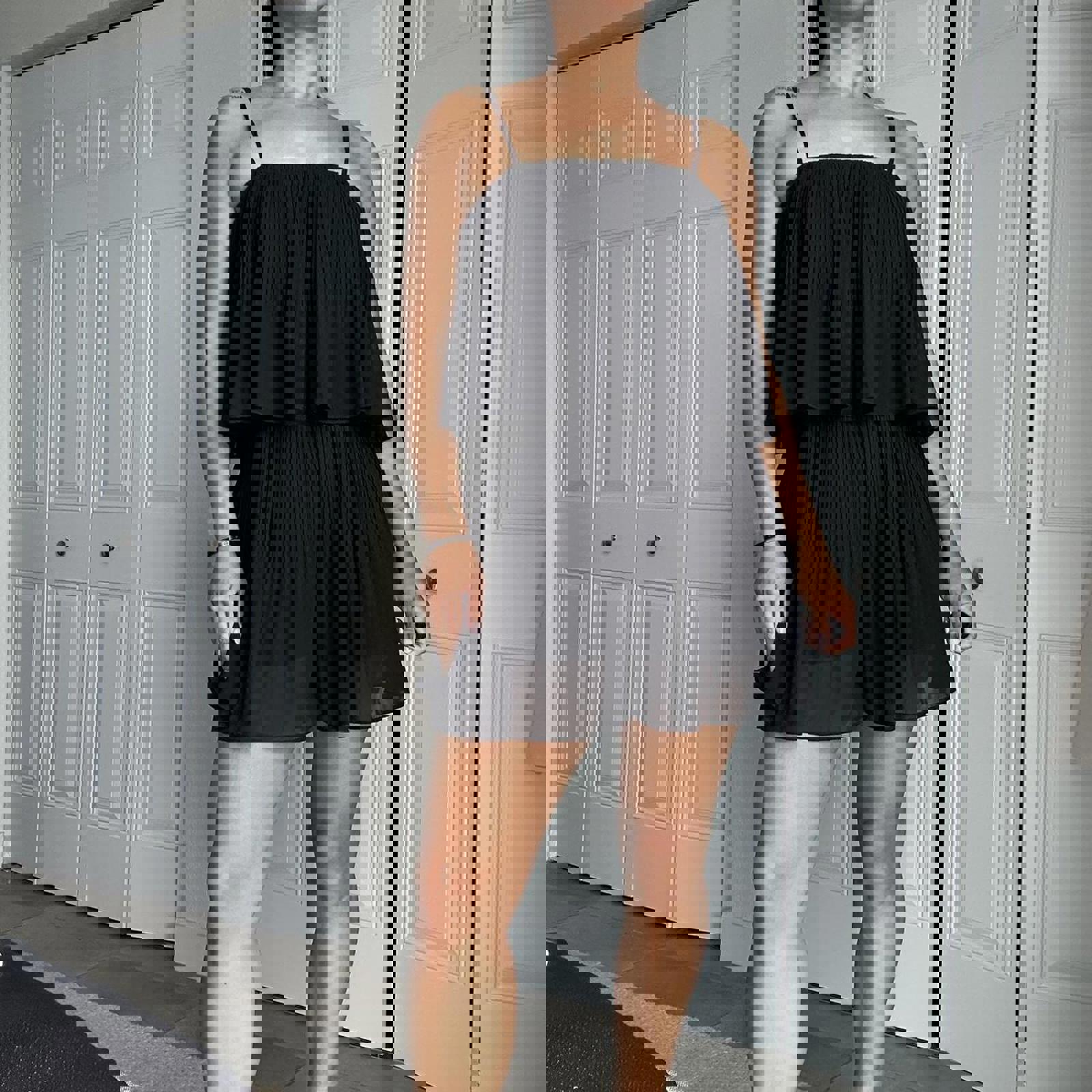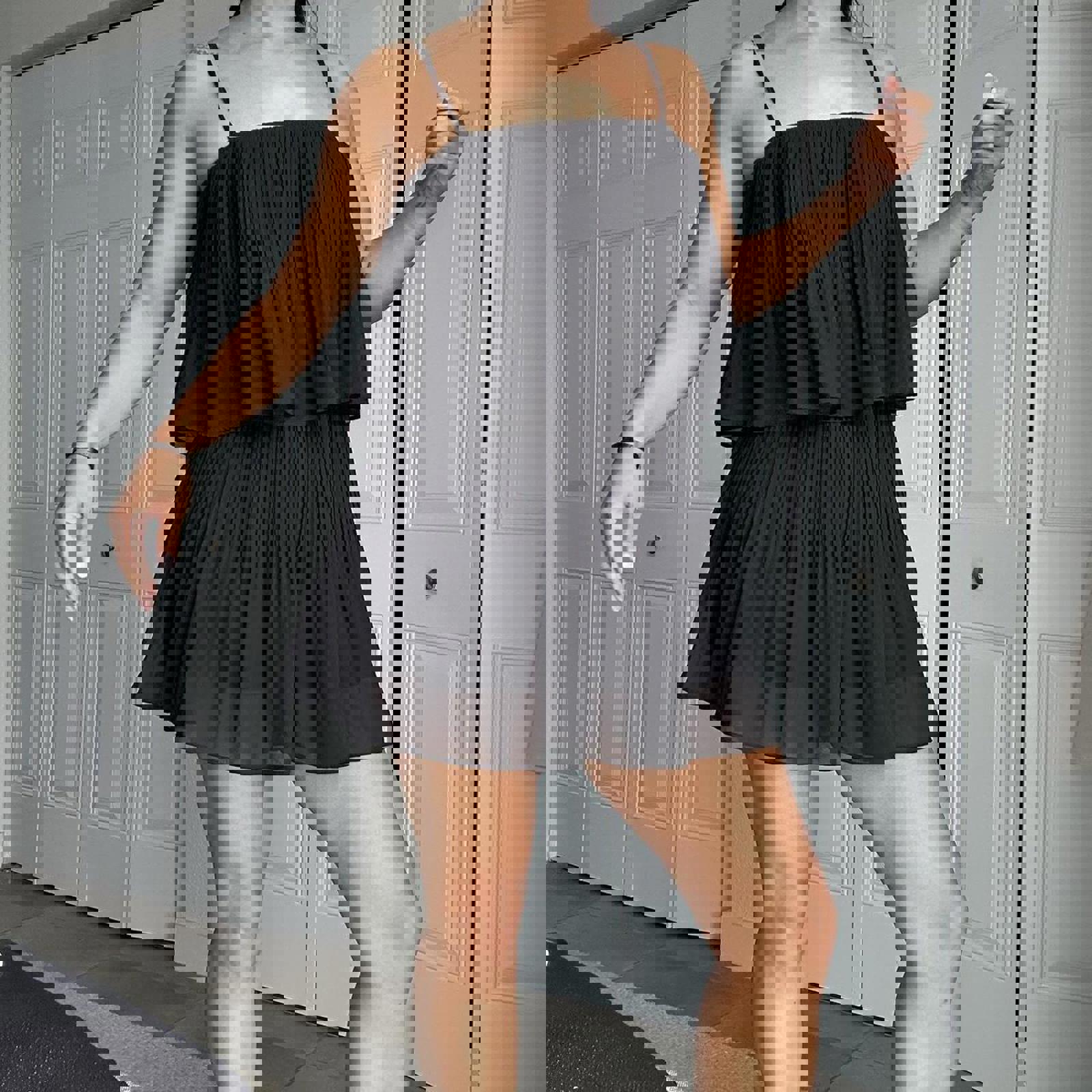 347. Exlura Black pleated ruffle romper - looks like a pleated dress #littleblackdress size small