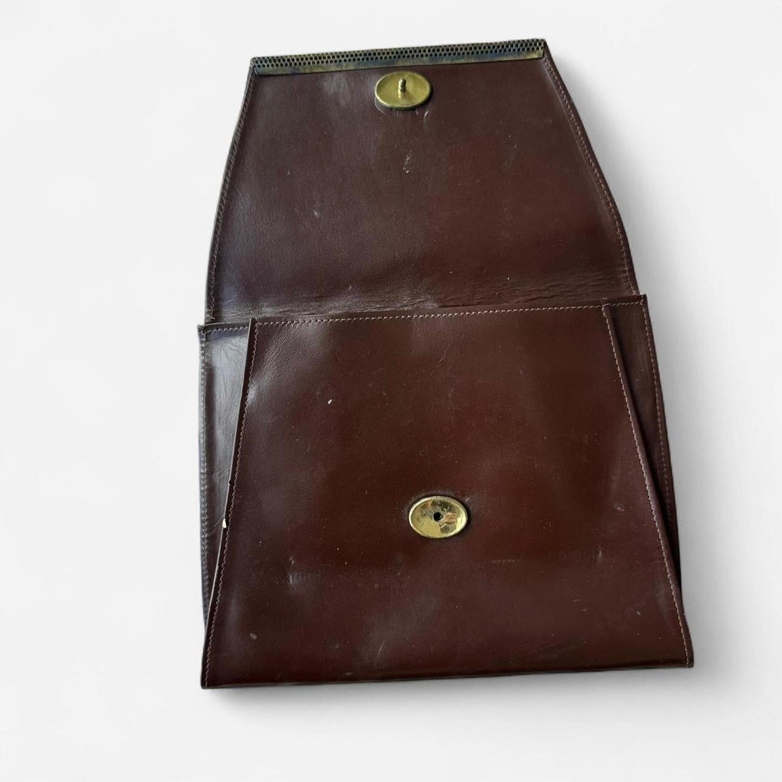 Chocolate brown vintage leather clutch with stone detailing on the outside in blue and red color, gold button closure made in India for Lord & Taylor. Suede inside, wonderful vintage condition. Measurements listed below: