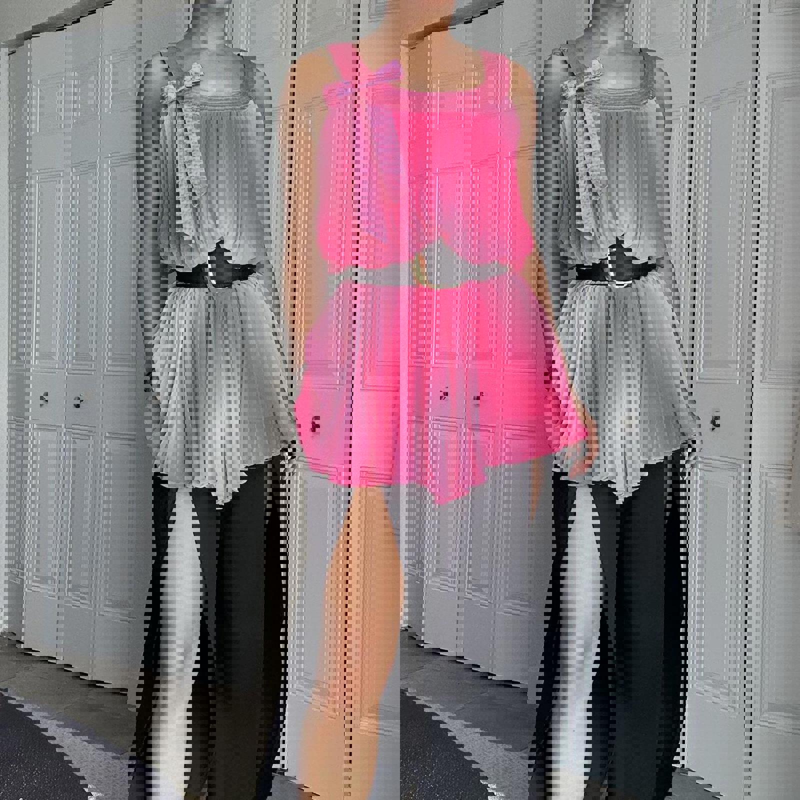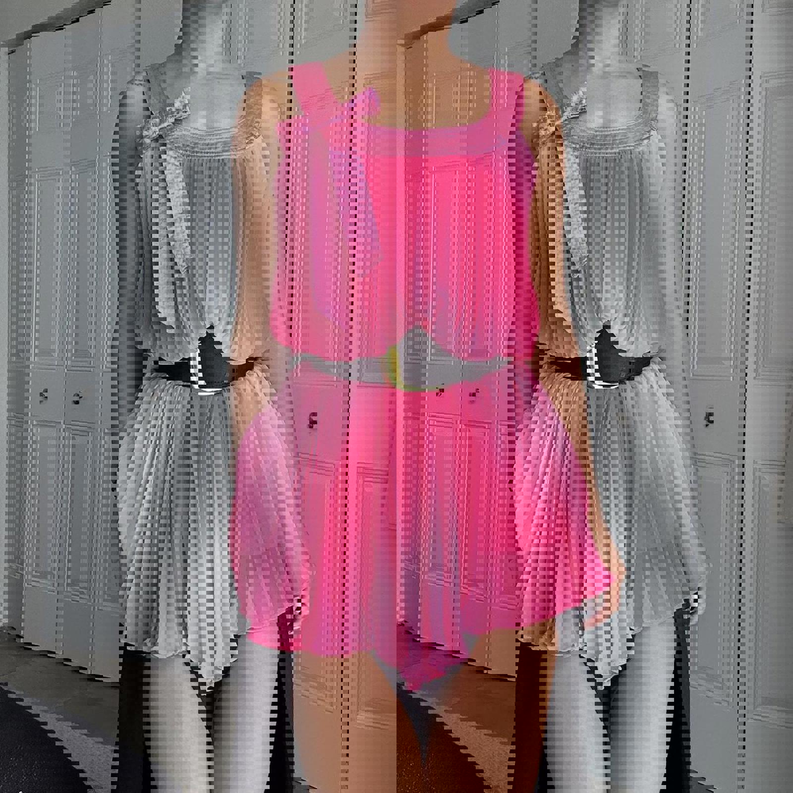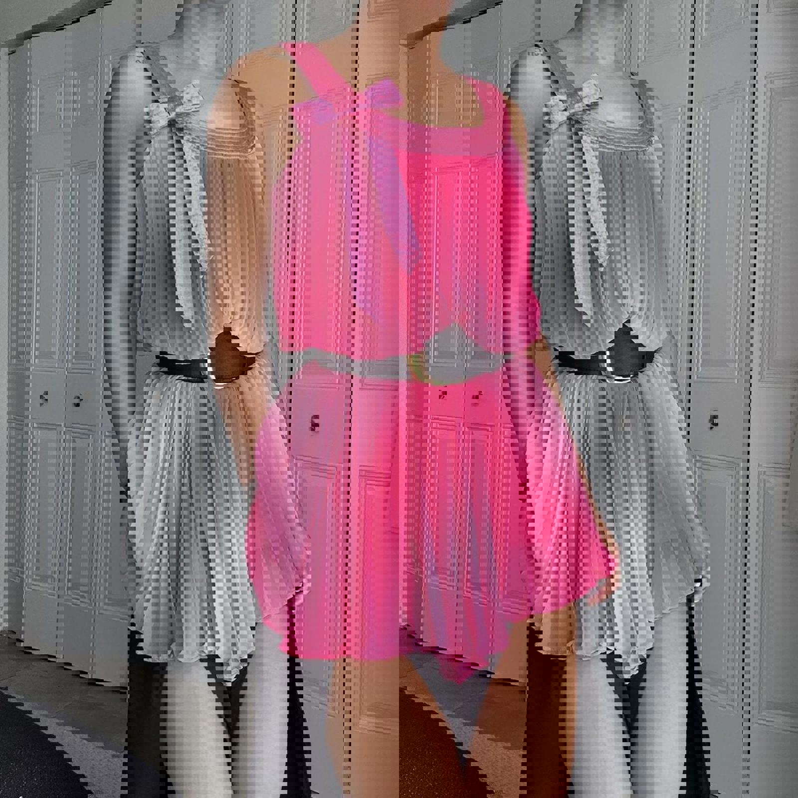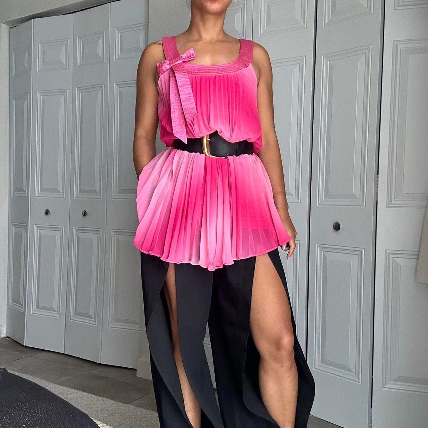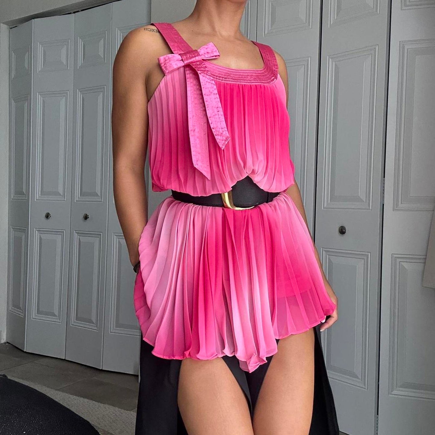 Pink Amanda Lane pleated dress with bow detail. Shown here at Warner’s top with a belt, not included. Size 4 perfect condition