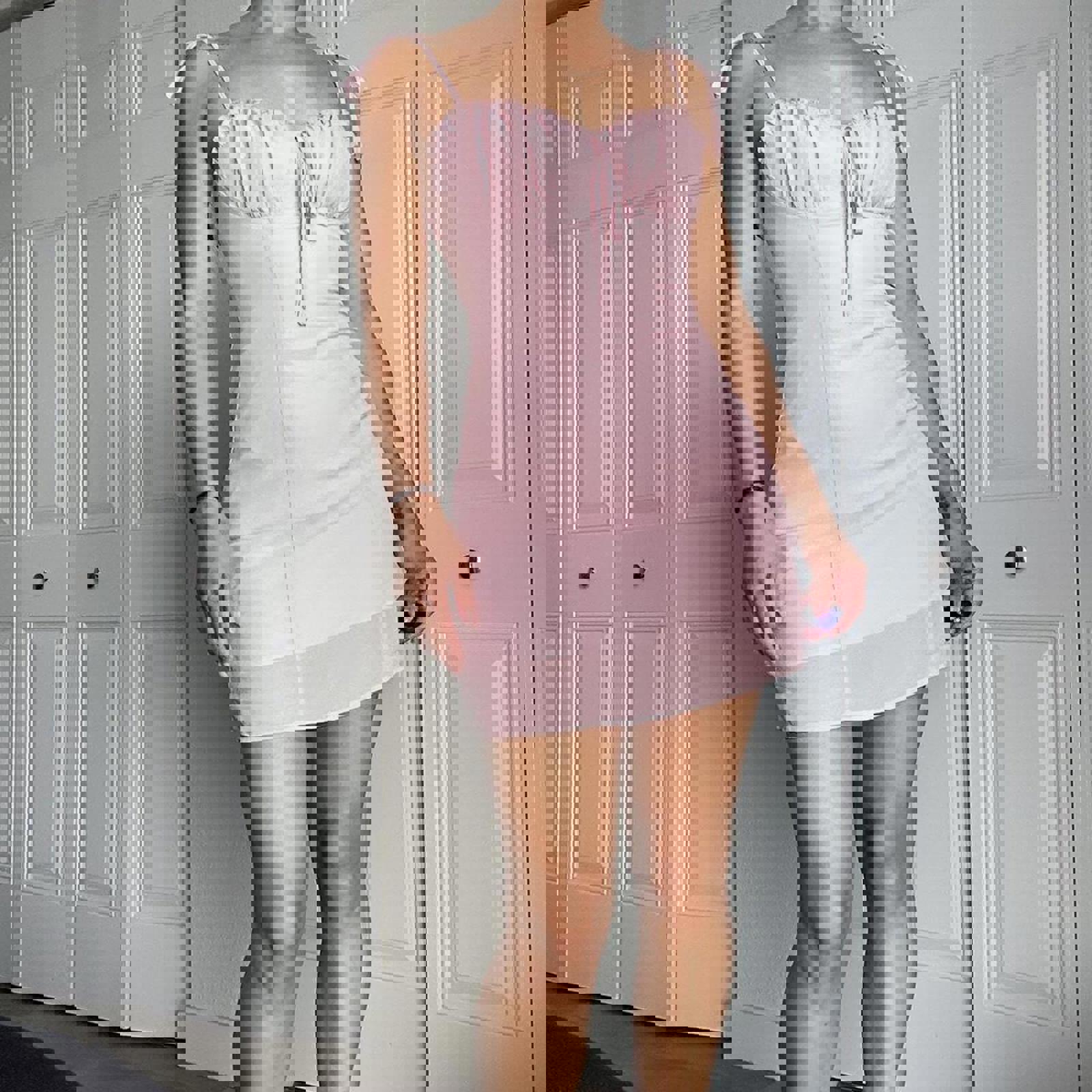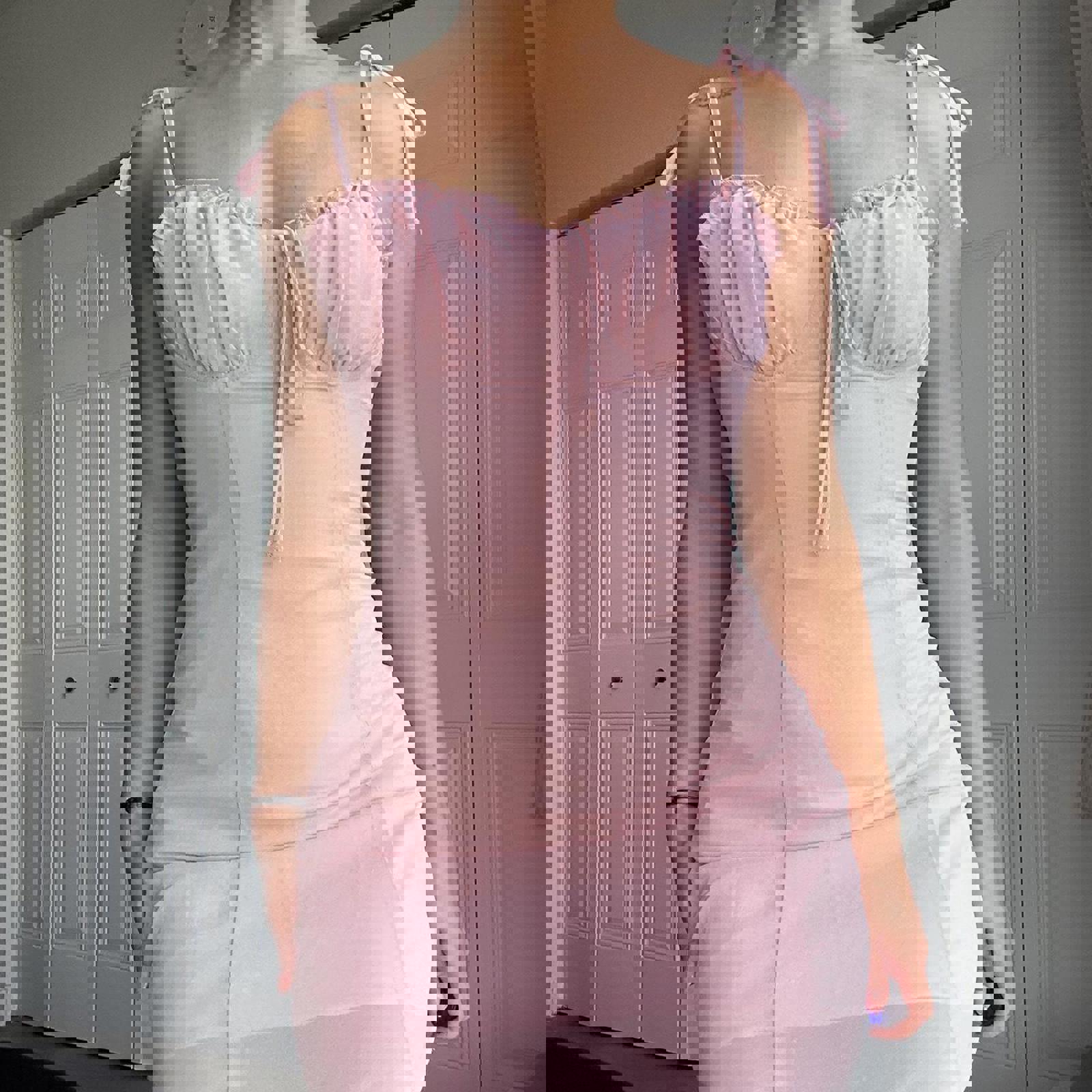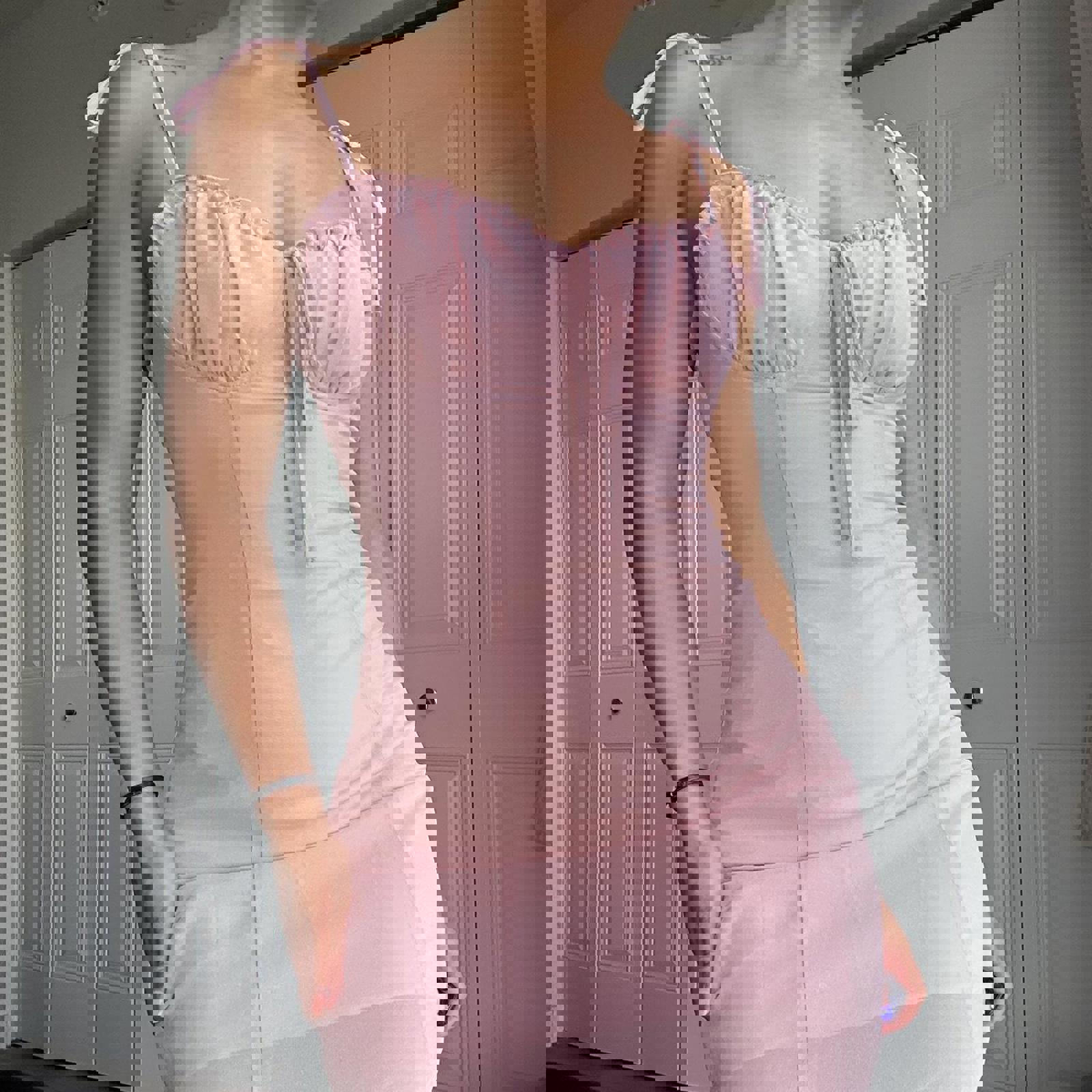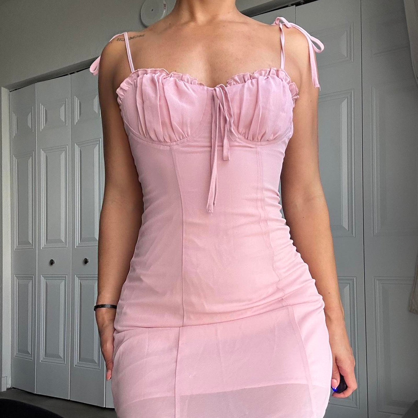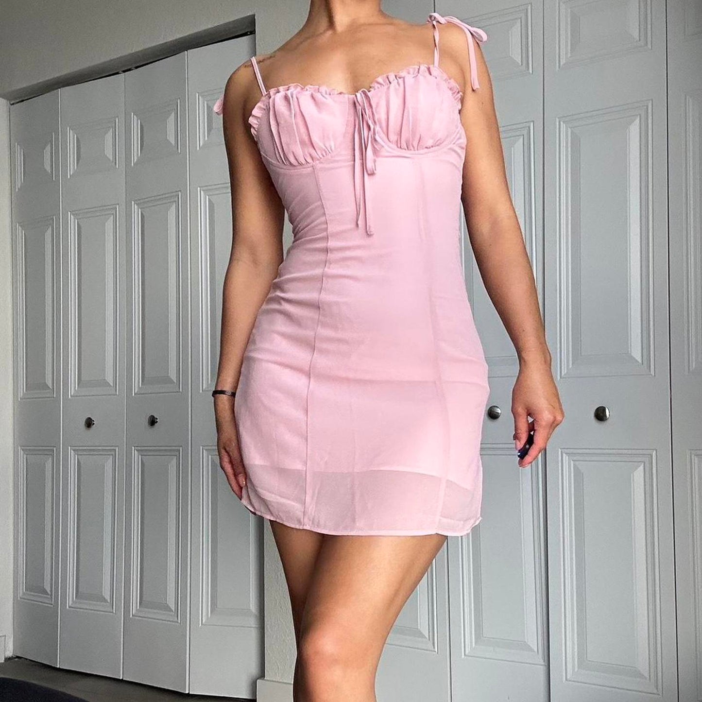 181. Pink mini dress with tie straps no brand tag and no size tag. Fits like a size xs, wonderful quality