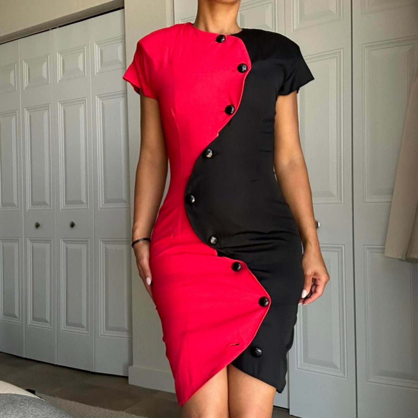 392. Vintage cre Che Yang and Yang black and red dress. This is so cool of the way that it buttons, has shoulder pads. True vintage! Fits like an xs