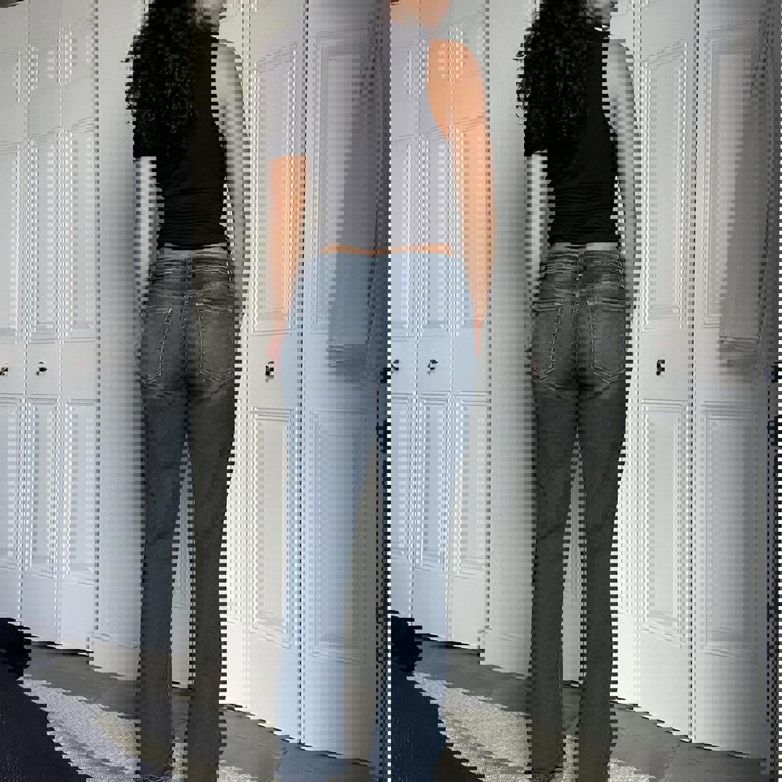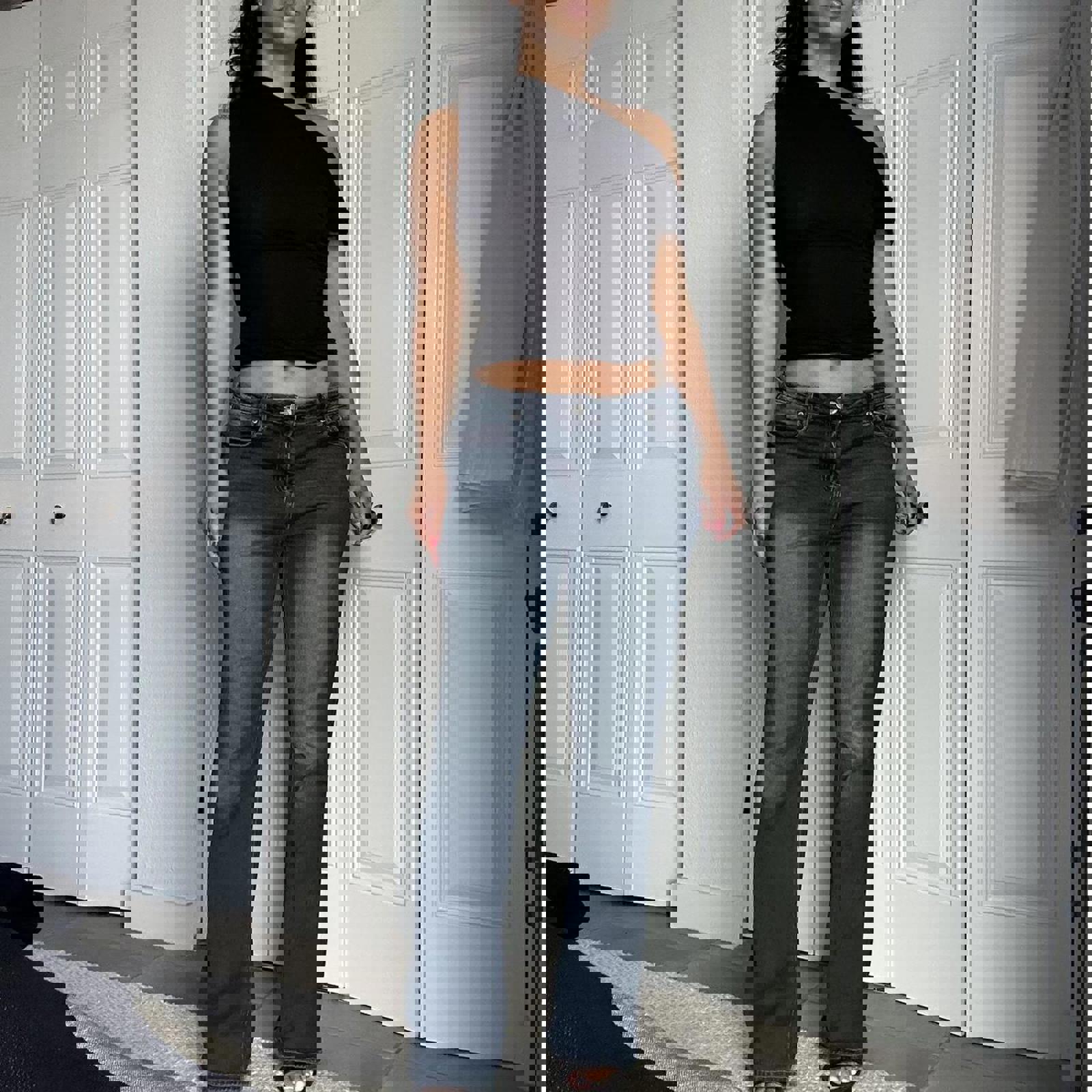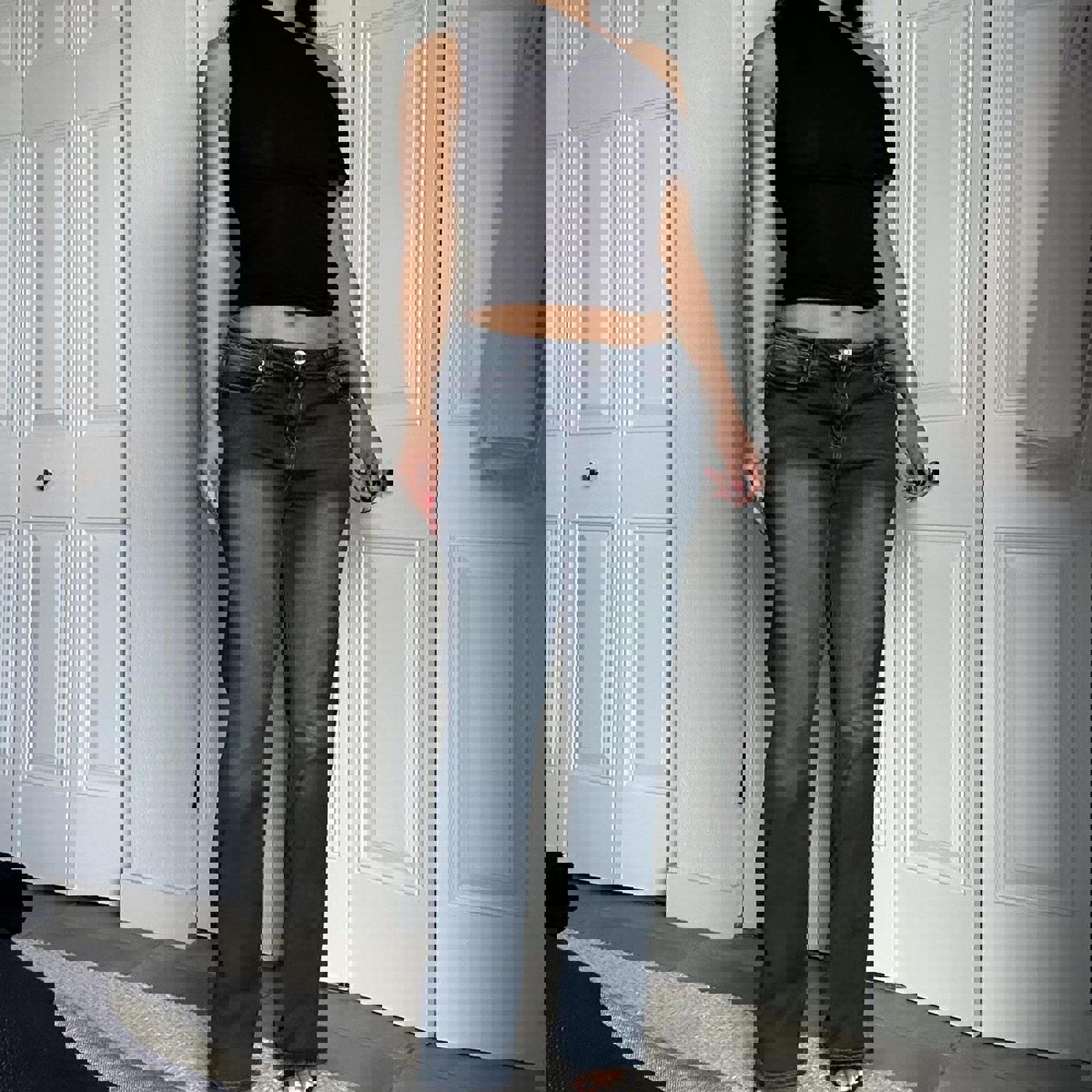 770. YMI dark denim straight leg jeans in perfect condition. No size listed. I would say they fit like a size 6. Measurements slung flat listed below.
