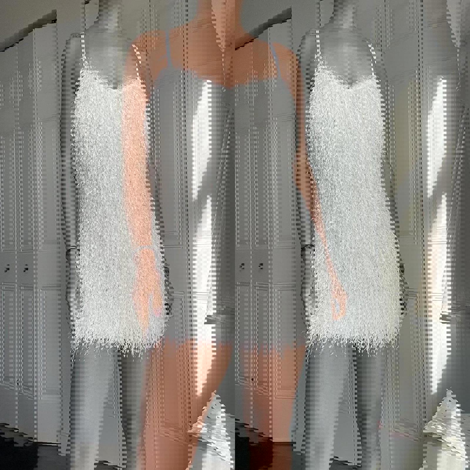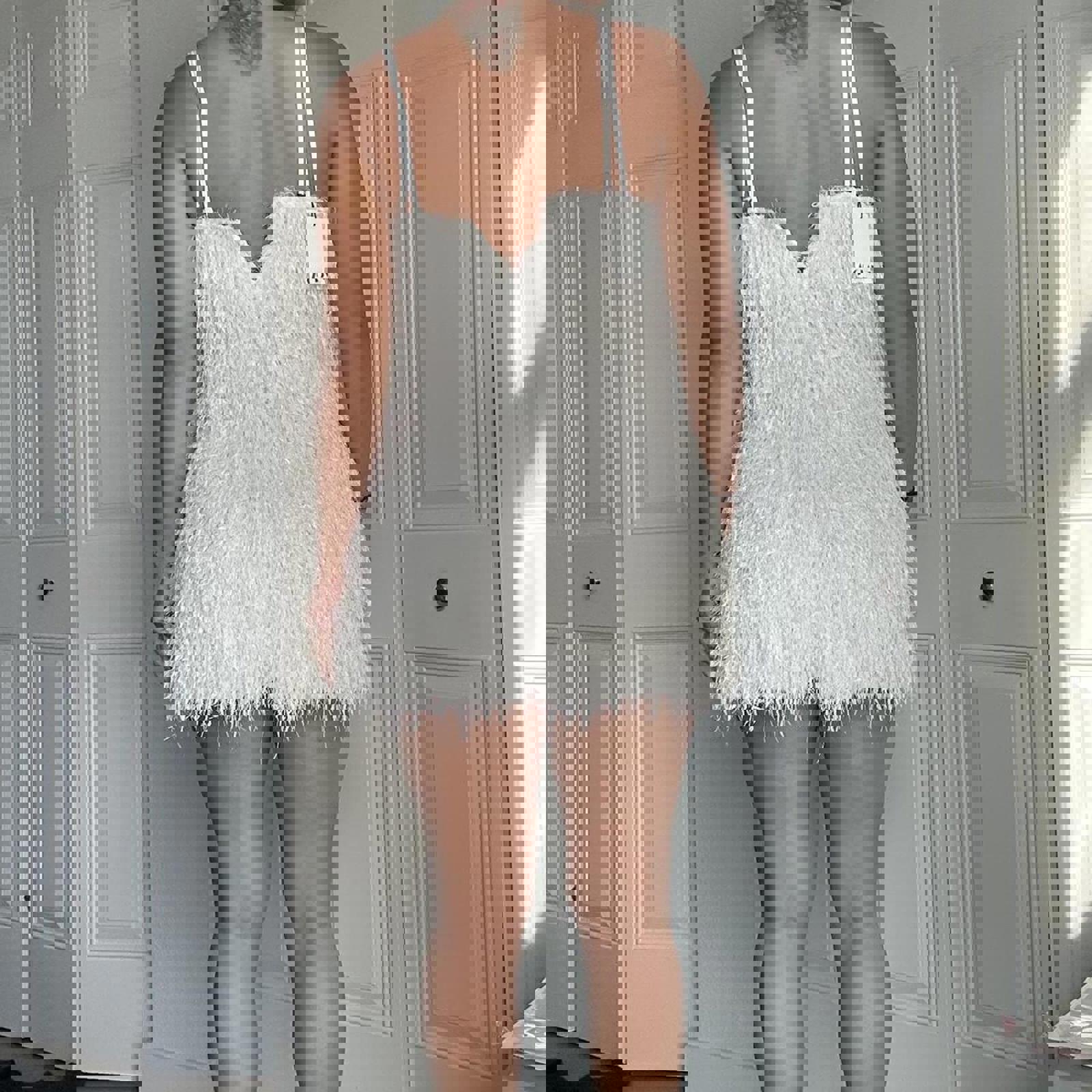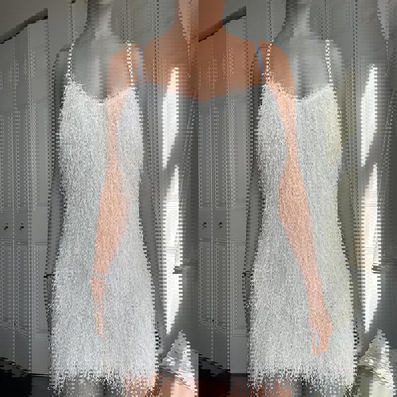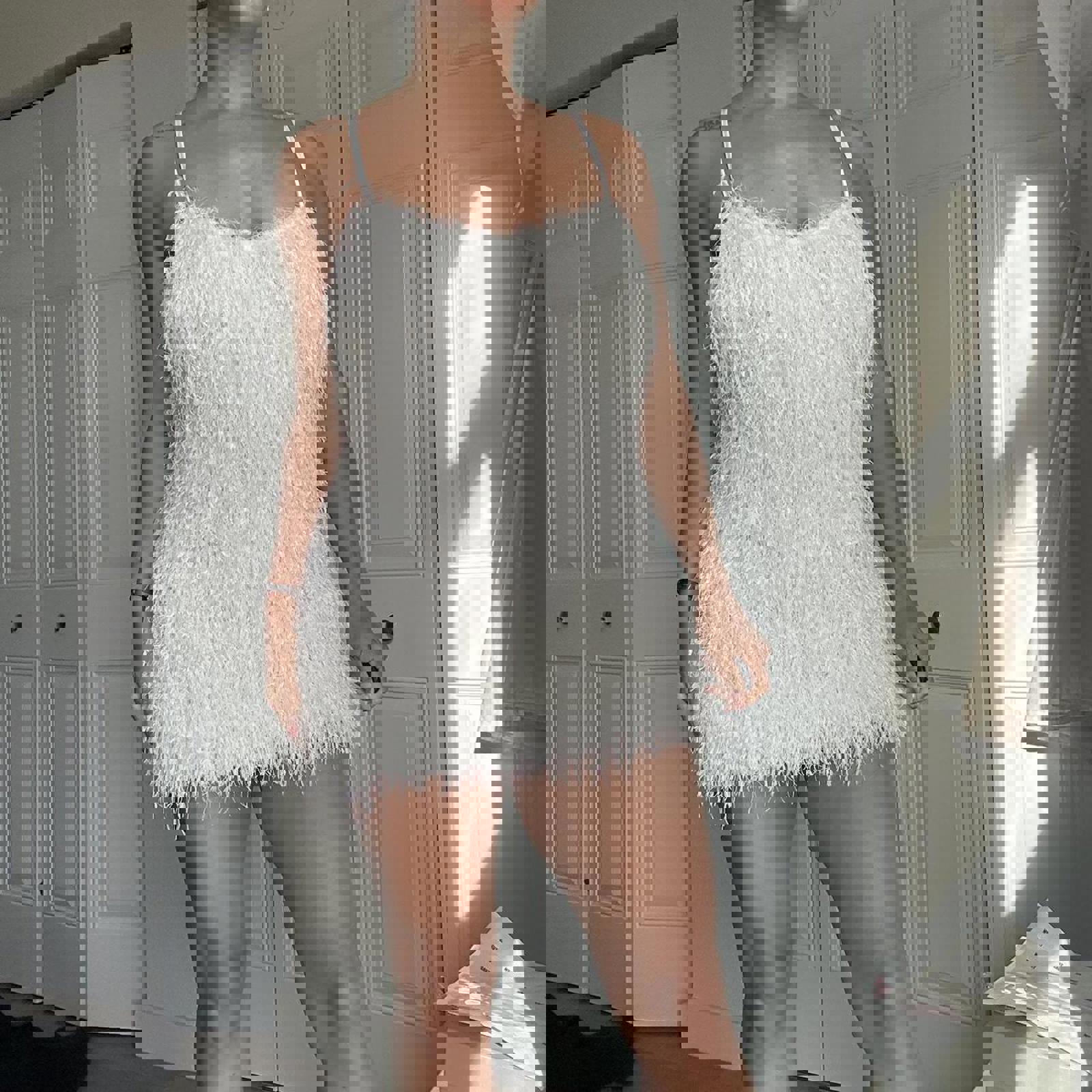 432. Zara white fluffy mini dress. So adorable on , perfect for a bride or bridal event!